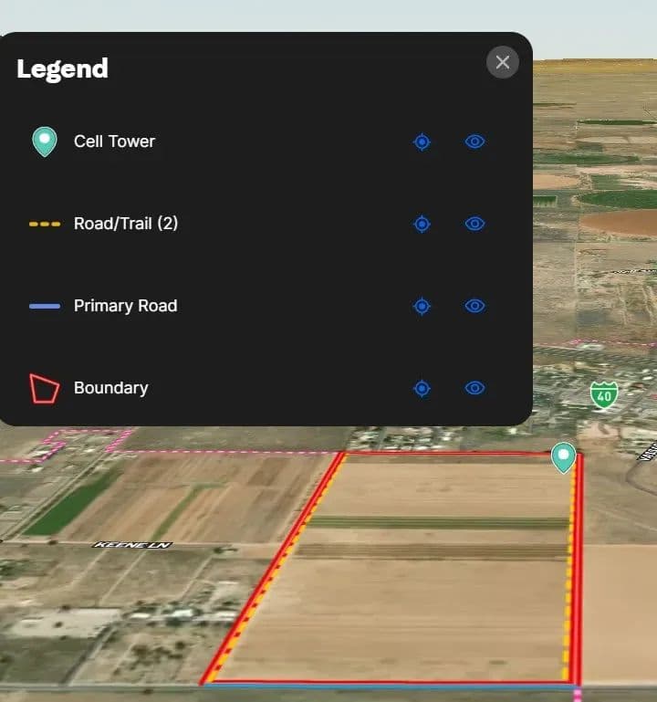 Land Land has been used in production agriculture. It is adjacent to Moriarty city limits and is believed to be able to be annexed into the city limits.It currently has a cell tower on the NE corner which could be leased for income. New well producing 70 GPM just completed in March of 2025.Land is flat and open creating many different development opportunities for homes, green energy or other commercial ventures with easy access to I-40 interstate.