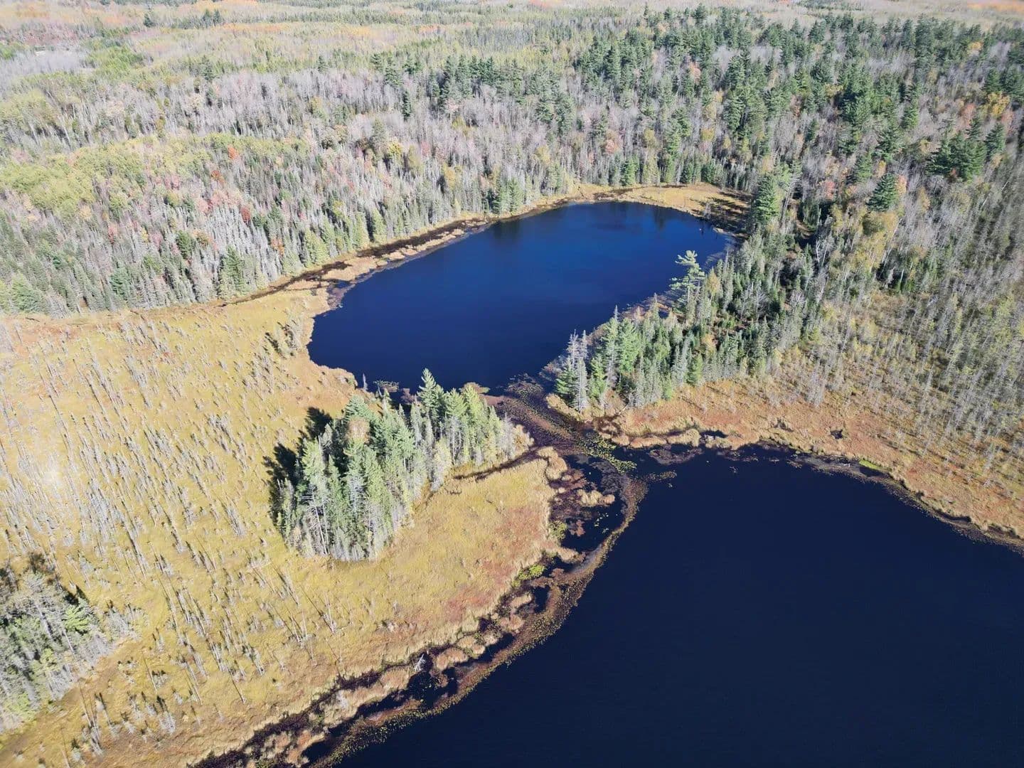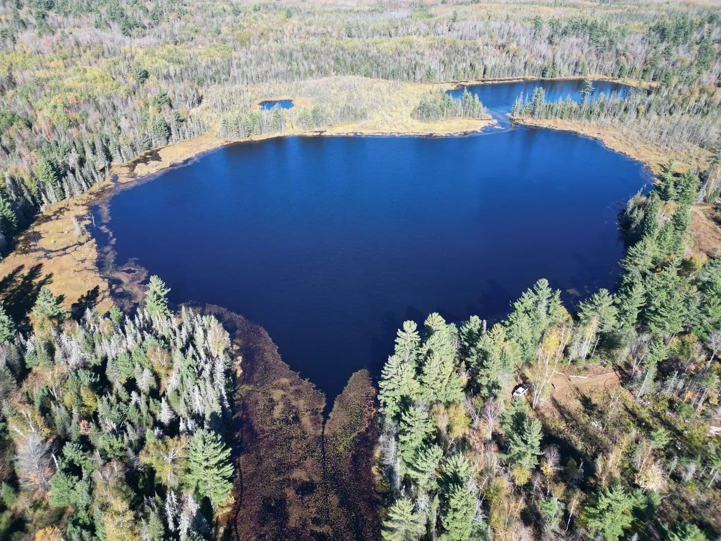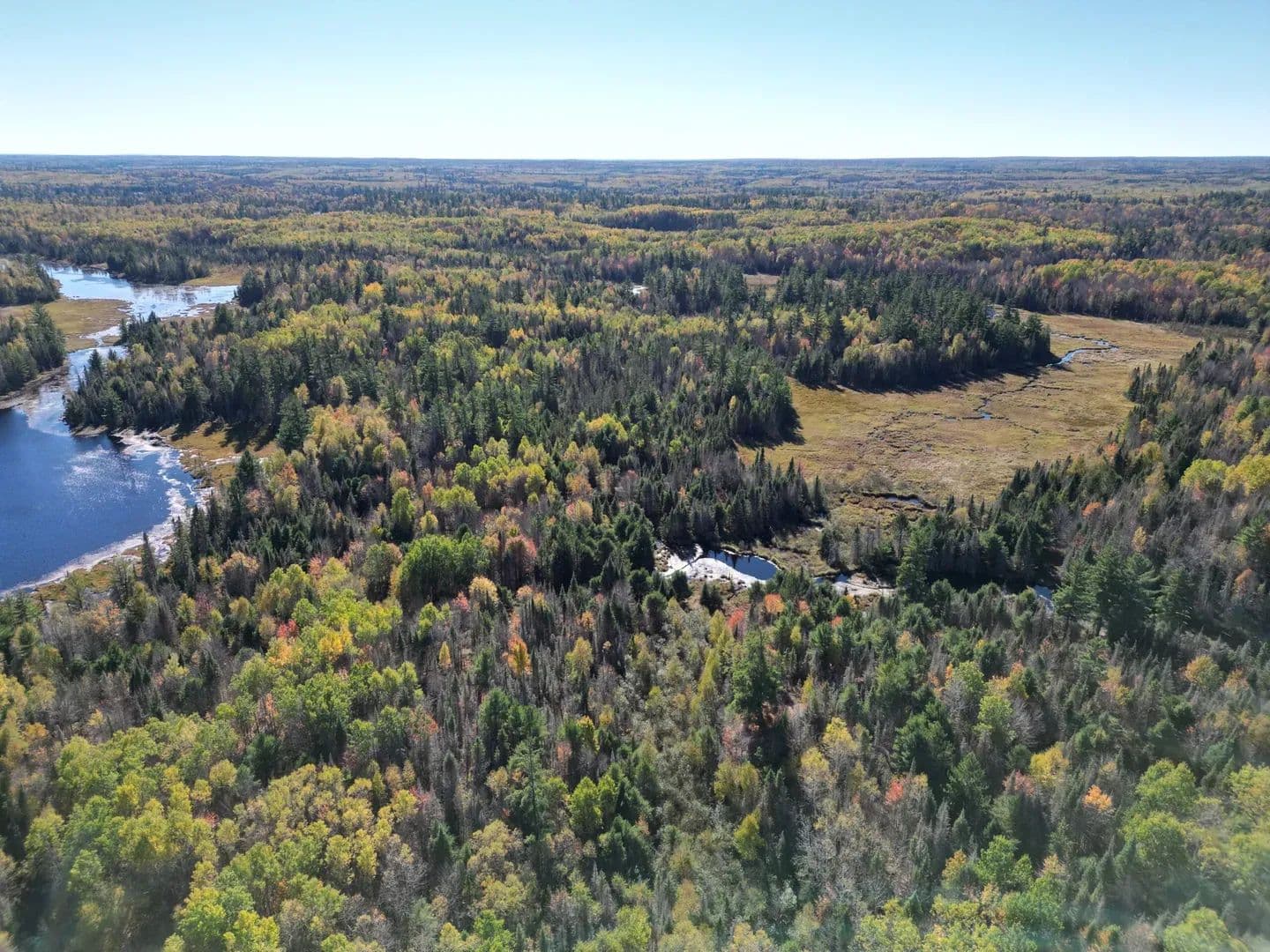Large section of the lake is surrounded by expansive wetlands and a cranberry bog. The lake draws in ducks, deer, and all kinds of wildlife, creating a rich, vibrant habitat. Bruce Creek meanders through the land, joined by two ponds that add even more water and cover.