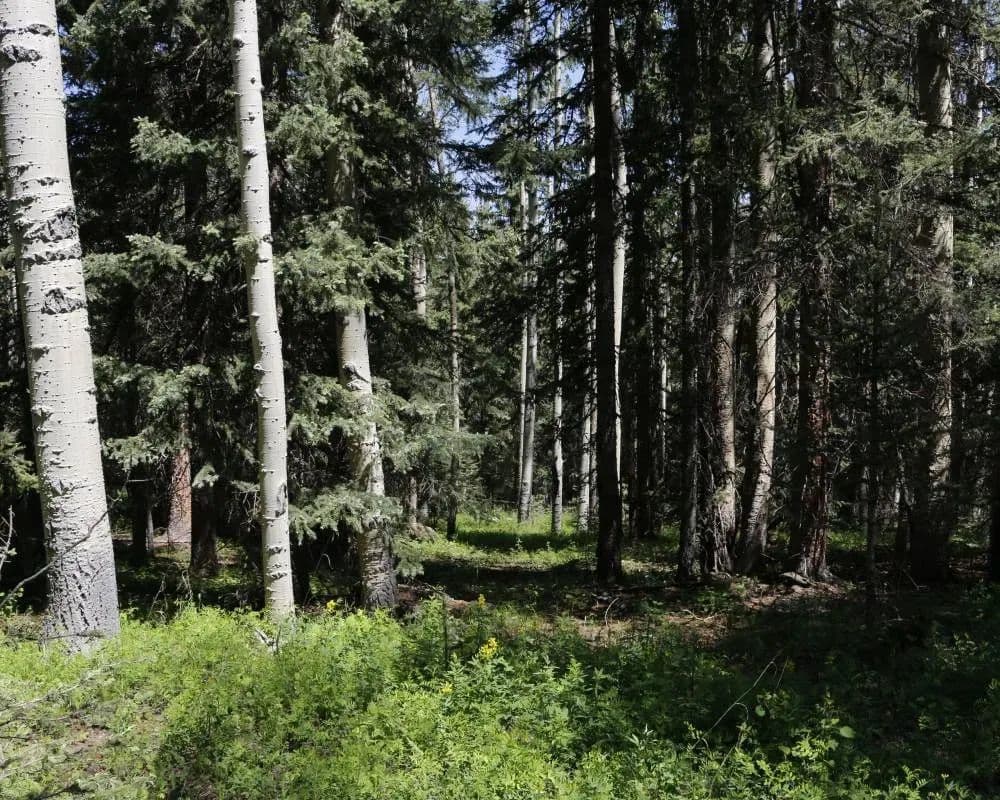 Beautiful D-Log cabin nestled in a forest of tall ponderosa pines and vibrant aspens