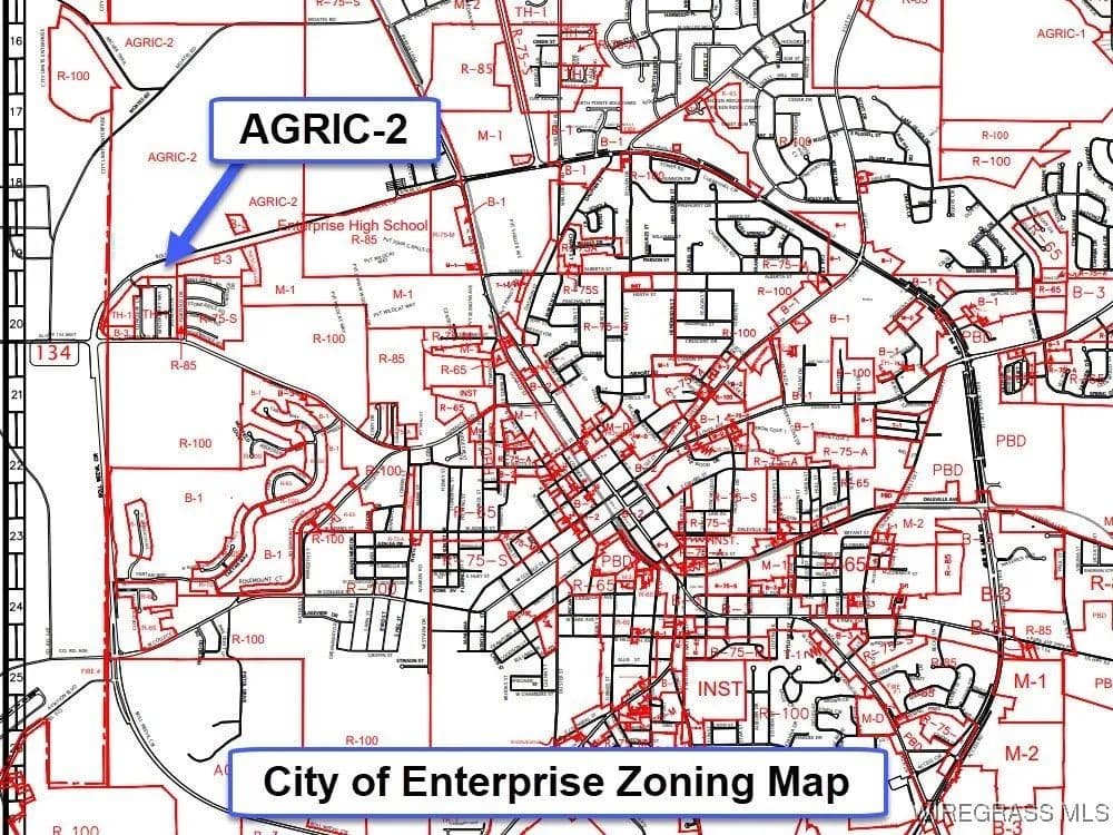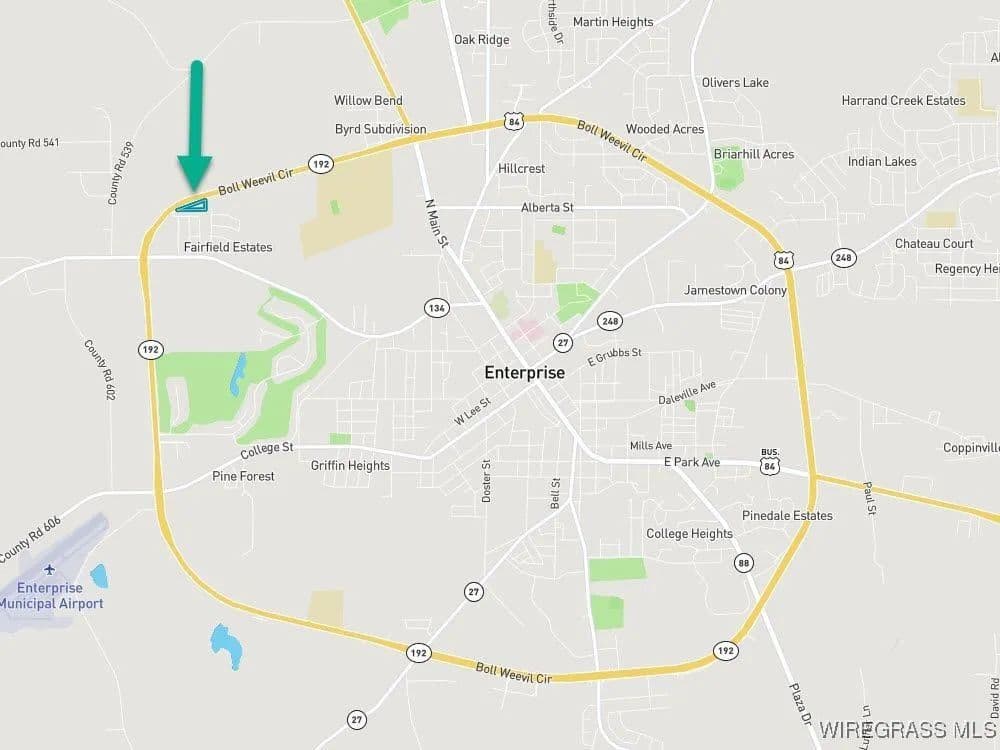 Commercial Investment Opportunity! 3.45 surveyed acres of prime commercial property. This parcel has 830 feet of frontage on the Boll Weevil Circle in Enterprise. The triangle-shaped parcel is over 300 feet deep on the east boundary. Parcel is currently zoned Agricultural-2. This is an excellent location for various commercial uses & located on the NW corner of Boll Weevil Circle between Hwy 134 & the Enterprise High School. Average traffic count of 7,549 (2024, ALDOT) City water, city sewer, electric available-Alabama Power, gas available. Taxes: $139/year (2024)
