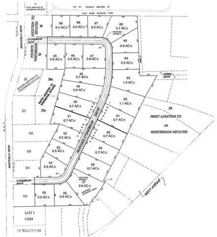 Welcome to the next addition to Westbrook Estates! Conveniently located in close proximity to schools, shopping, and the hospital while also maintaining a quiet, country-like setting. Stonebriar Drive is currently under development with two phases taking place. Phase 6 will include 15 generous lots available ranging from 0.4 acres to 1.1 acres M/L. Access will be off Monticello connecting you to the existing subdivision with a playground, pickleball/basketball court, and walking/biking path of the RecPlex! Whether you're a builder seeking your next project or a homeowner looking for the perfect place to build, this property offers a rare combination of flexibility, space, and potential. Take advantage of this rare opportunity to invest in a growing area and help shape a vibrant new neighborhood. Utilities and infrastructure details available upon request. Don’t miss your chance to be part of this exciting development!