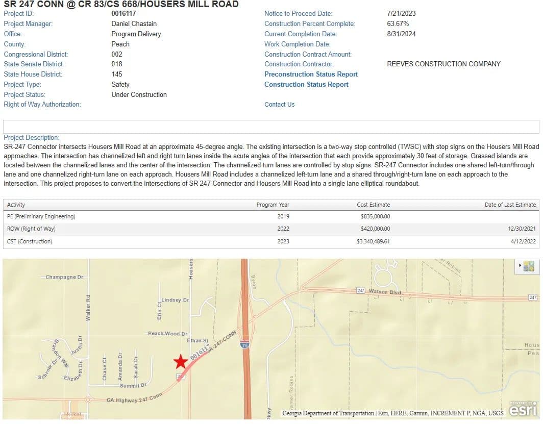 Lot Details: GA DOT is currently under construction for a Roundabout at this intersection (See following page for additional details)