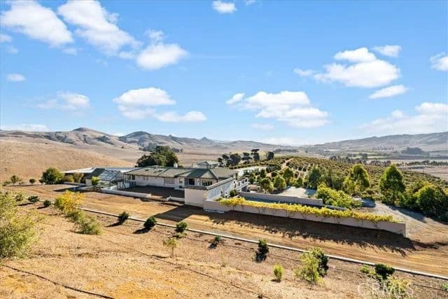 Experience a world of unparalleled beauty, privacy and opportunity at this 637-acre ranch estate, just 5 miles from the Pacific Ocean. Nestled in a secluded San Luis Obispo valley and surrounded by other expansive ranches, this property combines breathtaking landscapes with exceptional amenities for agriculture, recreation, and luxury living. The ranch is in the Williamson Act and features 120 acres of hay and crops, 50 acres of avocado groves protected by extensive windbreaks, rolling oak-studded hills, and grazing pastures. Three wells, a 400,000-gallon reservoir, 2 large tank farms and a sophisticated irrigation system support year-round operations. At the heart of the ranch lies an over 7,400 sq. ft. beautifully built custom main residence completed in 2021. Designed for luxury and comfort, the home boasts 5 bedrooms plus an office, 6 bathrooms, expansive living spaces, tall ceilings and oversized doors, an incredible gourmet kitchen, a recreation room with a bar and pool room, an elevator, 3 fireplaces, attached 4 car garage with workshop and irreplaceable craftsmanship showcased throughout. Adjacent greenhouse, fruit orchards, and gardens surround the home, creating a serene oasis. Complementing the residence and supporting the ranch are several meticulously constructed outbuildings, including an over 11,000 sf insulated shop perfect for an indoor sport court or RV storage, a private airplane hangar with runway access, as well as a hay barn, working barn, and equipment barn, each fully equipped for agricultural and operational needs. Adding to the ranch’s functionality is the original 1,500 sq. ft. 3-bedroom farmhouse, ideal for ranch hands or guest accommodations, offering charm and practicality to support daily operations. With ample infrastructure, and proximity to the coast, San Luis Obispo, and Cal Poly, this ranch offers unparalleled versatility—ideal for luxury living, farming, ranching, or aviation enthusiasts.