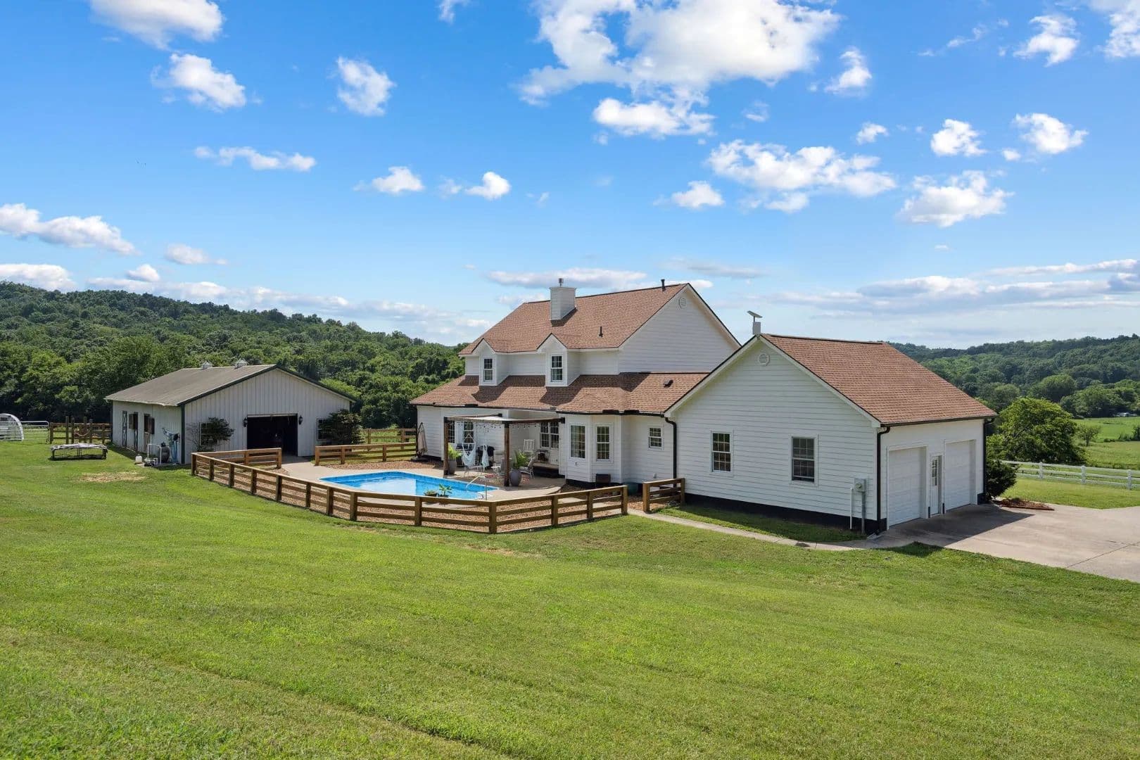 Step into a place where country charm and modern comfort come together. This exceptional Middle TN property spans 45 acres, fully fenced and cross-fenced, making it a perfect private equestrian estate. You will enter the property through a gate, crossing over Ashland Creek via a newly fortified concrete bridge that supports 80,000 lbs. This property offers a main residence, a barndominium, 4 barns, and a 40x60 shop. The main residence has been beautifully renovated w/ no detail overlooked, specifically the kitchen w/ custom cabinetry, high end appliances, and elegant finishes. All bedrooms are thoughtfully arranged. The primary bedroom is conveniently located on the main floor, while 4 additional bedrooms are situated upstairs, each with its own full Jack and Jill bathroom. Also, a functional layout featuring a dedicated laundry room and mudroom, conveniently located adjacent to the 2 car garage along with a separate office or flexible-use room. (See specific details of residences and barns in website attached in Links section) Spend your mornings, evenings, or even all day by the salt water in-ground pool w/ brand new pool liner, generator, control panel & filter. The barndominium is 925 sq ft w/ 2 bedrooms and 2 full bathrooms. It also features hardwood and tile flooring, galley kitchen, laundry room, front porch, and an outdoor asphalt parking pad. This space is perfect for those seeking a private estate for their equestrian needs to run as a business or rent it out for passive income. The separation of the main residence from the barndominium is approximately 500ft which ensures continued privacy. The only true way to really appreciate this exceptional Middle TN property is by experiencing it in person. We highly encourage you to call and schedule a private showing of this stunning luxury home and private equestrian estate. Listing agent will be present for all showings. (Upgrades and repair list for the entire property is available in the Documents section)