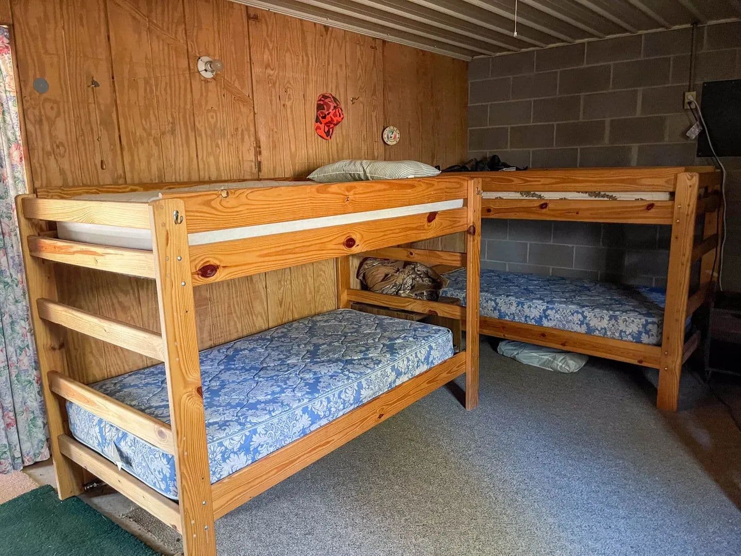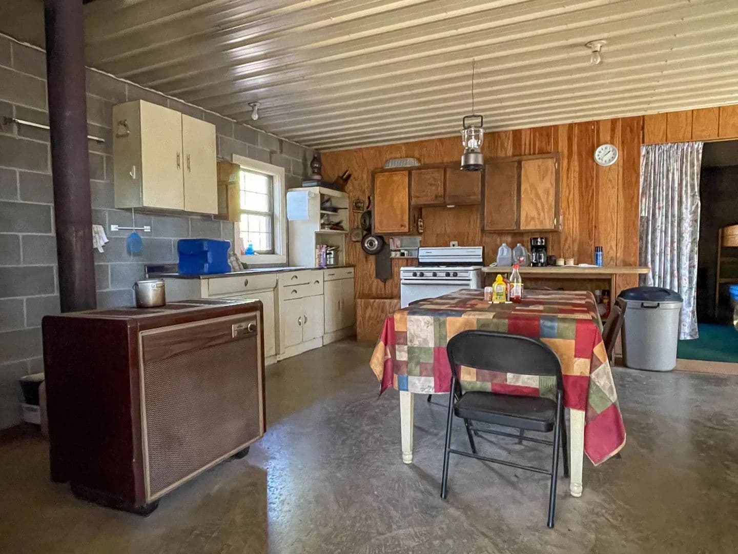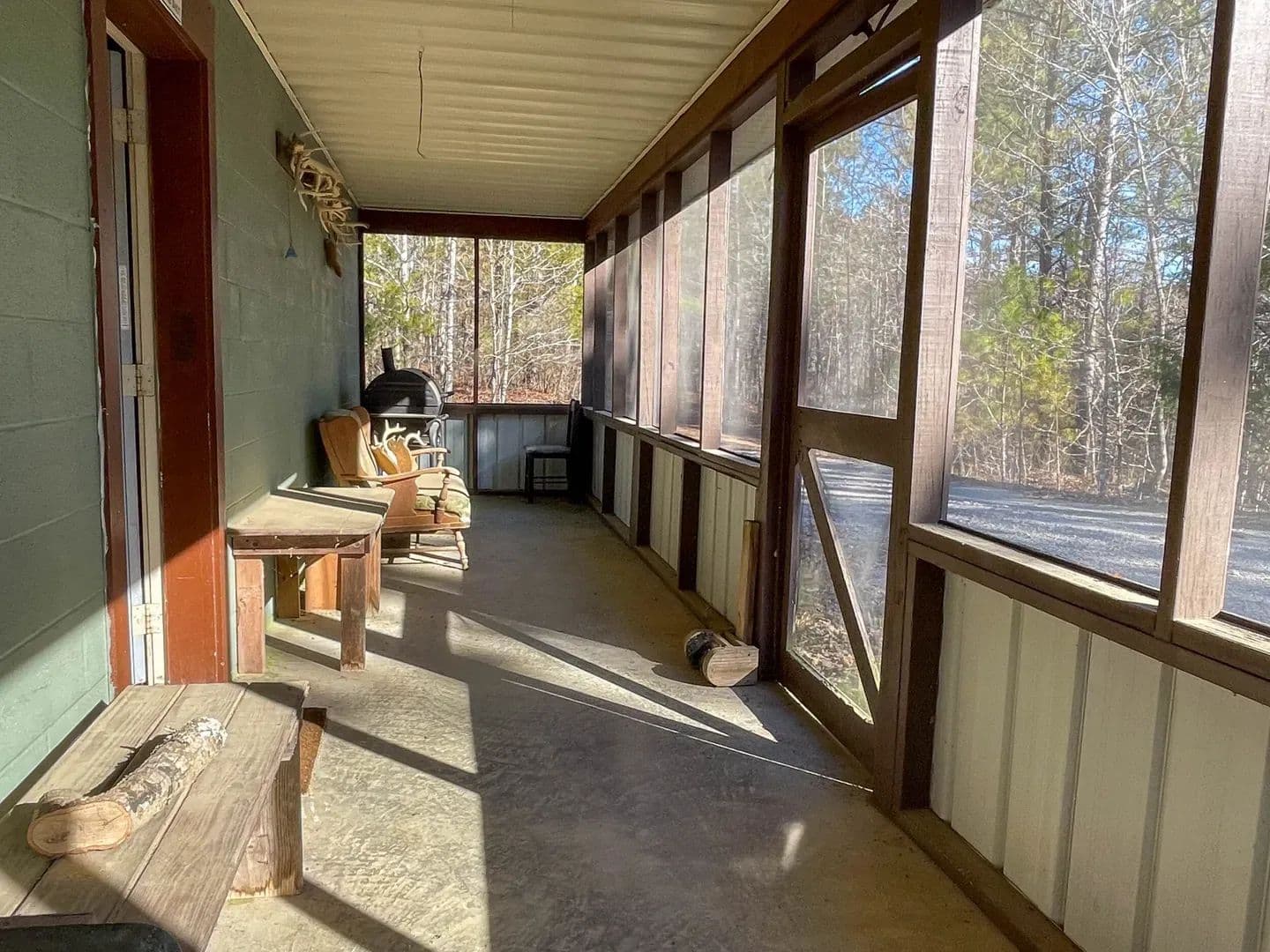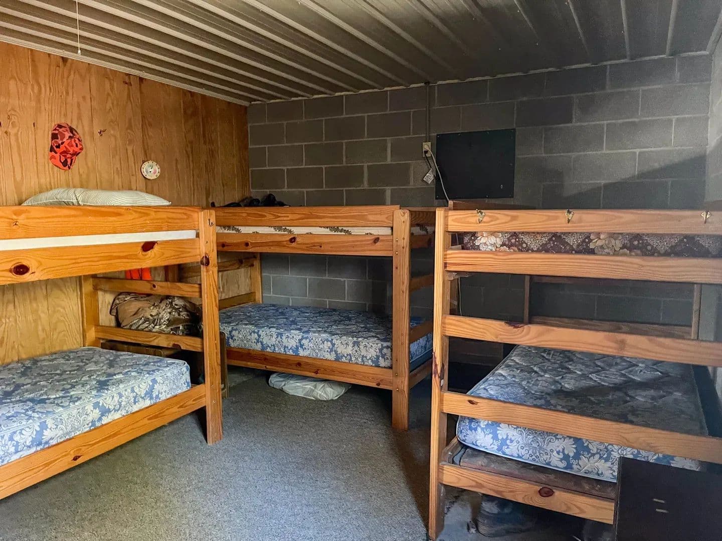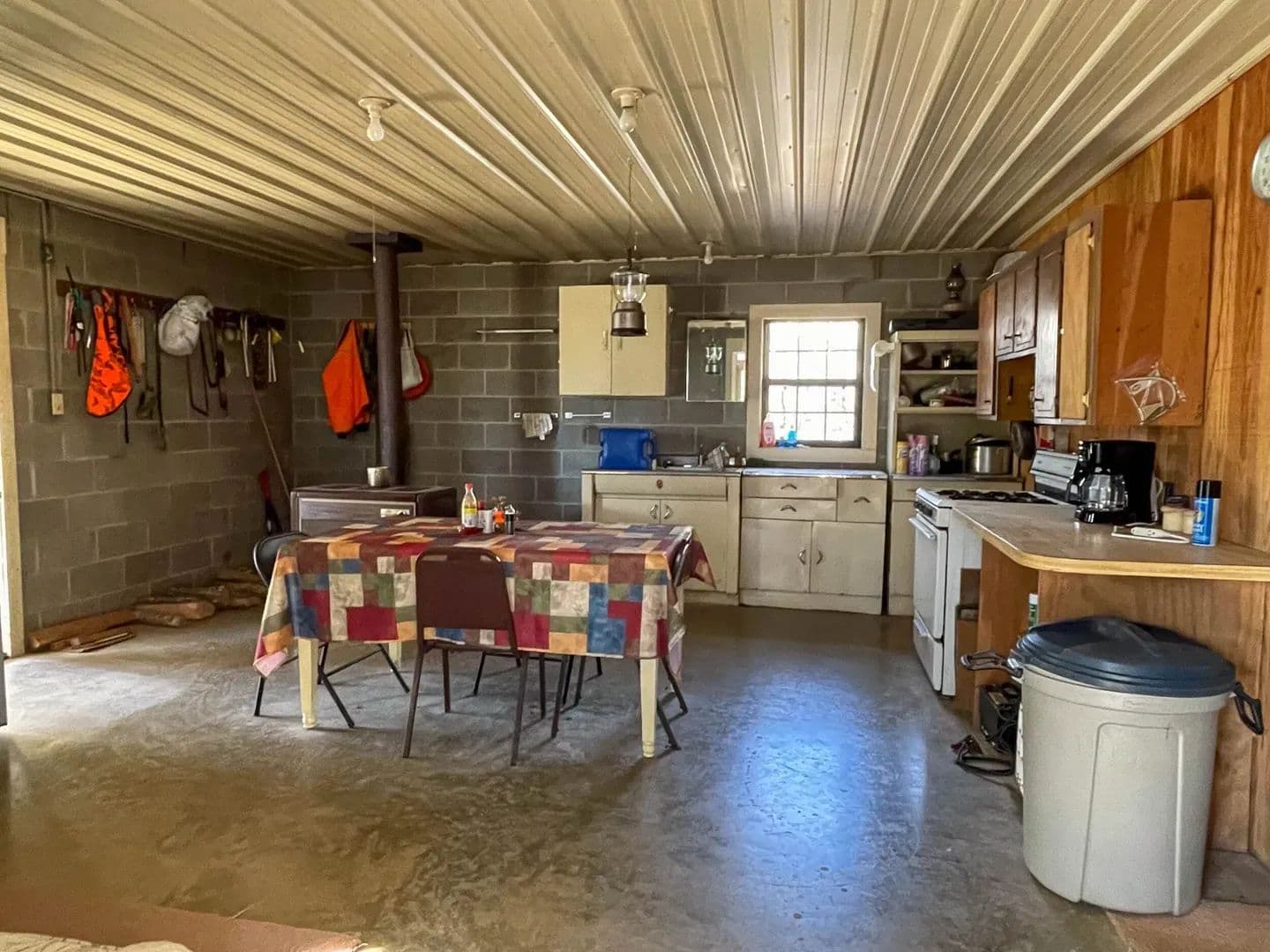 Improvements Just through the locked gated entrance you’ll find the hunting lodge that is approximately 1556 sq ft. The lodge is big enough to accommodate several people at one time and would be perfect for hosting several of your hunting buddies at once. This is also a hoist right outside the lodge to hang your deer