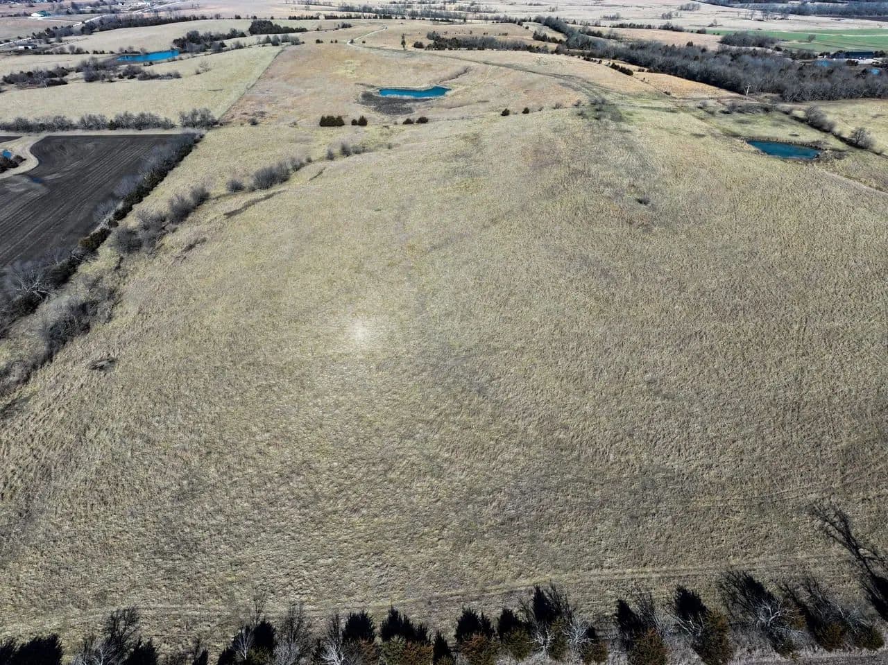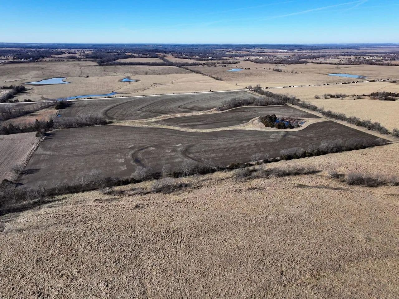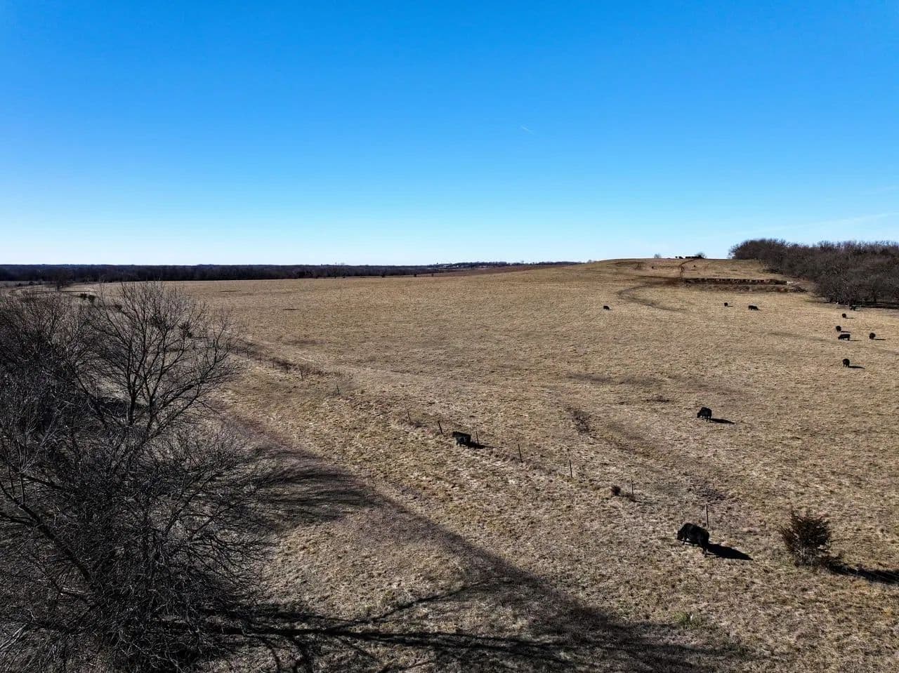 Diversified Farm 139 acres+/- has it all, income producing cropland, the pastures are a cattleman's dream with year around grazing, cool season pasture, warm season pasture, 4 ponds, treed areas, whitetails and other wildlife. The fencing is good to excellent. There is a livestock pond in each of the four cross fenced sections, including the West 40 that has 34 acres tillable Woodson Silt Loam soil, produced soybeans this year with the remaining acres of that West 40 in grass waterways and timber including trees around the pond and road frontage on the West. You could add electric fence to the South and West sides of the cropland section to graze crop residue. The middle 40 of Native Prairie is fenced and has a good pond. The East 60 of cool season grass is divided with cross fencing into a larger tract of 49 acres+/- with a recently cleaned out pond and a smaller pasture of 11 +/- acres on the East end of the property that has a pond and a 60 x 30 barn and a catch pen. The two middle tracts both have high hills that rise 70 feet in elevation above the lowland. The hilltops provide an amazing, scenic view of the property and the surrounding areas. You have to be there on the one of the hill tops to truly appreciate the view. Whitetail deer cross the property along the tree lines and fence lines and of course the 34 acres of cropland on the West with a pond surrounded by trees is a magnet for whitetails. There is a rural water service line along the East side of the property next to Eisenhower Rd. Check with the RWD to verify water meter availability. This property is a mile long with road frontage on both Louisana Rd and Eisenhower Rd. The owners are selling this property as one tract. Because there is road frontage on both ends/roads, "maybe" the property can be split into two tracts with a simple lot split if both tracts have a minimum of 40 acres. Check with Franklin County. Bonus: the Kansas sunrises and sunsets can be gorgeous, looking out from on top of the hills. All that and it is just 35-45 minutes from the KC metro area.