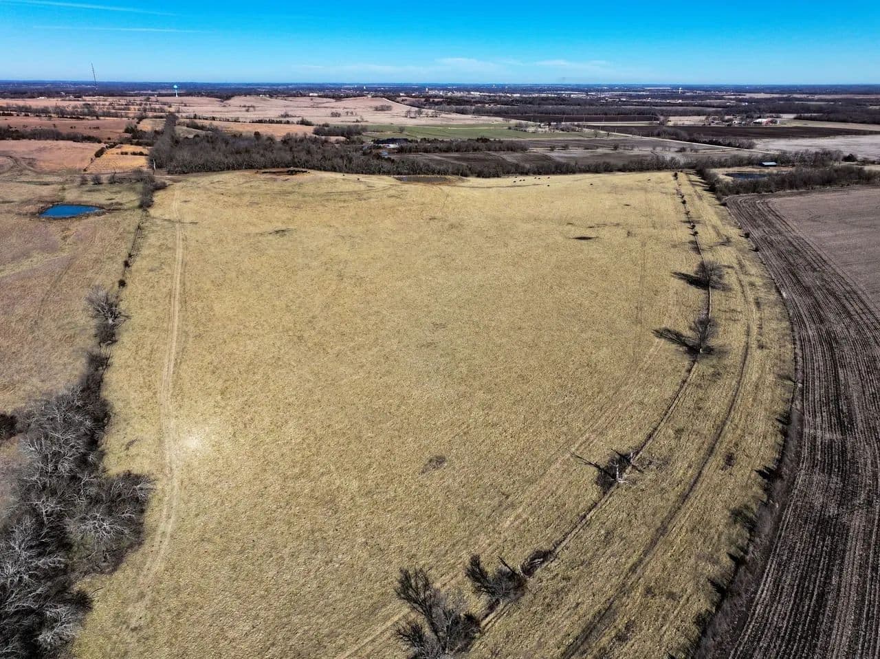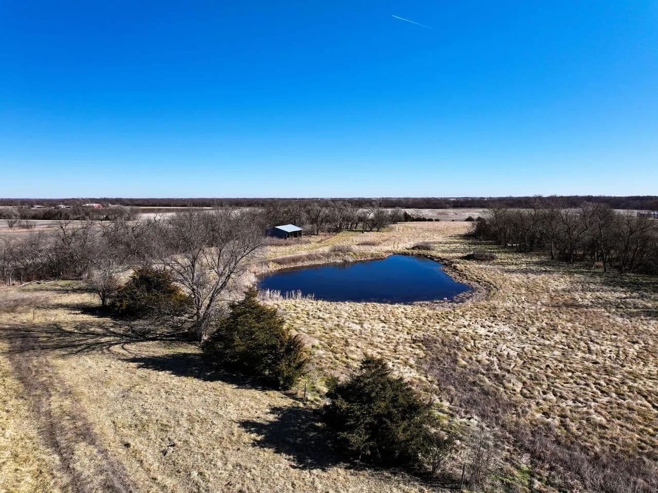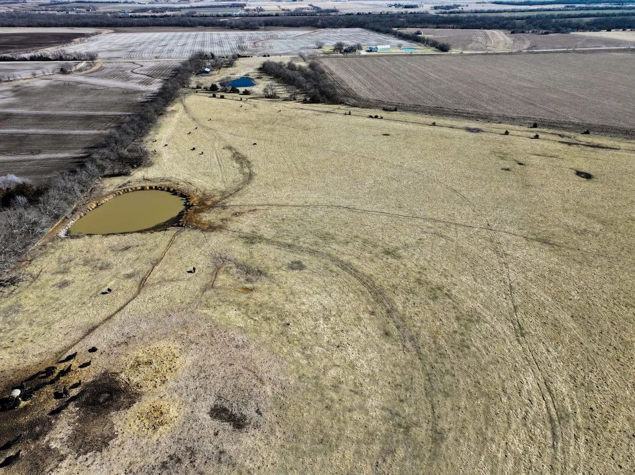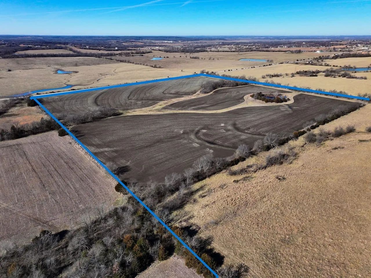 Diversified Farm 139 acres+/- has it all, income producing cropland, the pastures are a cattleman's dream with year around grazing, cool season pasture, warm season pasture, 4 ponds, treed areas, whitetails and other wildlife. The fencing is good to excellent. There is a livestock pond in each of the four cross fenced sections, including the West 40 that has 34 acres tillable Woodson Silt Loam soil, produced soybeans this year with the remaining acres of that West 40 in grass waterways and timber including trees around the pond and road frontage on the West. You could add electric fence to the South and West sides of the cropland section to graze crop residue. The middle 40 of Native Prairie is fenced and has a good pond. The East 60 of cool season grass is divided with cross fencing into a larger tract of 49 acres+/- with a recently cleaned out pond and a smaller pasture of 11 +/- acres on the East end of the property that has a pond and a 60 x 30 barn and a catch pen. The two middle tracts both have high hills that rise 70 feet in elevation above the lowland. The hilltops provide an amazing, scenic view of the property and the surrounding areas. You have to be there on the one of the hill tops to truly appreciate the view. Whitetail deer cross the property along the tree lines and fence lines and of course the 34 acres of cropland on the West with a pond surrounded by trees is a magnet for whitetails. There is a rural water service line along the East side of the property next to Eisenhower Rd. Check with the RWD to verify water meter availability. This property is a mile long with road frontage on both Louisana Rd and Eisenhower Rd. The owners are selling this property as one tract. Because there is road frontage on both ends/roads, "maybe" the property can be split into two tracts with a simple lot split if both tracts have a minimum of 40 acres. Check with Franklin County. Bonus: the Kansas sunrises and sunsets can be gorgeous, looking out from on top of the hills. All that and it is just 35-45 minutes from the KC metro area.