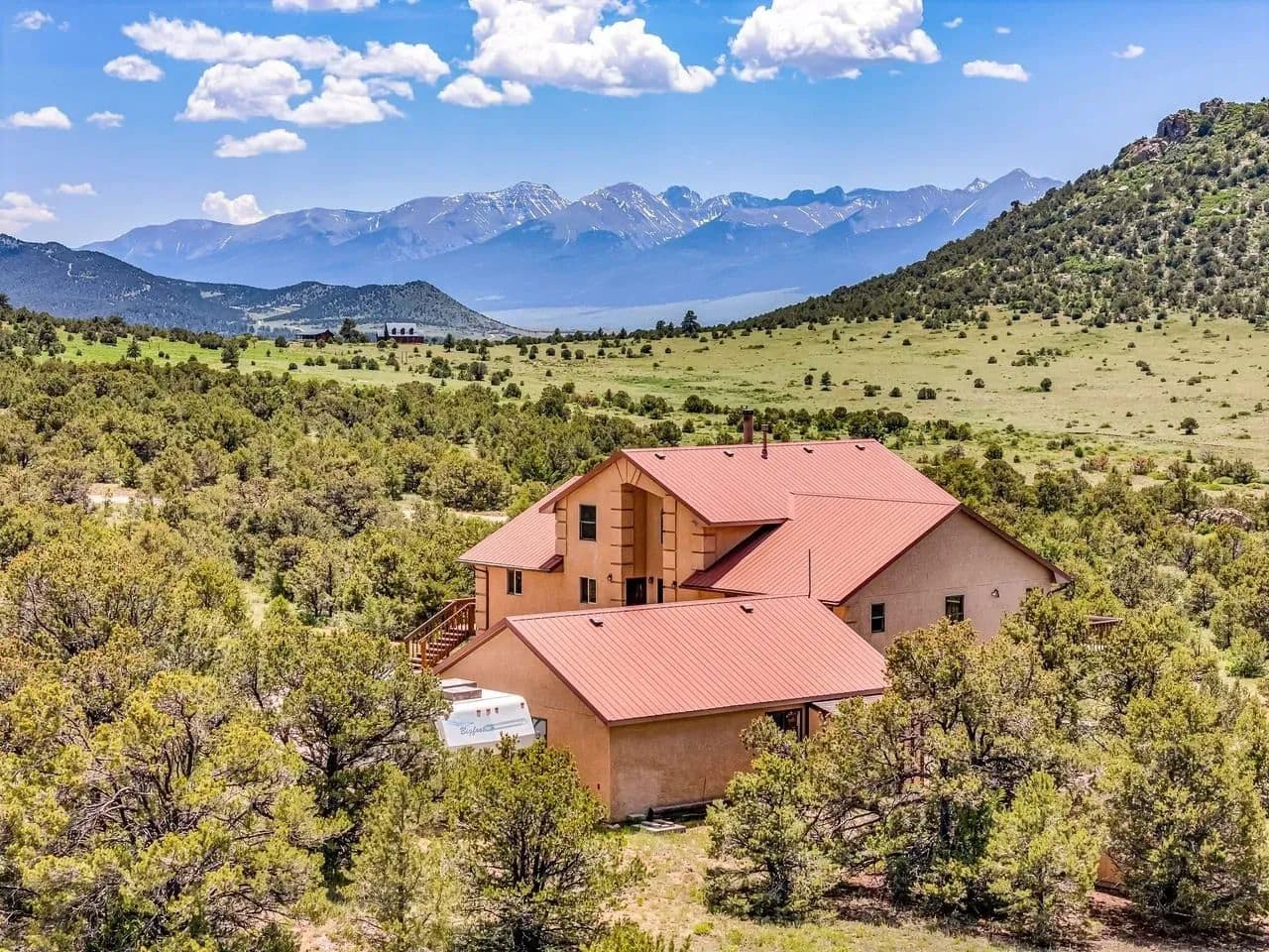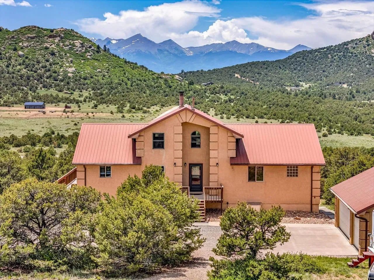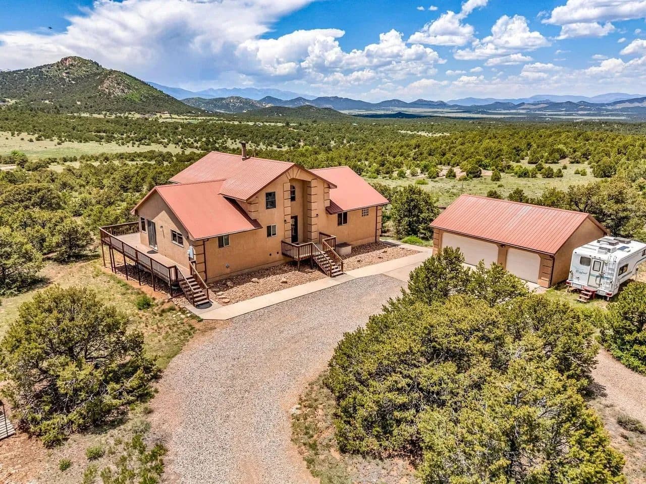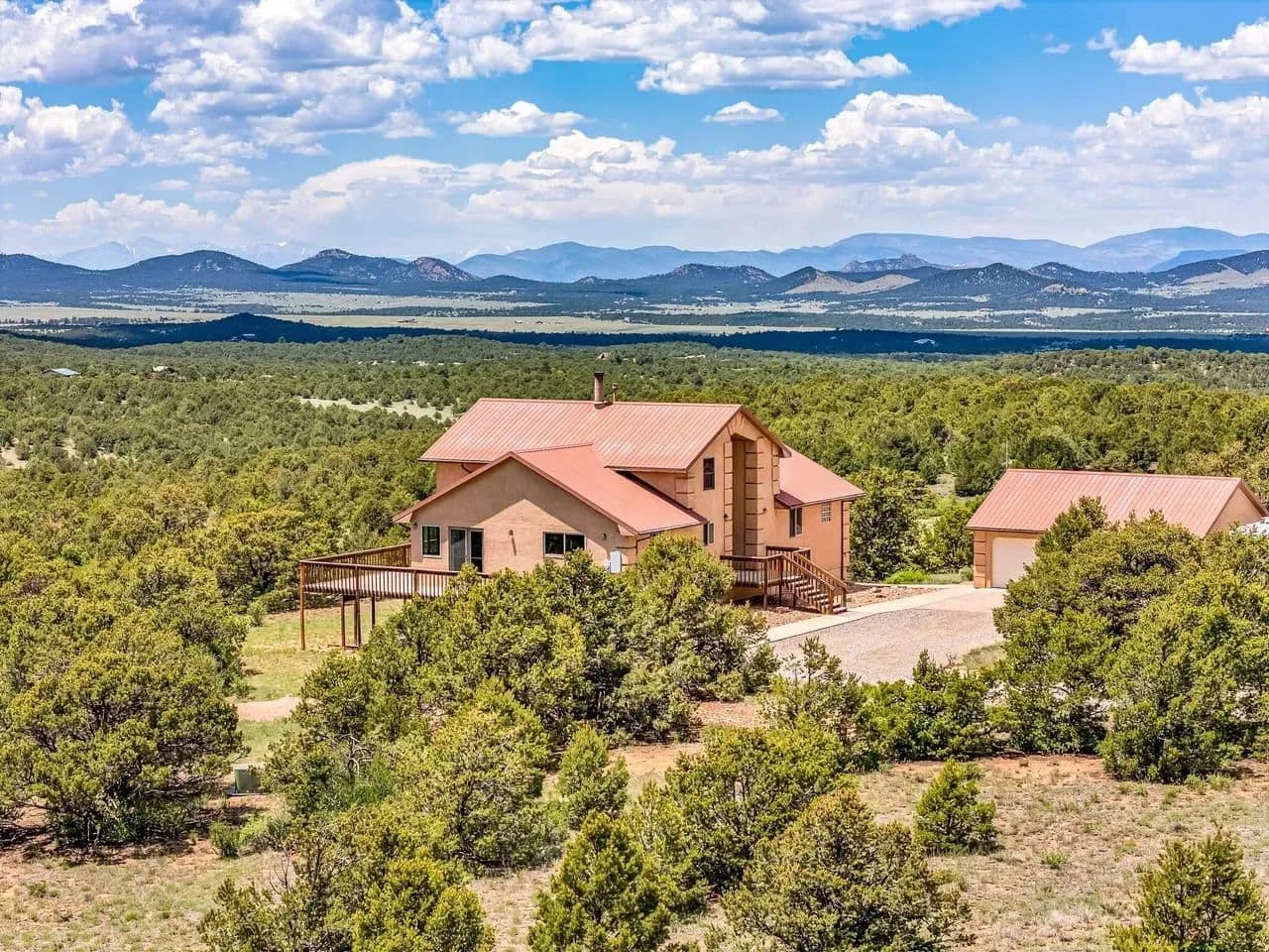 Custom-built 4 bedroom, 3 full bath, 4,010 sq ft home located on 35 acres just 12 miles from Westcliffe, Colorado. In a quiet, private location this home offers the ultimate mountain lifestyle with panoramic views of the Sangre de Cristo Mountains and Wet Mountain Valley and access to thousands of acres of BLM land less than a mile away for horseback riding, trails, and fishing in Grape Creek. Open-concept floorplan showcased by a stunning wall of windows flooding the great room with natural light and capturing the ever-changing mountain landscape. The main level features a spacious master suite with ensuite bath, an additional bedroom or office, and a second full bathroom. A versatile loft area offers a great space for an office, craft area, or reading area. The fully finished walkout basement adds two more bedrooms, a third full bath, and two expansive flex rooms ideal for a second living area, home gym, game room, or media space. An oversized three-car detached garage provides ample room for vehicles, outdoor gear, and recreational toys. Enjoy world-class stargazing in this officially designated Dark Sky Community, along with unlimited outdoor recreation just minutes from your door. Hike hundreds of miles of trails, climb 14,000-foot peaks, or fish and boat at nearby DeWeese Reservoir (7 miles away). Explore high mountain lakes, pristine streams, and even venture across the divide to the Great Sand Dunes National Monument by 4WD. Despite its peaceful, remote feel, the home is easily accessible: 20 miles to Silver West Airport, 40 miles to Canon City, 51 miles to Salida, 67 miles to Pueblo, 90 miles to Colorado Springs Airport, and 170 miles to Denver International Airport. Priced below county appraised value. CLICK HERE FOR ADDITIONAL INFORMATION >>