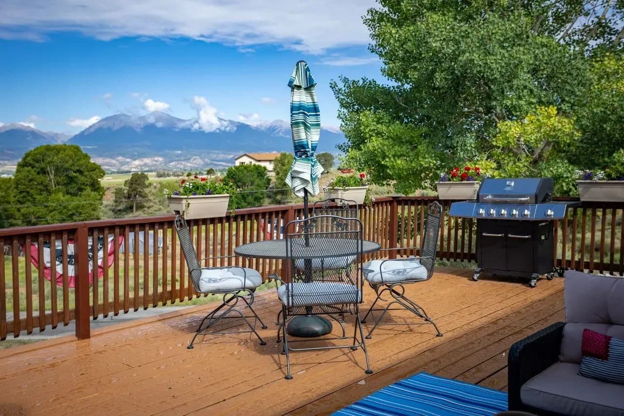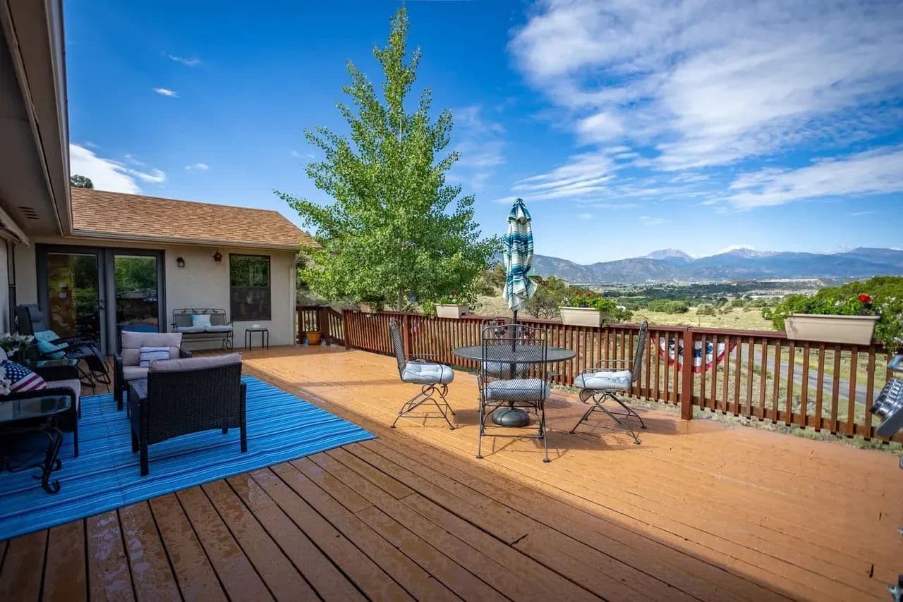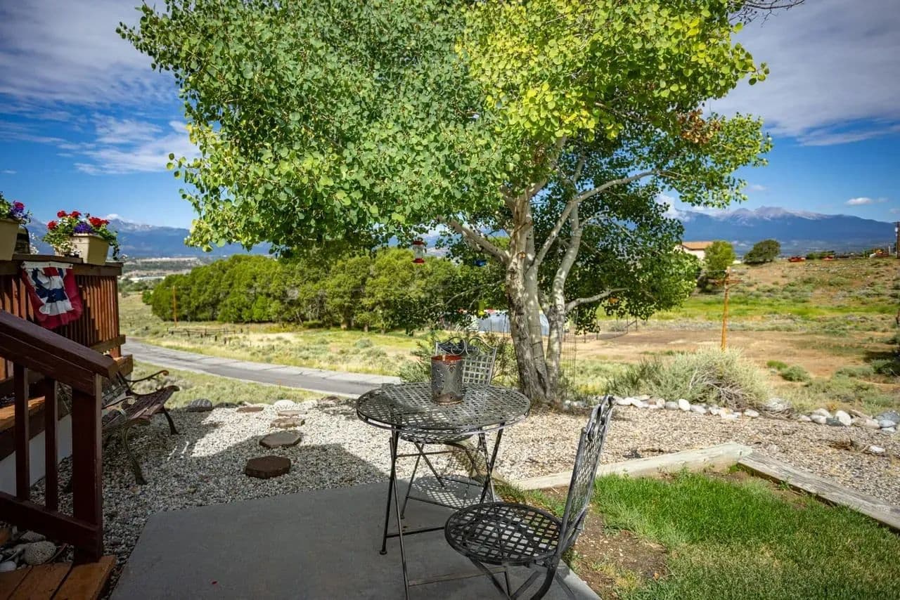 Well maintained move-in ready home on 1.2 acres in Salida, Colorado. Private corner lot location with unobstructed views of the Sangre de Cristo Mountains and the Sawatch Range including the Collegiate Peaks and the Chalk Cliffs of Mt. Princeton. Sought after location in an established neighborhood only 2 miles from downtown Salida, 1.3 miles to Heart of the Rockies Regional Medical Center, 1.5 miles to trails along the Arkansas River, Sands Lake, and Franz Lake and just over a 1/2 mile to public land access for hiking, biking, 4wheeling, etc. Built in 1995 the home is 1698sf, with 4 bedrooms, 2 bathrooms, open floor plan, nicely landscaped yard, massive deck with electric retractable awning, and a two car attached garage. Forced air propane heat and a recently installed Xtrordinair fireplace that provides more than sufficient heating without running the furnace. New architectural shingle roof installed in 2017. Water is provided by the Ute Heights community water system and there is a septic system on the property.