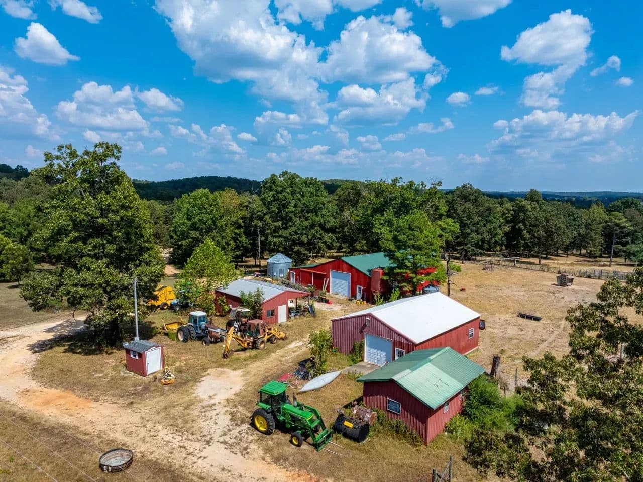 Multiple shops, hay sheds, and grain bins
