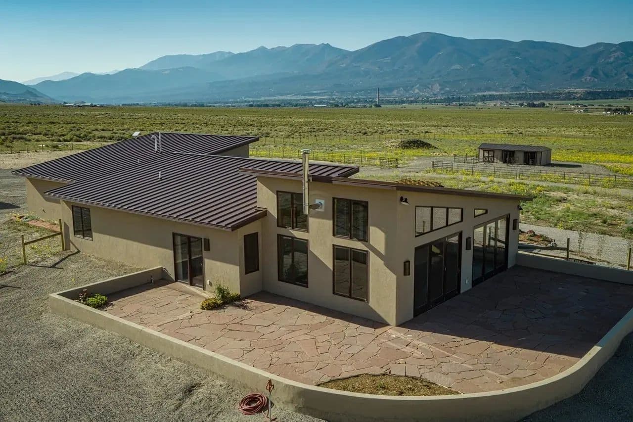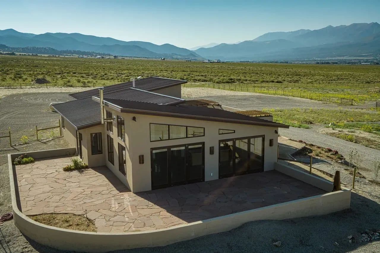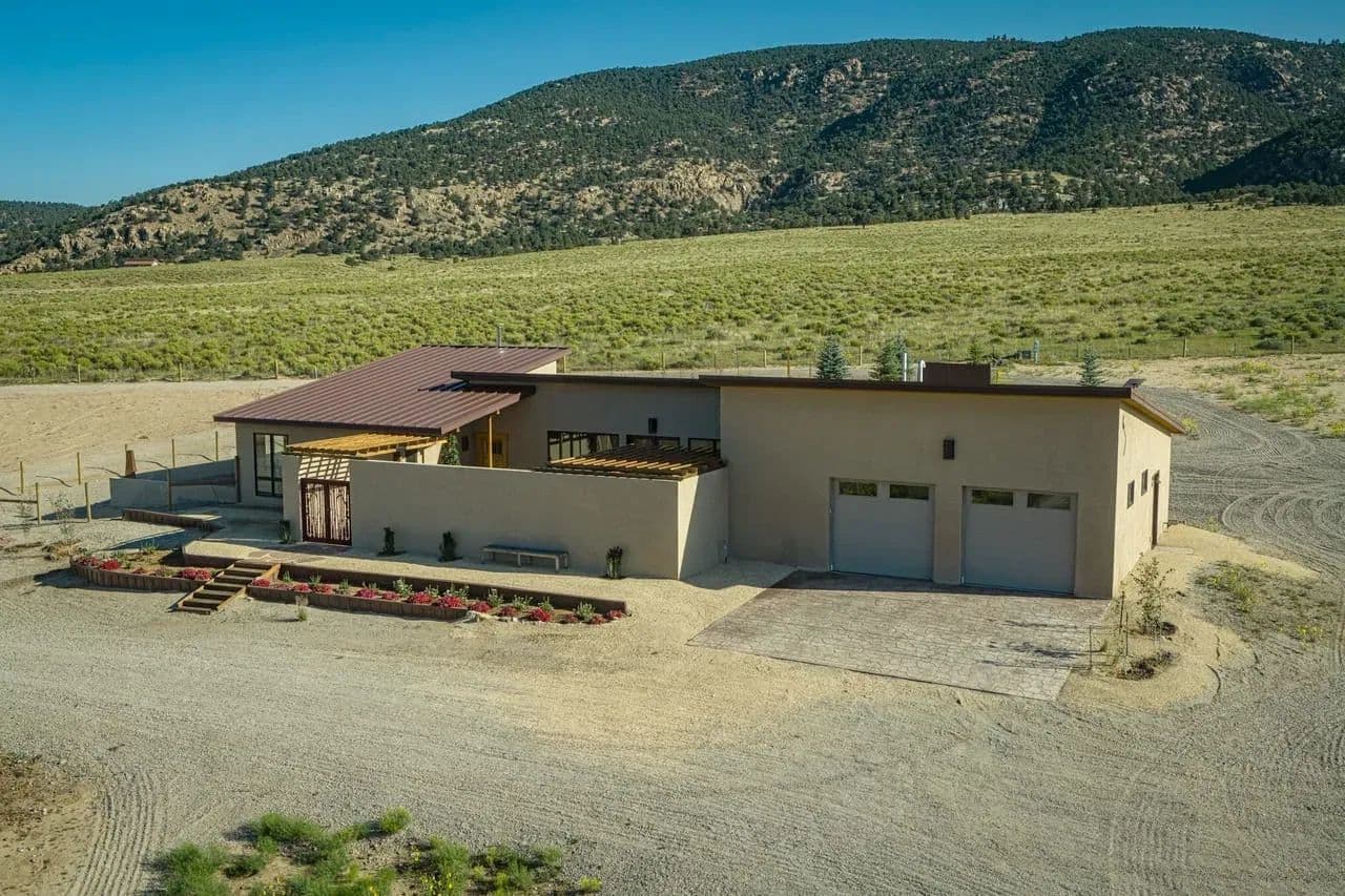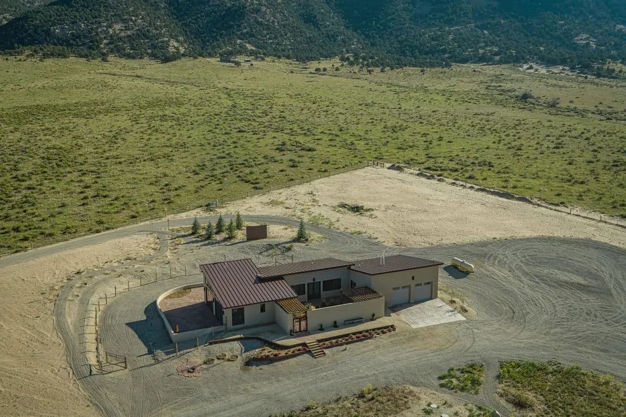 This modern, open-concept home, built in 2019, spans 1,748sf, featuring 2 bedrooms, 2 bathrooms, a modern kitchen with a clean and functional design and a large island, an oversized 2 car garage, a laundry room with a utility sink, and amazing outdoor spaces. Large windows and tri-fold glass patio doors open to panoramic views of the surrounding mountains and create an amazing indoor/outdoor experience when opened, effectively bringing the outdoors in. Polished concrete floors provide a clean, modern touch. A freestanding pellet stove adds to the comfortable feel of the home and supplements the in-floor radiant heat. Outside living space includes a large wraparound patio to enjoy the open space and mountain views and an enclosed south-side patio with pergolas providing shade and privacy. The 40 acre property is livestock ready with a two stall loafing shed with large tack room and hay storage, hydrant and automatic waterer, turnout stalls, a large 300ft x 500ft paddock, and an out-door arena (approximately 100ft x 263 ft), all constructed of steel posts and piping. A domestic well allows for watering livestock and up to an acre of lawn and garden. Bordered on two sides by BLM land the location offers plenty of open space, quiet, star-filled night skies, and direct access to public land for endless hiking, biking, or horseback riding. Downtown Salida, Colorado's largest National Historic District, is less than 6 miles away for shopping, dining, medical services, and other amenities. Arkansas River access is five miles from the property and Monarch Mountain Ski Area is only 26 miles away. There are minor covenants/deed restrictions but there is no home owner's association of dues associated with the property. MORE INFORMATION AND ADDITIONAL PROPERTIES IN THE AREA - CLICK HERE >>