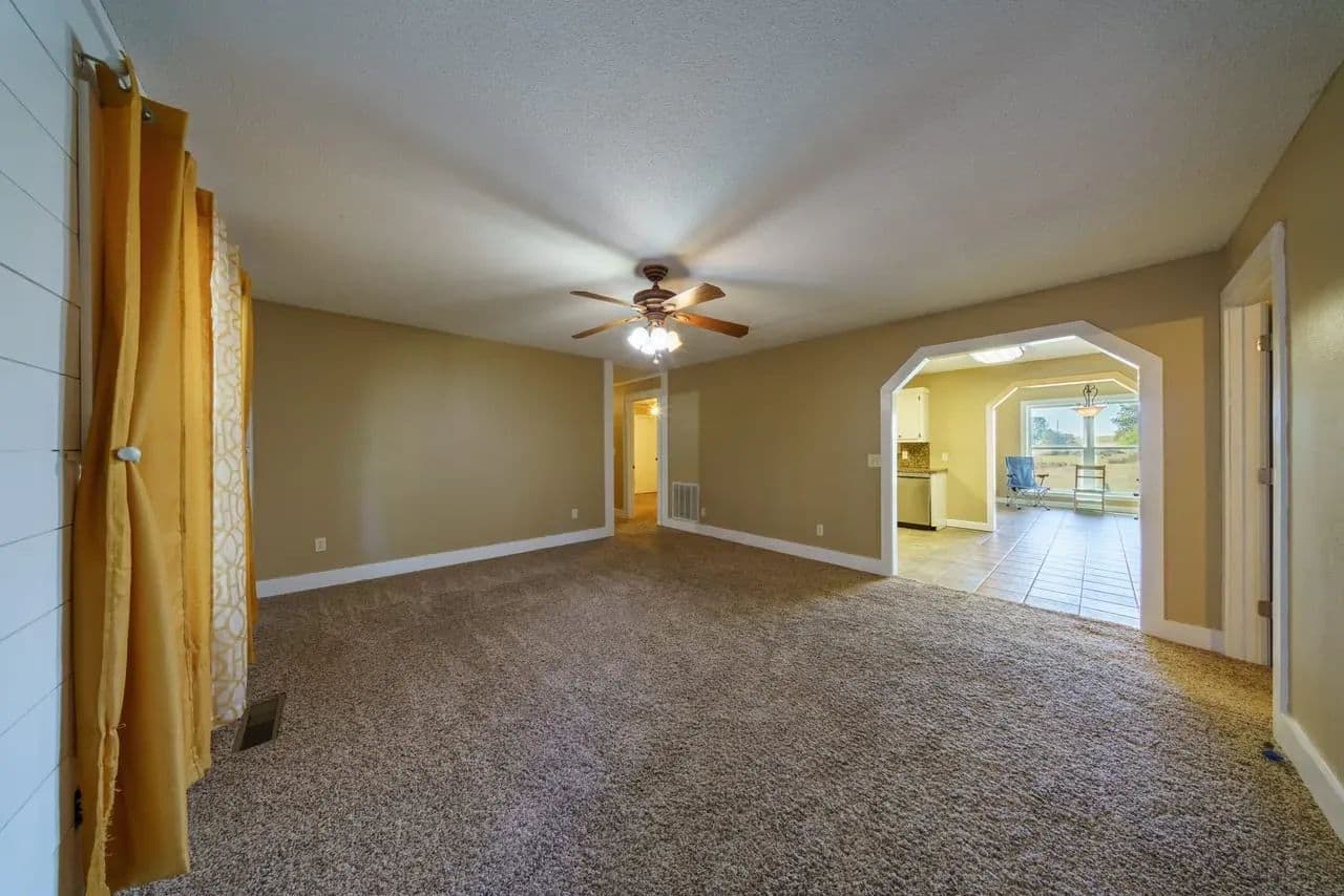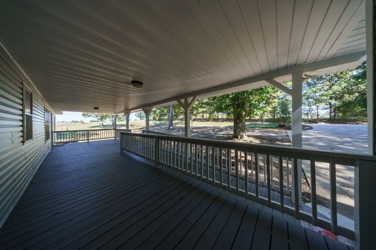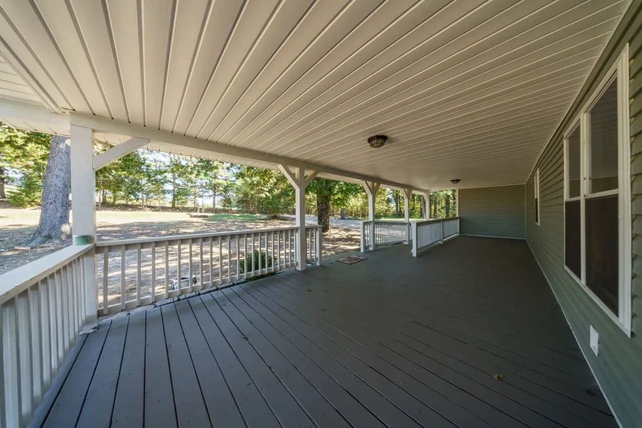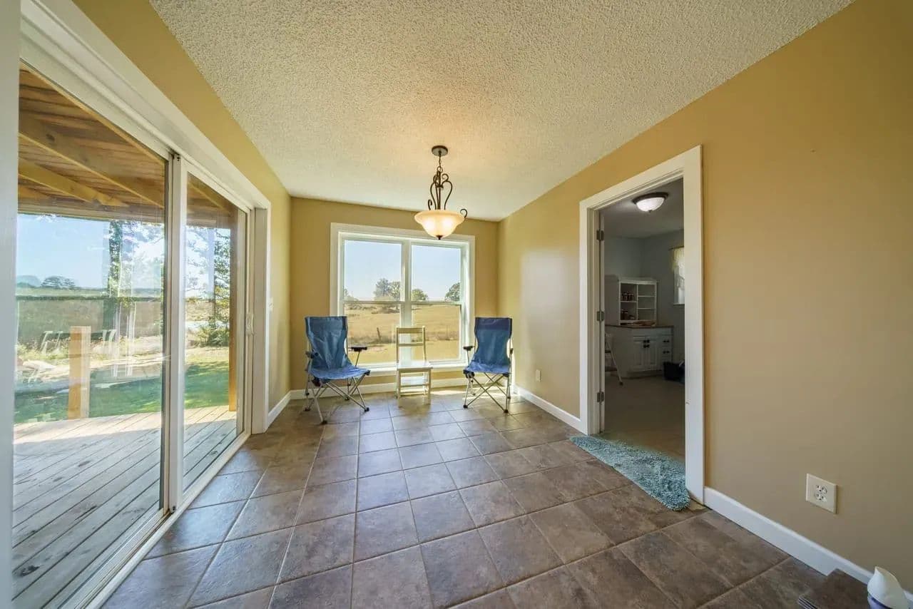 From the dining/sunroom area, Sliding glass doors lead to a covered back porch—a perfect place for grilling, entertaining, or simply enjoying quiet evenings outdoors.