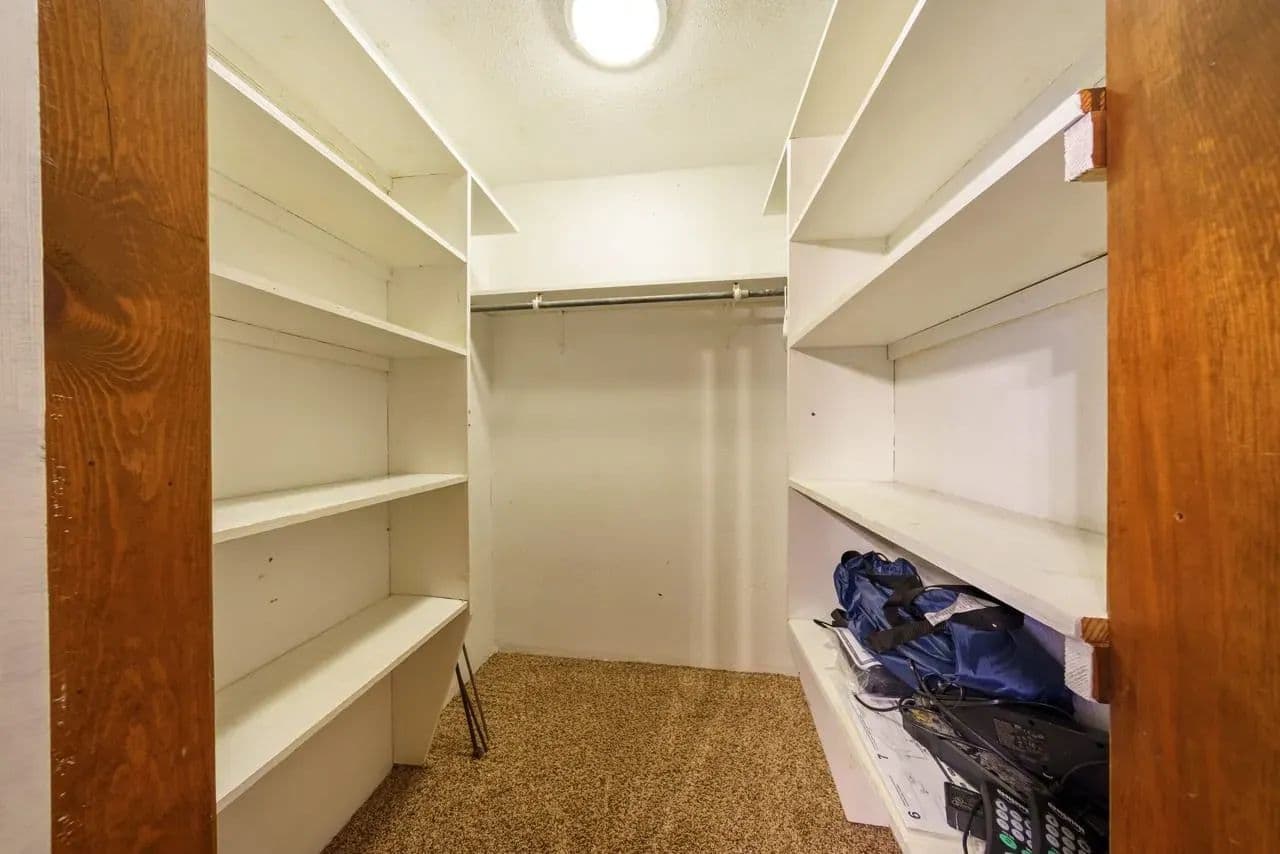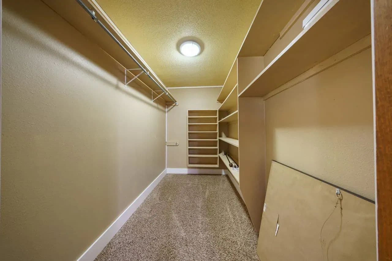 This home offers a split floor plan: the primary suite with its private bath sits on one end for privacy, while the opposite side includes two additional bedrooms, both having large closets a spacious bathroom, and a large walk-in closet that could easily serve as an office, craft room, or extra storage space.