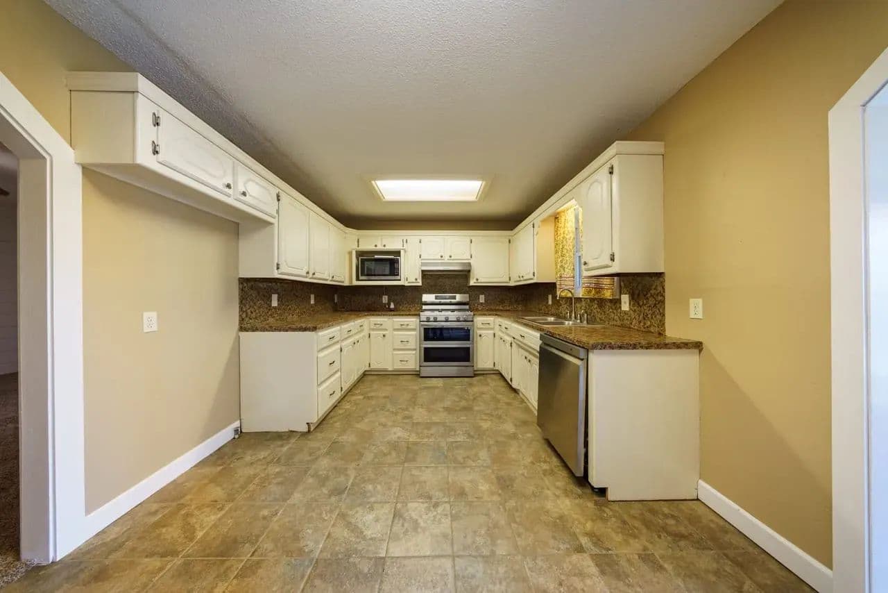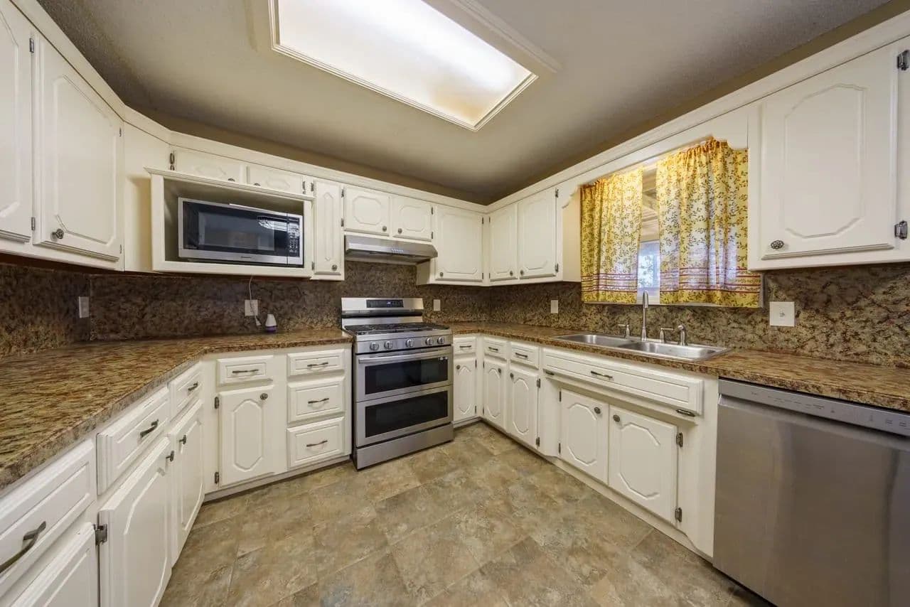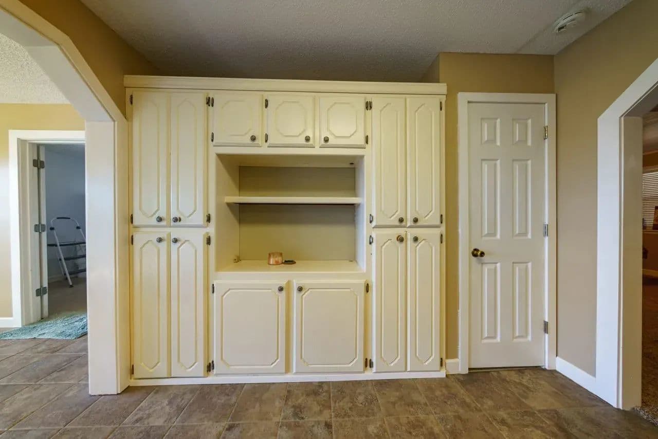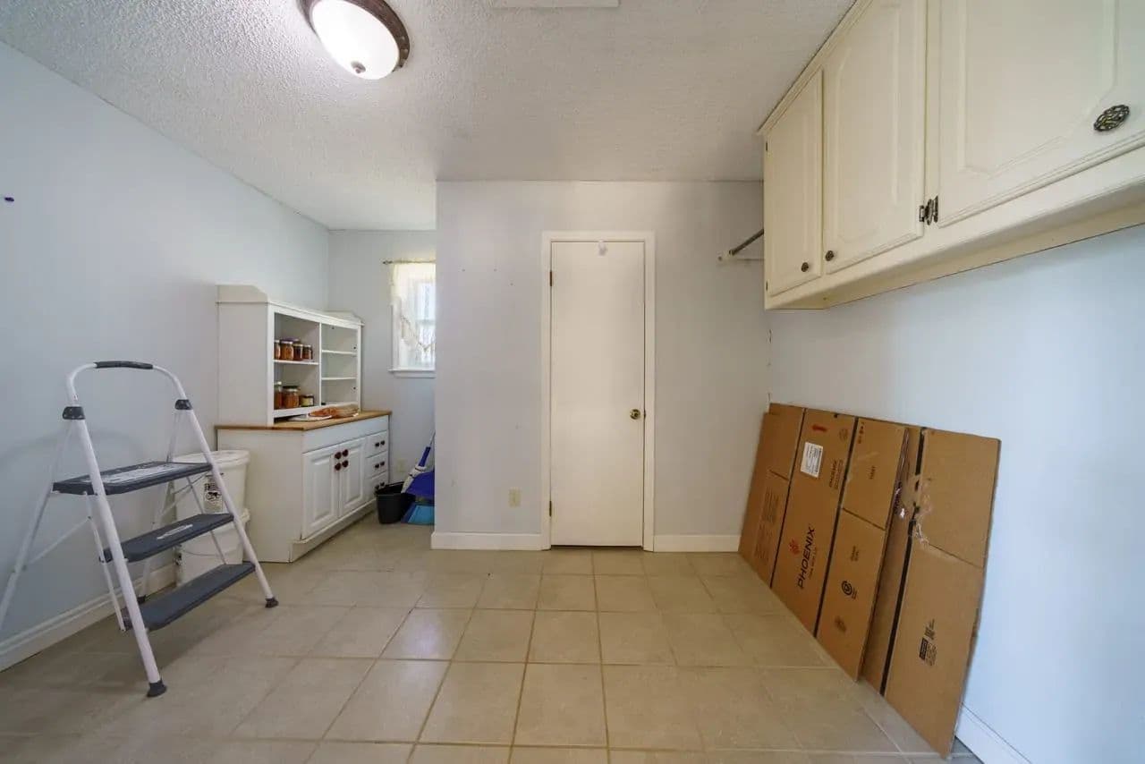 The kitchen is spacious and well-designed, featuring an abundance of counter space, beautiful cabinetry, and a built-in along the back wall that adds both storage and character. There’s also a pantry for extra organization. Just off the kitchen, you’ll find a large dining area with lots of natural light and windows overlooking the property, creating a relaxing space for family meals.