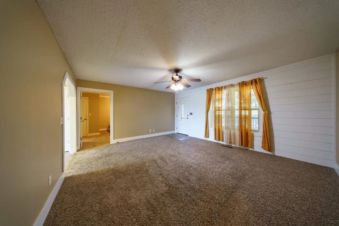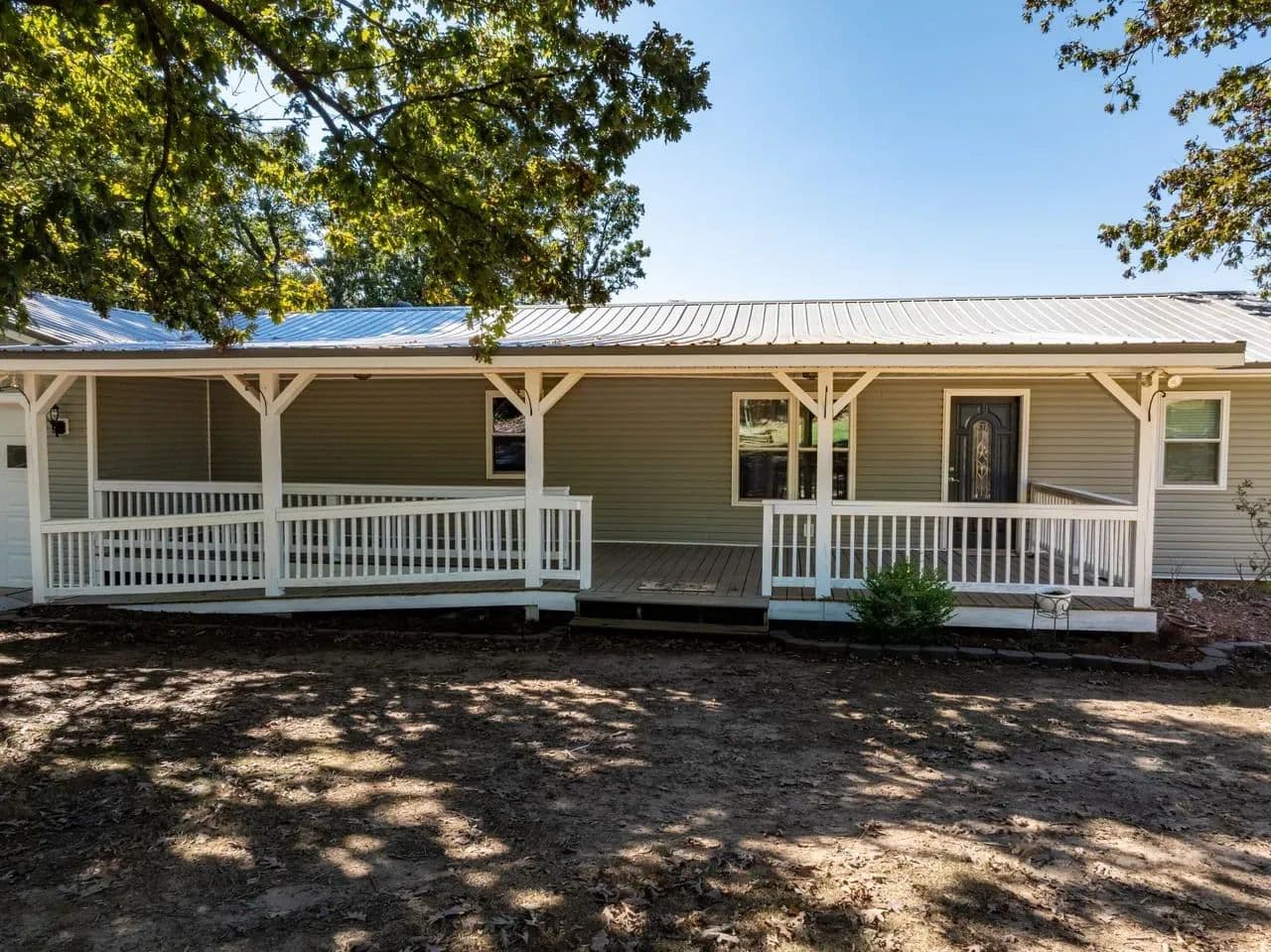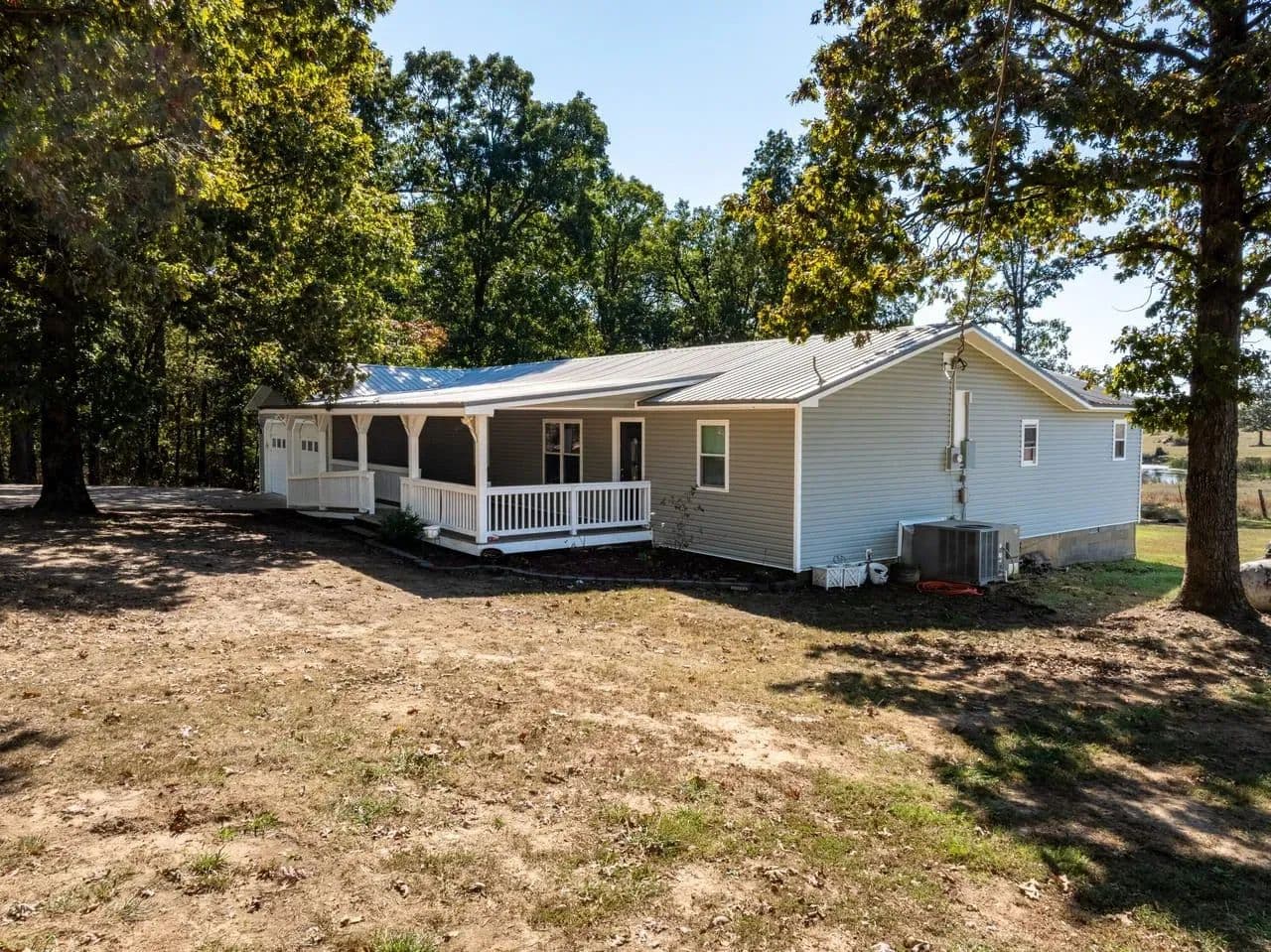 Welcome to this beautifully remodeled home sitting on approximately two acres in peaceful Edgemont, Arkansas. With great curb appeal, a metal roof, and a full-length covered front porch, this home immediately feels warm and inviting. Step inside to a bright, open living area with a touch of shiplap on the wall for that perfect farmhouse charm.
