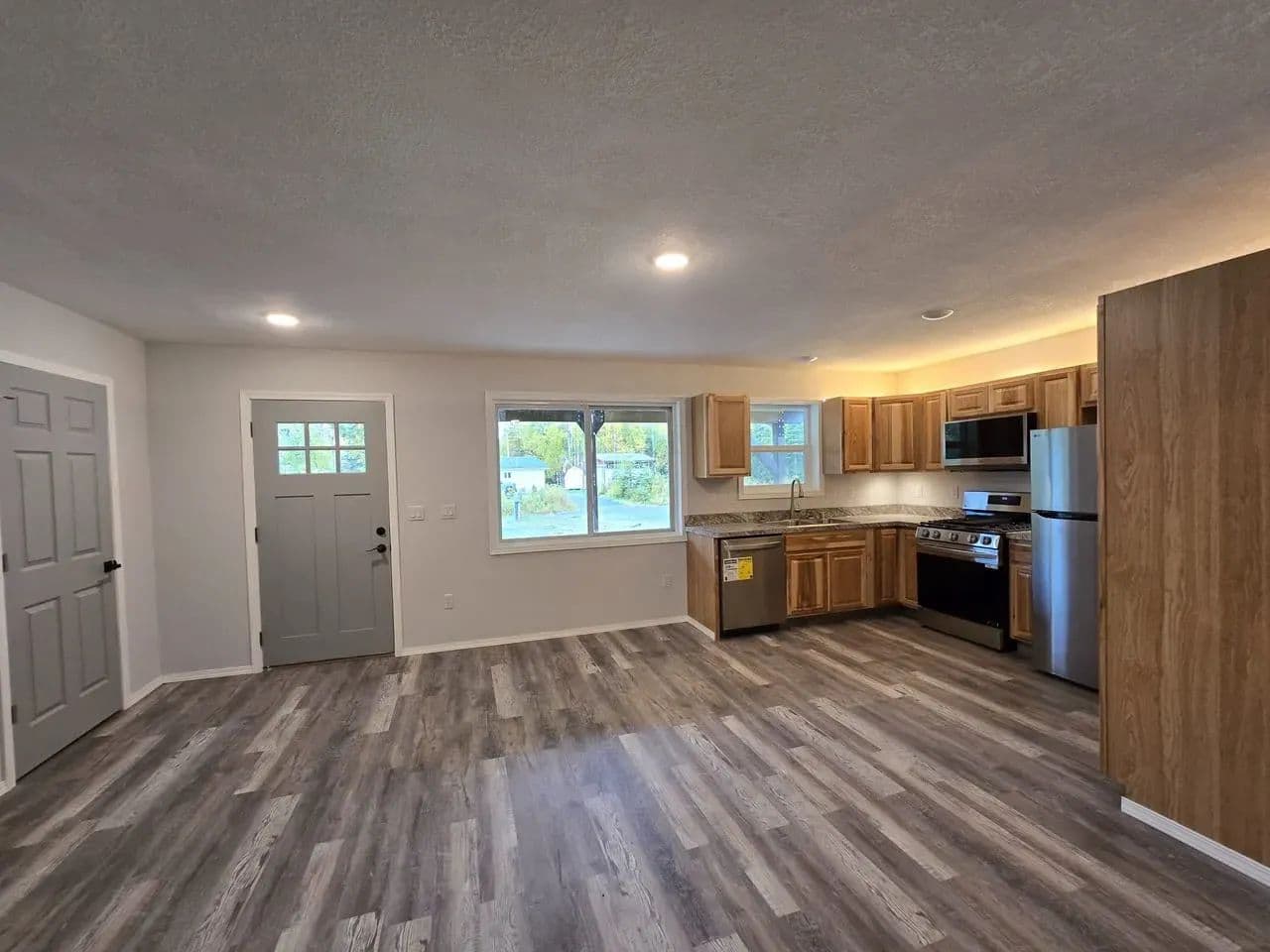 Simple yet refined for easy living this wonderful 2025 newly constructed 2 bed 2 bath ranch home is located in Ridgeway/Soldotna. The 710 sf ranch home is functional & efficient with comfortable tones of grays, creams & browns of laminate flooring blends well with Hickory cabinets in the kitchen. A generous a 640sf heated garage completes the minimalist design. Home has been wired for satillite