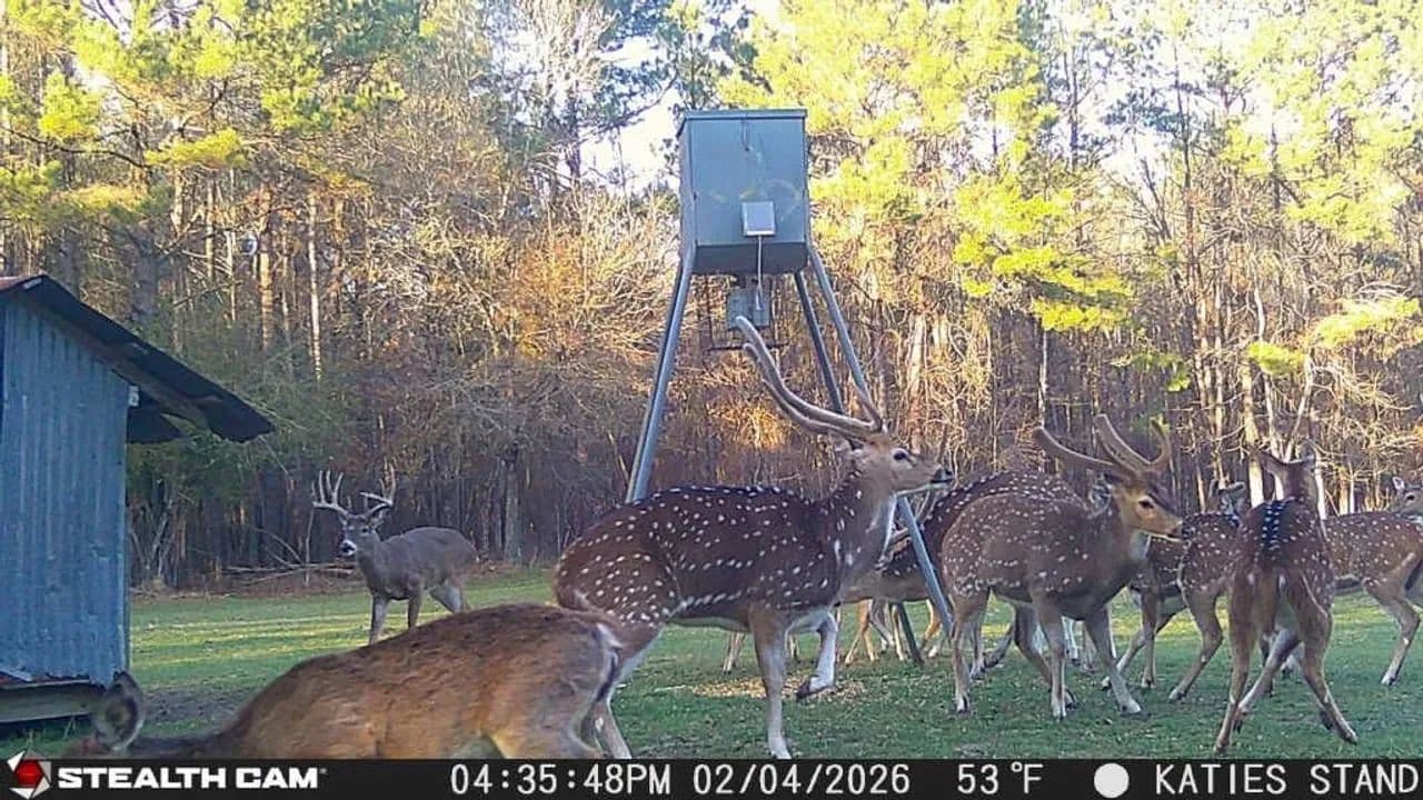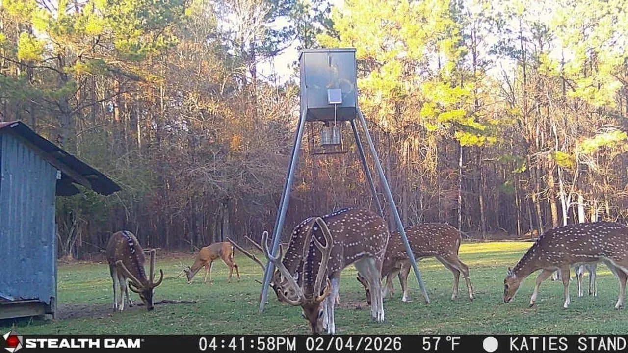 Welcome to Sanctuary on Wiggins Bayou, a one-of-a-kind, 159-acre private ranch tailored for the discerning outdoorsman. This high-fenced recreational haven is stocked with trophy whitetail deer, red stag, and axis deer, offering year-round hunting and wildlife enjoyment.