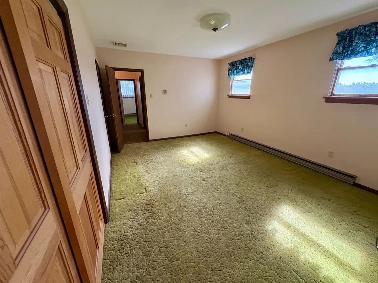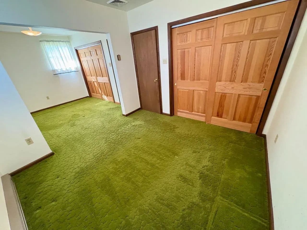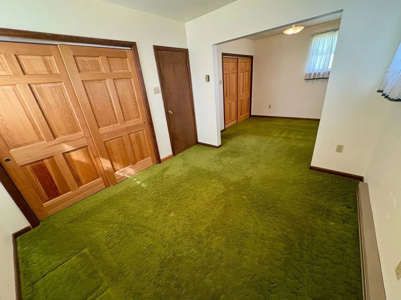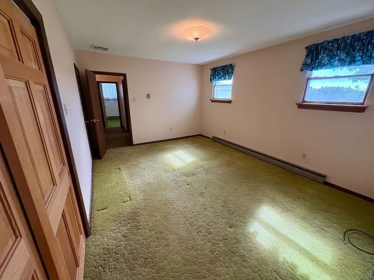 The main-floor master suite includes oversized closets, a full bath, and direct exterior access. The second bedroom was originally designed with the option to divide into two rooms, with a pre-planned hallway layout—making it easy to create extra sleeping space if desired.