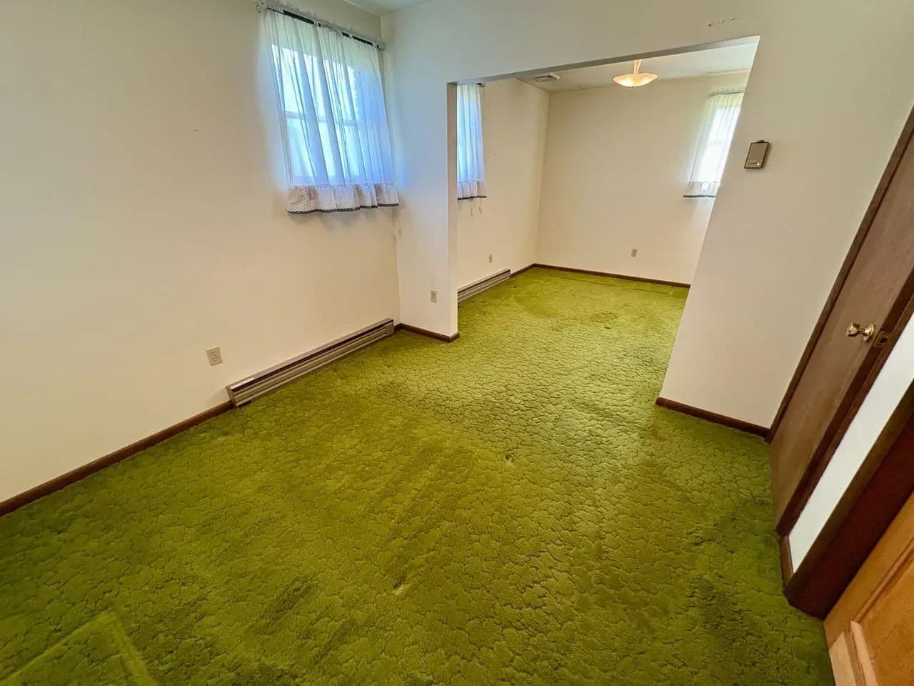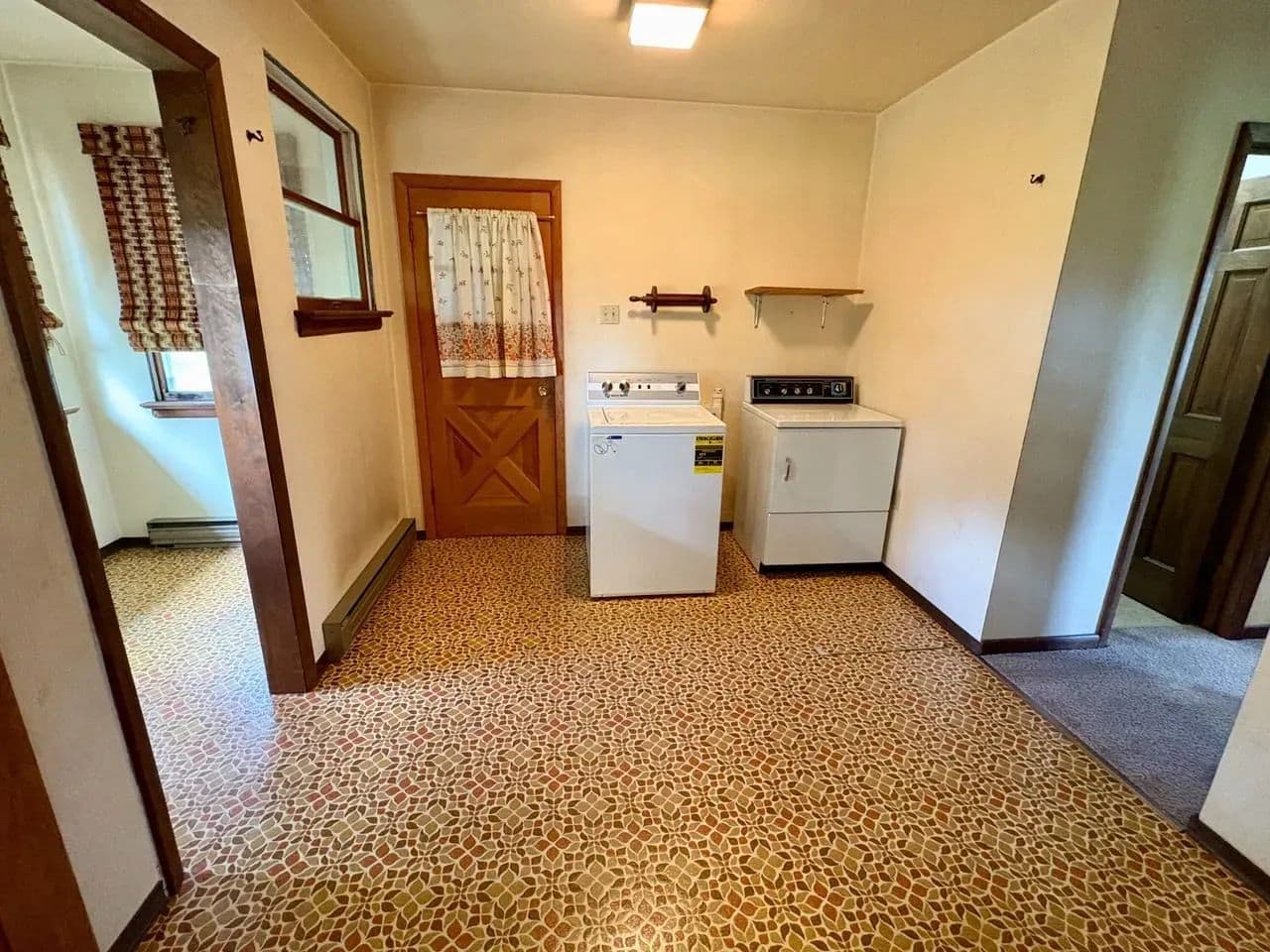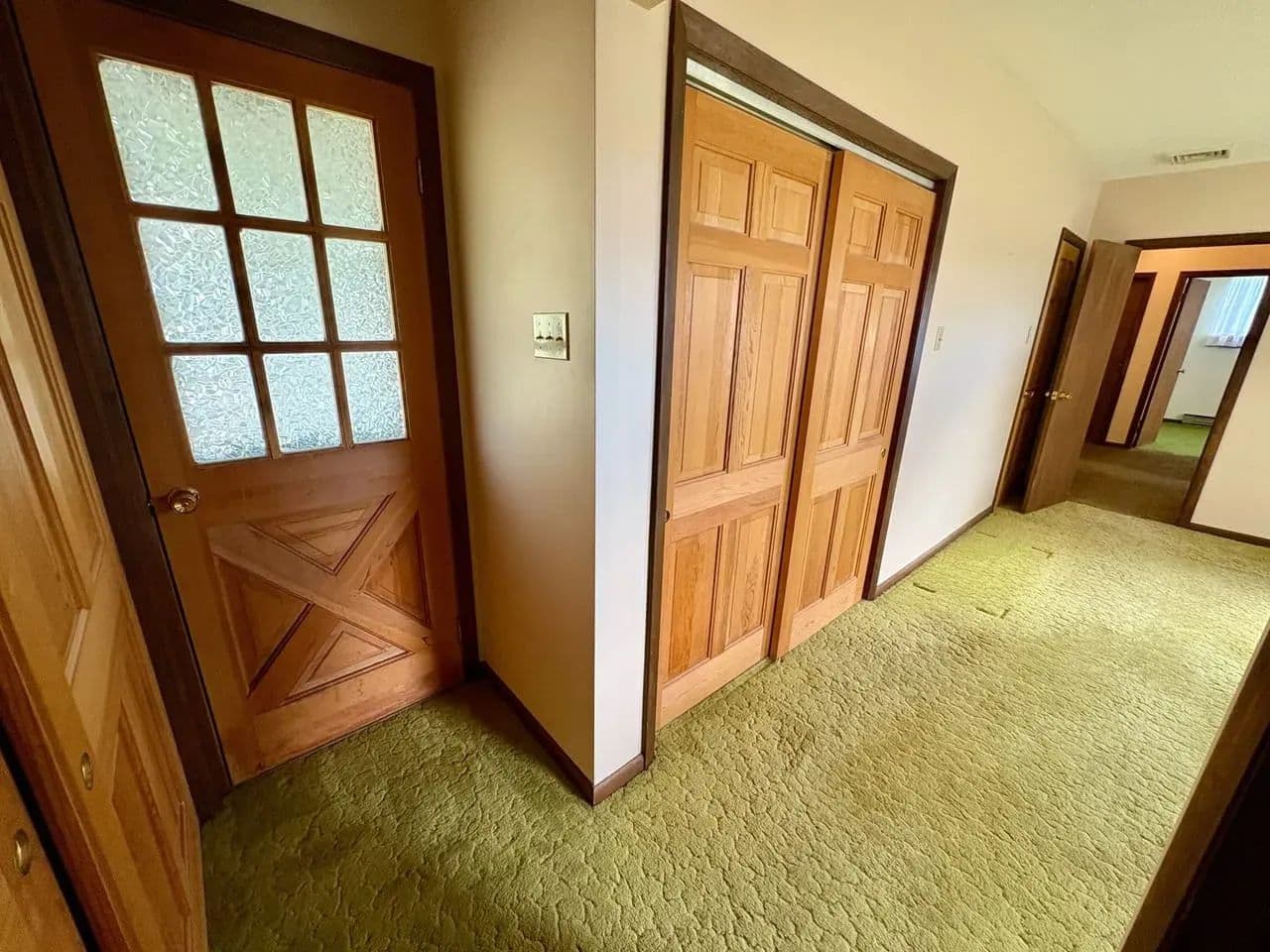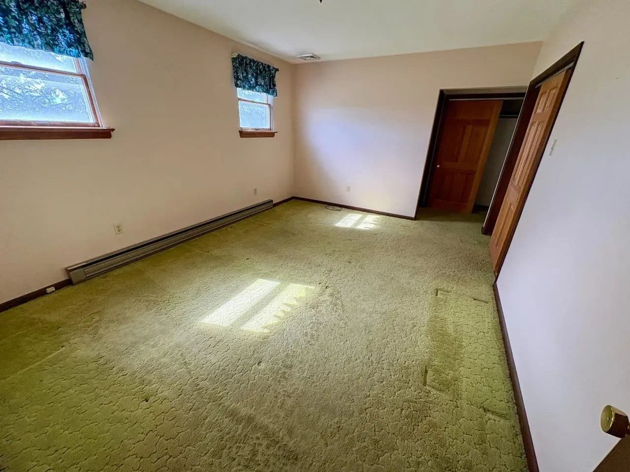 The main-floor master suite includes oversized closets, a full bath, and direct exterior access. The second bedroom was originally designed with the option to divide into two rooms, with a pre-planned hallway layout—making it easy to create extra sleeping space if desired.