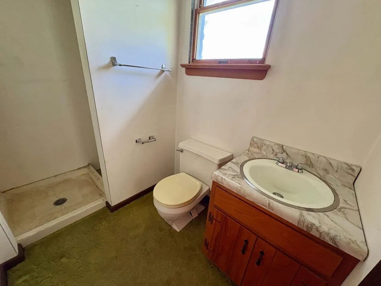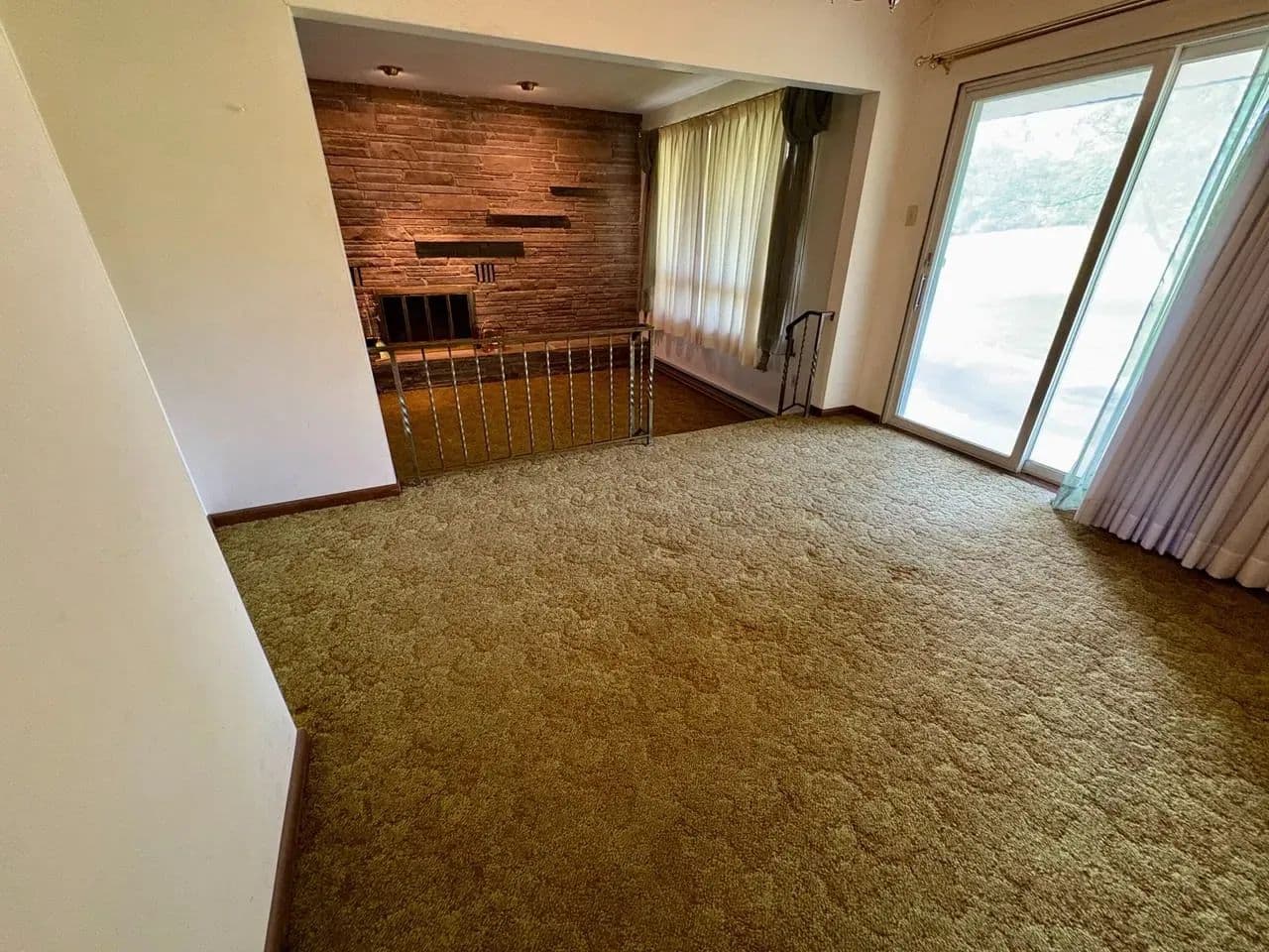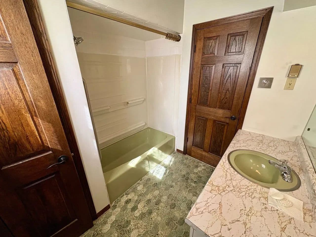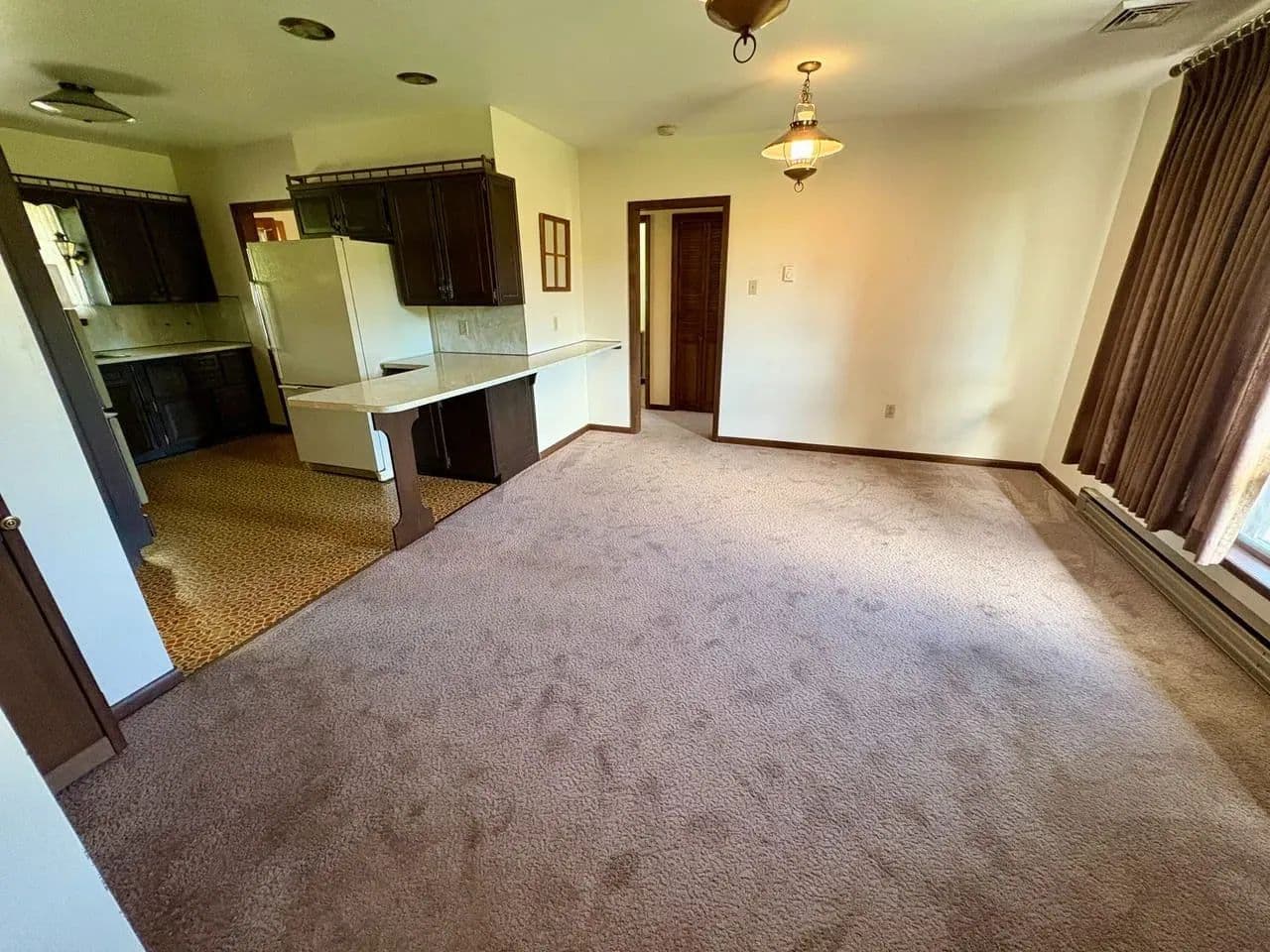 The main-floor master suite includes oversized closets, a full bath, and direct exterior access. The second bedroom was originally designed with the option to divide into two rooms, with a pre-planned hallway layout—making it easy to create extra sleeping space if desired.