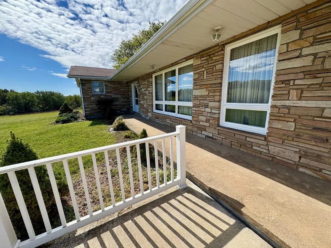 This stately fieldstone ranch rests on approximately 68 +/- acres of rolling pasture and hayfields, accented by wooded draws that provide natural cover for abundant wildlife. Whether it’s the glow of sunrise or the warmth of sunset, the front porch offers a front-row seat to breathtaking views as deer and other wildlife graze nearby.