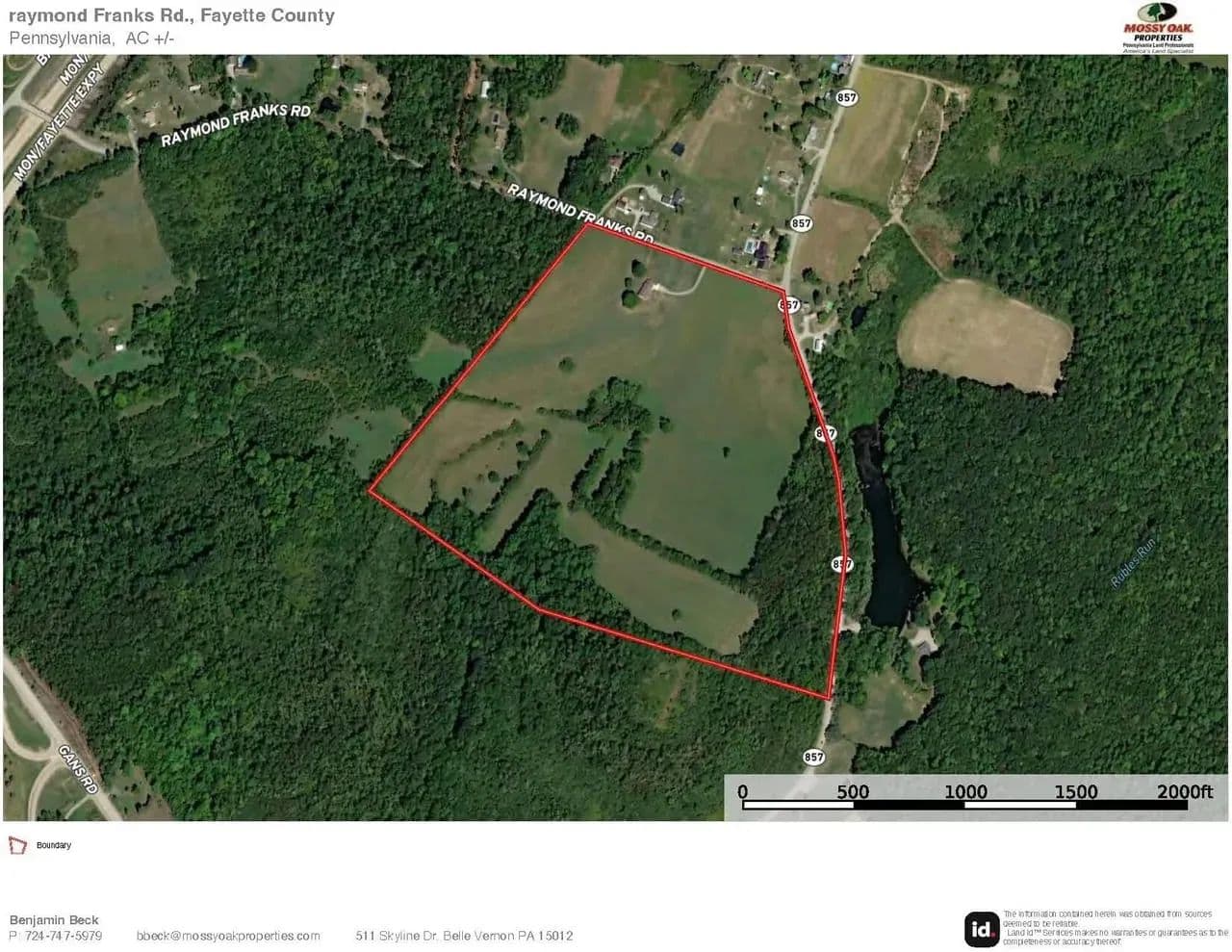 Perfectly situated at the corner of Route 857 and Raymond Franks Road, just minutes from Interstate 43 and Route 119, this property offers easy access to Uniontown, Morgantown, Pittsburgh, and beyond. Combining convenience with privacy, it features sweeping vistas of open fields and wooded draws, creating a truly one-of-a-kind setting—ideal for a private residence, country retreat, or recreational homestead. Mineral Rights are reserved by the seller.