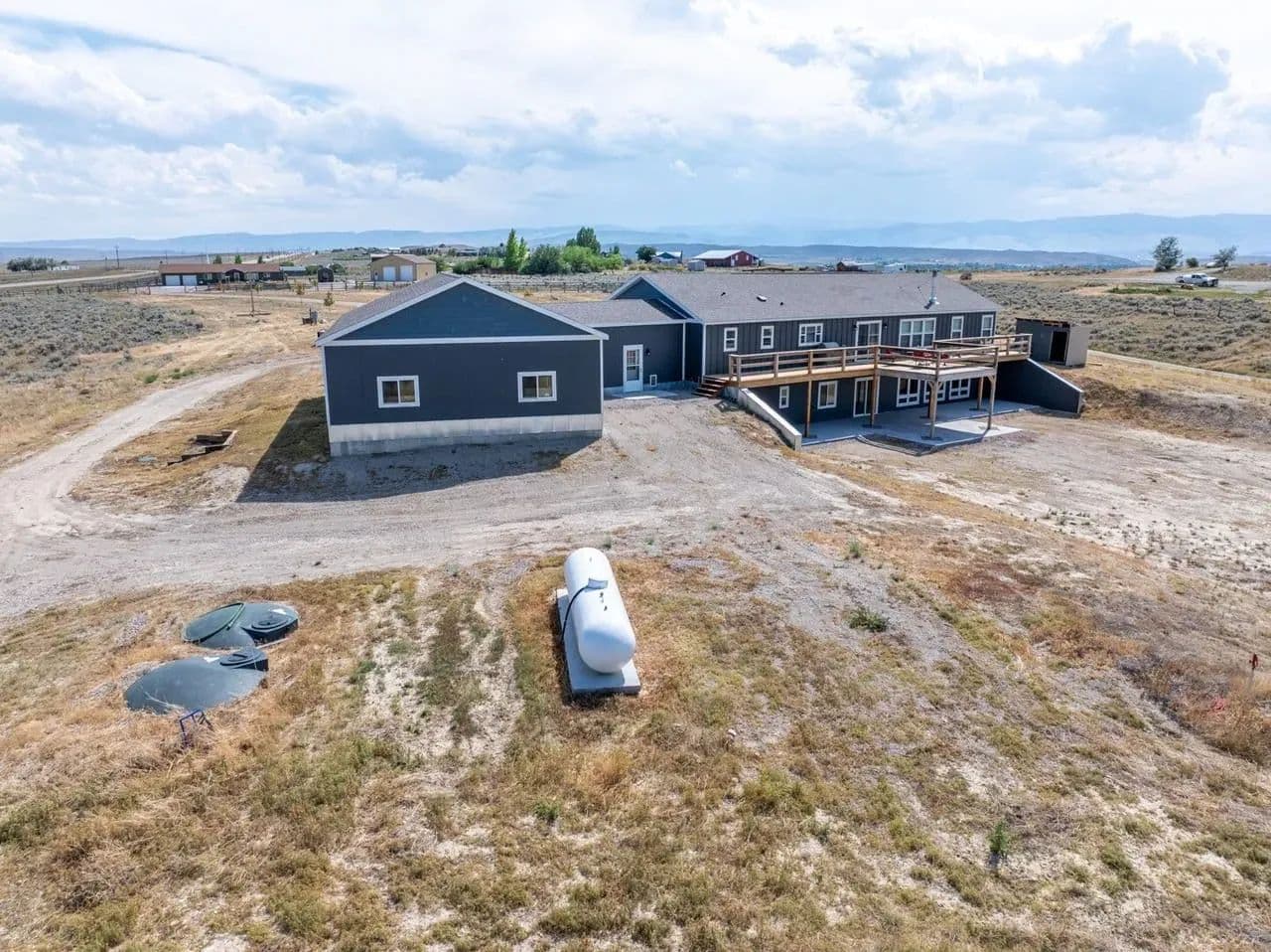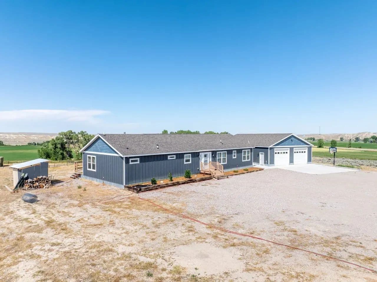 Situated between Riverton and Lander in Fremont County, Wyoming, this 4,560 sq. ft. modular ranch home sits on 5.64 acres and was constructed in 2020. The property offers rural living with the conveniences of town just minutes away. The main level features 3 bedrooms and 2 full baths. The kitchen, dining, and living areas are open and ideal for entertaining. The owner’s suite includes a spacious bedroom, large tiled shower, dressing area, and walk-in closet. Additional amenities include a dedicated home office, large pantry, and laundry area. A rear deck provides great outdoor space overlooking the neighboring pastures and bluffs. The full basement is framed for two additional bedrooms and a full bath, offering ample space for future living or storage. The attached 30' x 50' garage provides abundant vehicle and equipment storage. The land is partially fenced—ideal for a small pasture or additional buildings. An adjoining 4-acre parcel is also available for purchase. Located in the heart of Wyoming’s Wind River Valley, this property is within easy reach of the Shoshone and Bridger-Teton National Forests, the Wind River Mountains, and just over two hours from Yellowstone National Park. Outdoor recreation, hunting, and fishing opportunities abound in every direction, making this a prime location for those seeking both comfort and adventure in the Cowboy State.