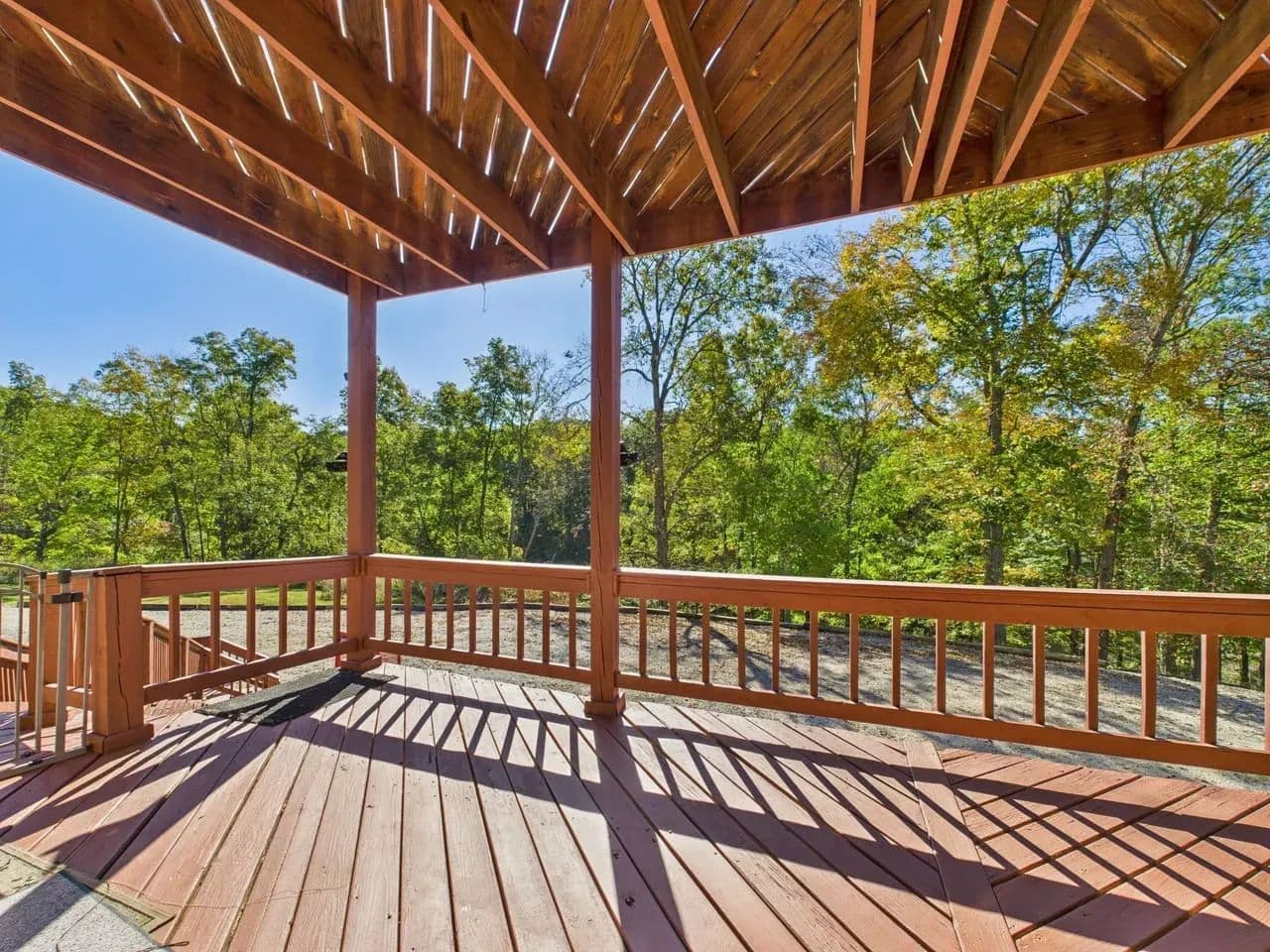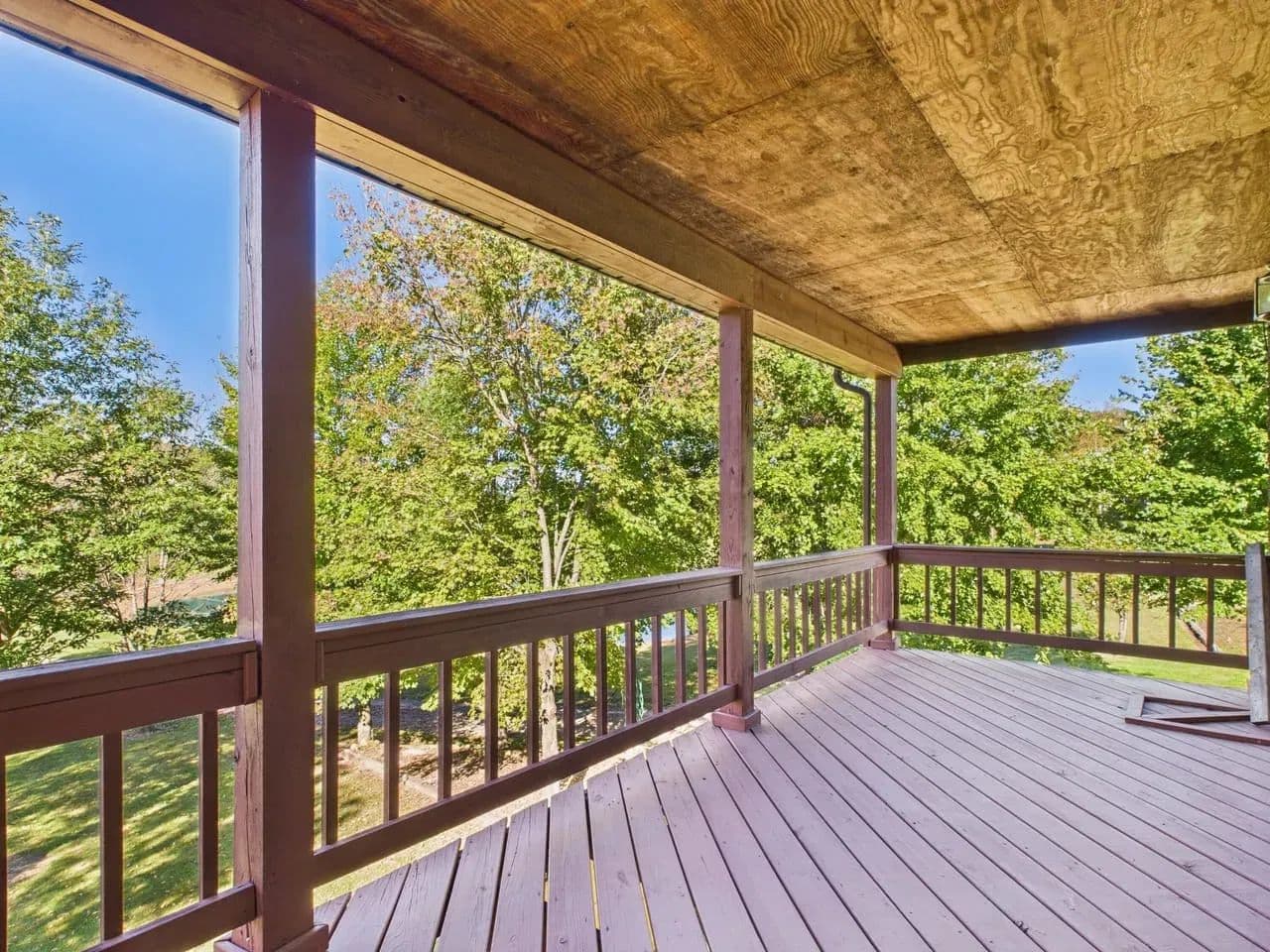 Large decks overlooking the property, including stunning views of the pond from the master bedroom, kitchen, front porch, and upstairs above the front porch