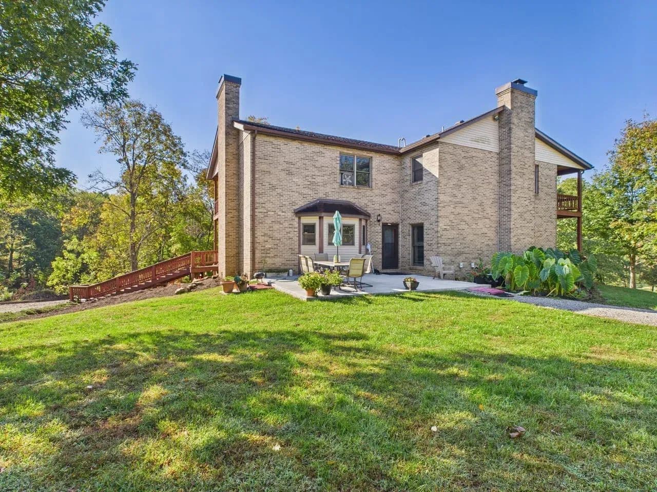 Concrete patio with direct views of the pond, enhancing outdoor enjoyment