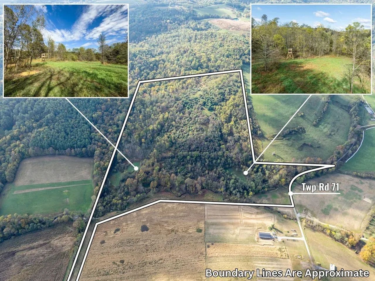This mostly wooded 62.8-acre property provides excellent wildlife habitat along with great potential as an investment or weekend retreat. The land features two food plots, each with a new box blind already in place. A small creek winds through the property, and a well-established ATV trail system offers access to the majority of the land. Some timber was recently select cut, providing improved wildlife habitat and allowing for future timber growth. Coshocton County is well known for its outstanding deer and turkey hunting, and this property is no exception. The land has frontage on both County Road 436 and Township Road 71 and consists of two parcels being sold together. Conveniently located near US-16, Dresden, and Coshocton, the property also offers several building sites—ideal for a future cabin or country home. Electric service is available at the road, and any mineral rights owned by the sellers will transfer with the sale. An additional 41 contiguous acres are also available for purchase, offering the opportunity to own over 103 acres in total.