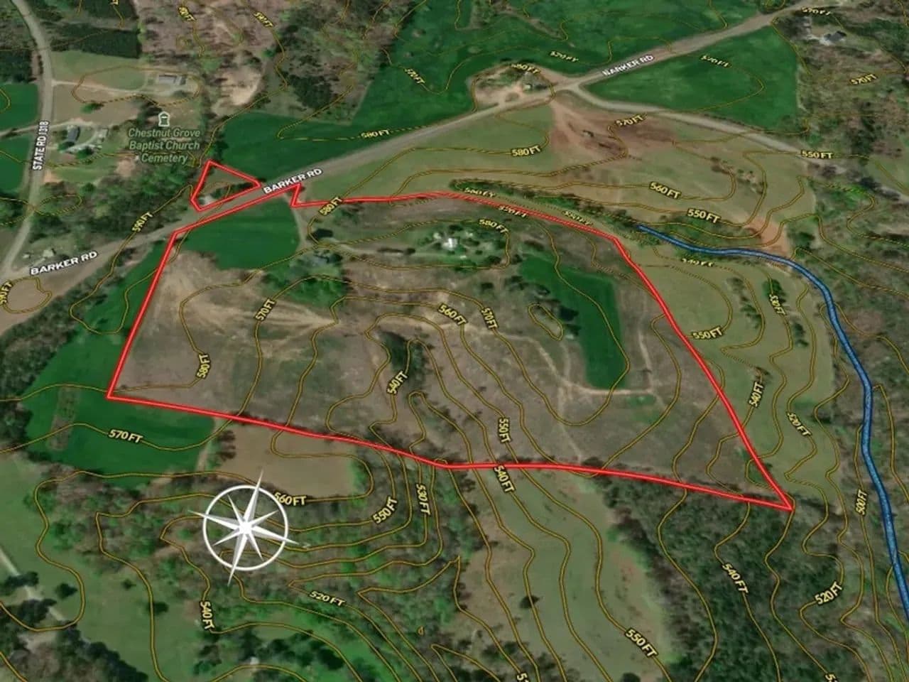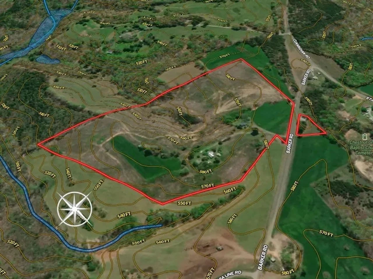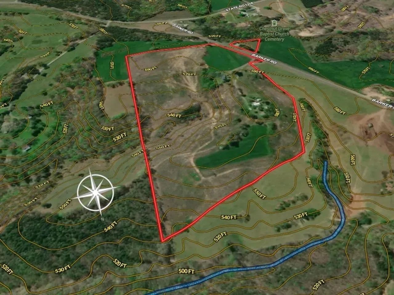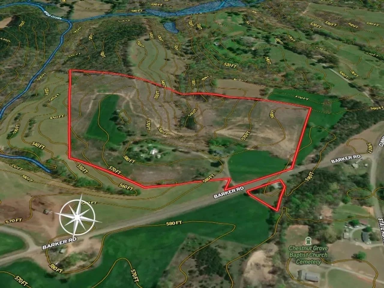 This property has many different uses that include single or multiple homesteads, mini-farm, hunting retreat or a combination of all of these! Several years ago, on the east side of Barker Road, there were two homes on the property. Both have been removed, but their electrical service, wells and septic systems remain. These amenities could save you valuable time and thousands of dollars in improvement costs. On the west side of Barker Road, you’ll find an older building that is empty and could be renovated and used for storage, workshop or perhaps a hunting base camp. It too has electrical service available and septic system.