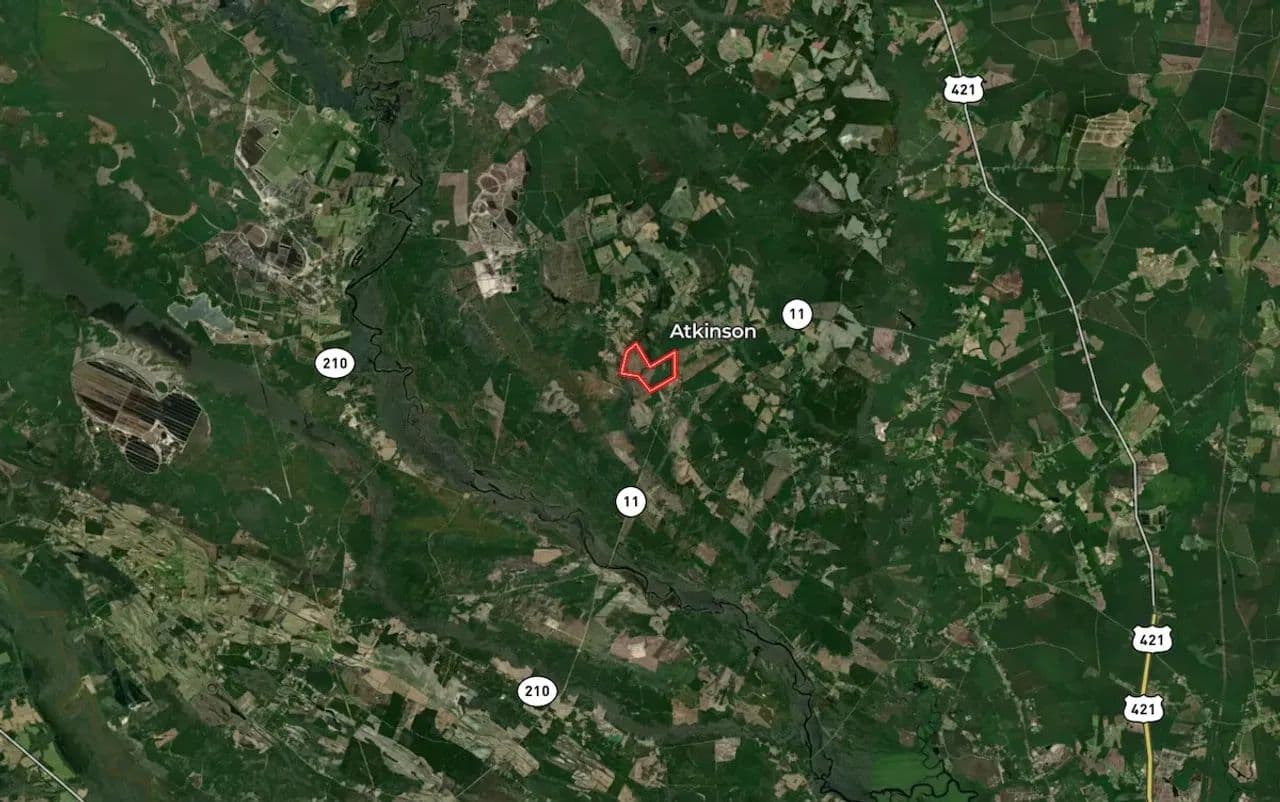 This tract sits just outside Atkinson, in a region that balances rural quiet with access to services. Atkinson itself is a small town in Pender County. The property offers a country living feel while being within reasonable reach of larger urban centers: Wilmington is about 30 miles away, Raleigh about 90 miles, and Durham about 132 miles by road.