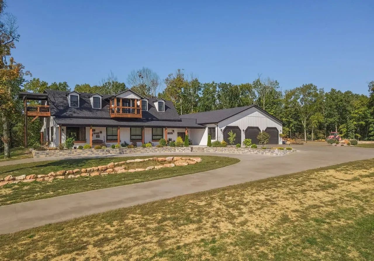 Welcome to 835 Monday Lane — an extraordinary estate where sophistication meets serenity. Set on 50 picturesque acres, this stunning residence offers the perfect blend of luxury, comfort, and endless potential. The home features 5 spacious bedrooms and 4.5 well-appointed baths, along with two full kitchens (one needs new owners' finishing touches on the cabinet choice) and two inviting living rooms, ideal for both entertaining and private relaxation. A three-car garage with capacity for up to ten vehicles provides ample space for car collectors or hobbyists, complemented by a dedicated man cave and workspace. The circle drive, anchored by a beautiful water feature awaiting your finishing touch, sets the tone for the elegance within. Inside, you’ll find a formal dining room perfect for hosting dinners, and a living room enhanced by a sleek electric fireplace for cozy evenings. Step outside to the expansive back patio, where a ready-to-finish wood-burning fireplace invites you to create your own outdoor sanctuary. Practicality meets peace of mind with a Generac backup generator ensuring uninterrupted comfort. From sunrise coffees on the front balcony to sunset gatherings on the patio, every corner of this estate embodies refined country living. 835 Monday Lane isn’t just a home — it’s a statement of lifestyle, waiting for its next visionary owner to complete the dream.