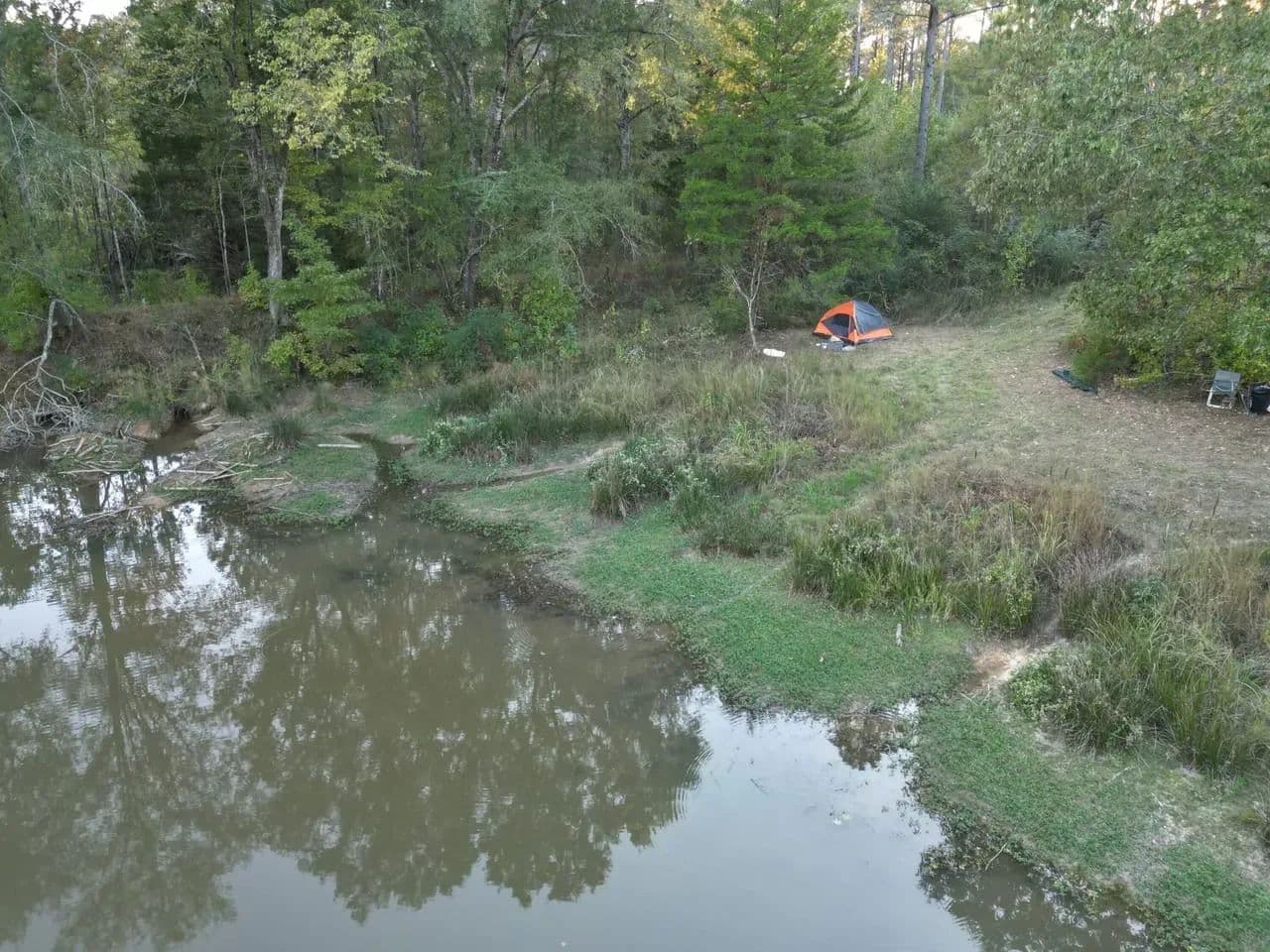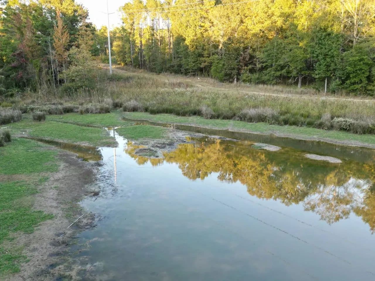 A beautiful potential cabin site overlooks a small pond that could easily be expanded. A transmission line runs north and south through the center, creating ideal wildlife corridors and multiple food plot locations.