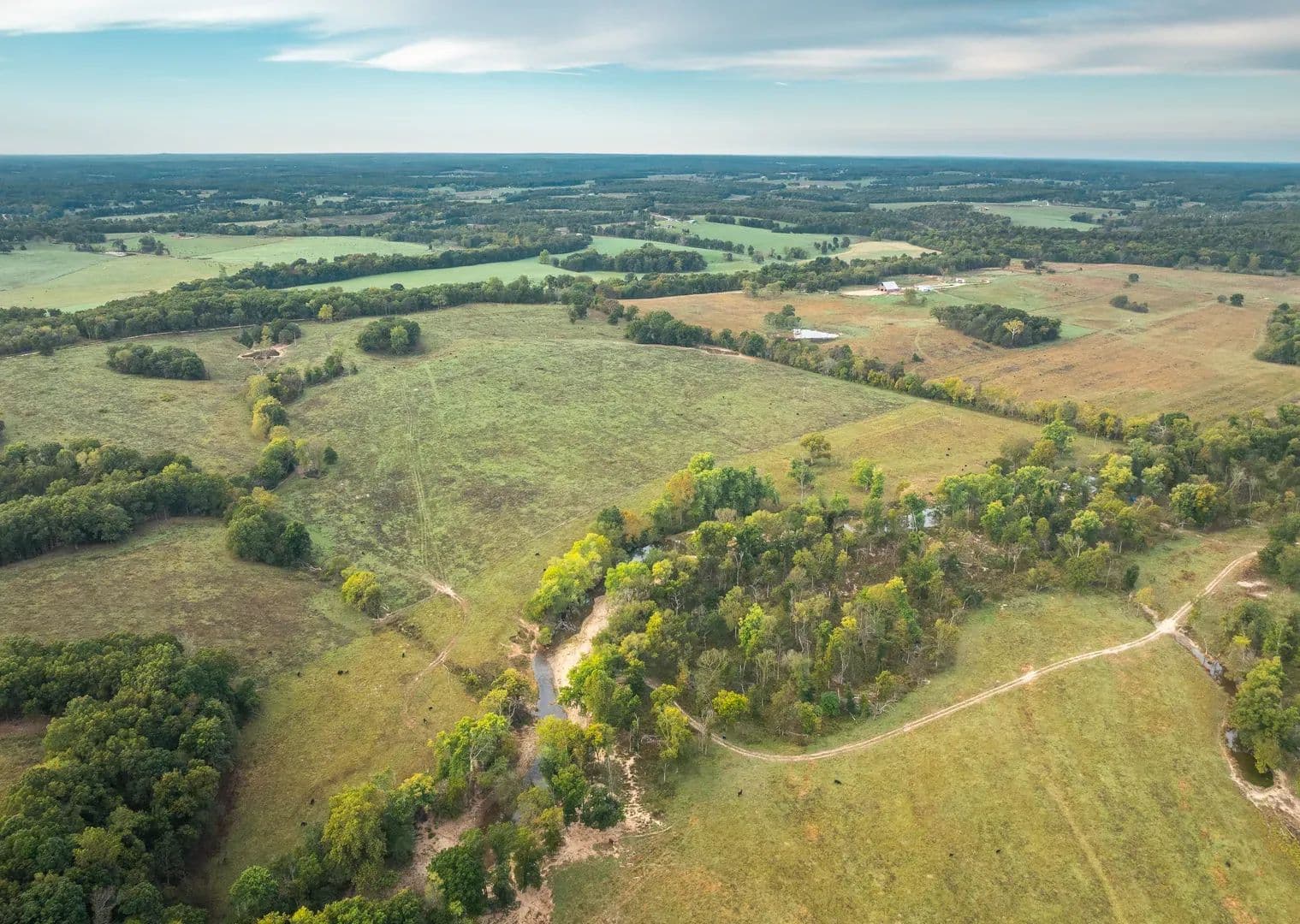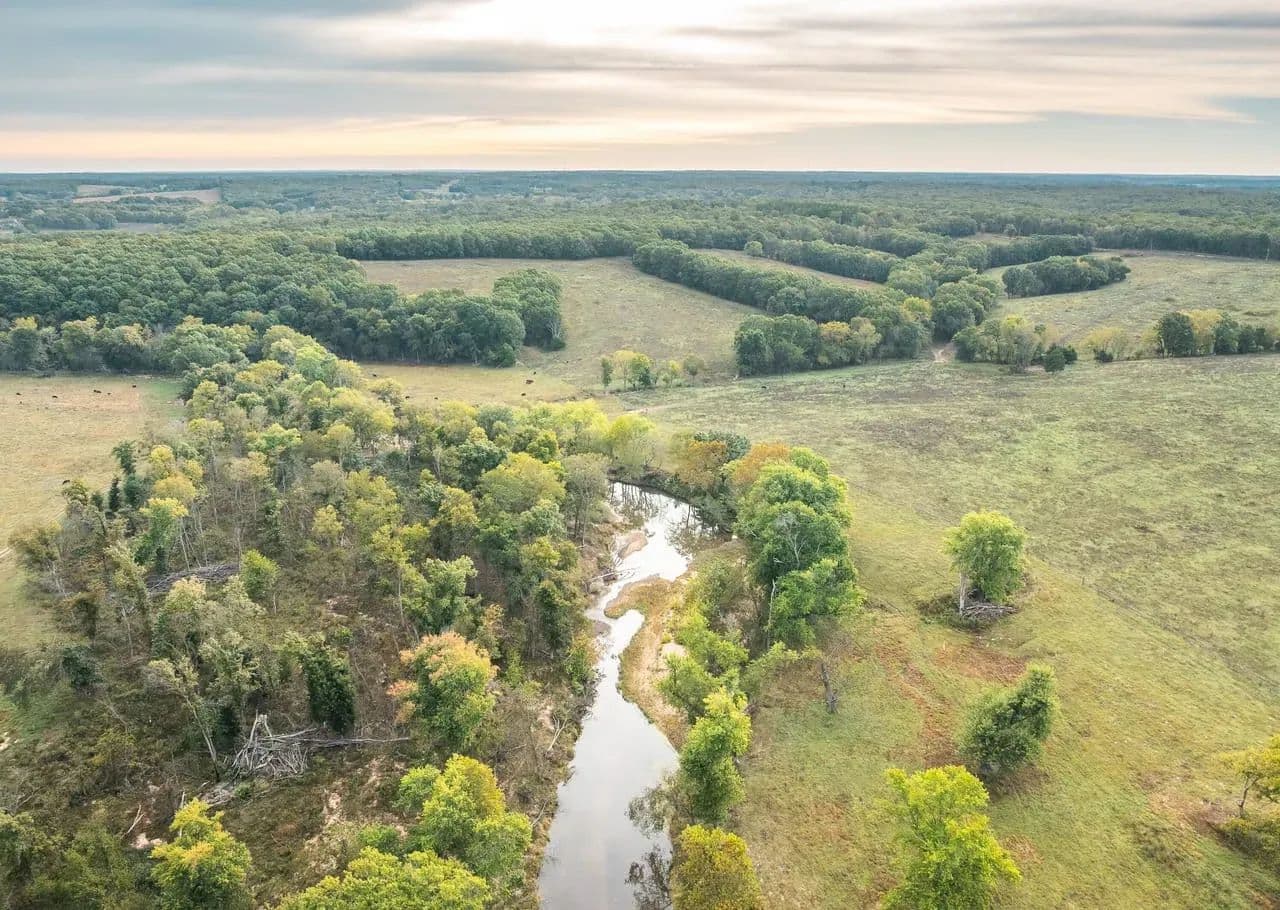 A 464-Acre Ozarks Retreat — A Rare Blend of Peace, Productivity, and Panoramic Views. As you drive onto this breathtaking 464-acre Ozarks farm, you’re immediately struck by a sense of awe this is not what you expect to find in the Ozarks. From the moment you pull in, you overlook 160 acres of rich, tillable bottomland that stretch out before you, framed by rolling pastures and wooded ridges. The property also includes 100 acres under pivot irrigation and about 80 acres of beautiful woods, with the balance in improved pasture and additional farmland. Running for nearly two miles along and through the property, The property also includes 100 acres under pivot irrigation and about 80 acres of beautiful woods, with the balance in improved pasture and additional farmland. Running for nearly two miles along and through the property, At the heart of the property stands a 5,700-square-foot custom home, perfectly positioned on a ridge overlooking the sweeping fields, ponds, and the broad creek valley below. Inside, a magnificent great room with a towering picture window captures the stunning views, Creekside woods, this extraordinary farm offers an unmatched combination of beauty, productivity, and comfort. The only thing missing is you, your family, and your friends.