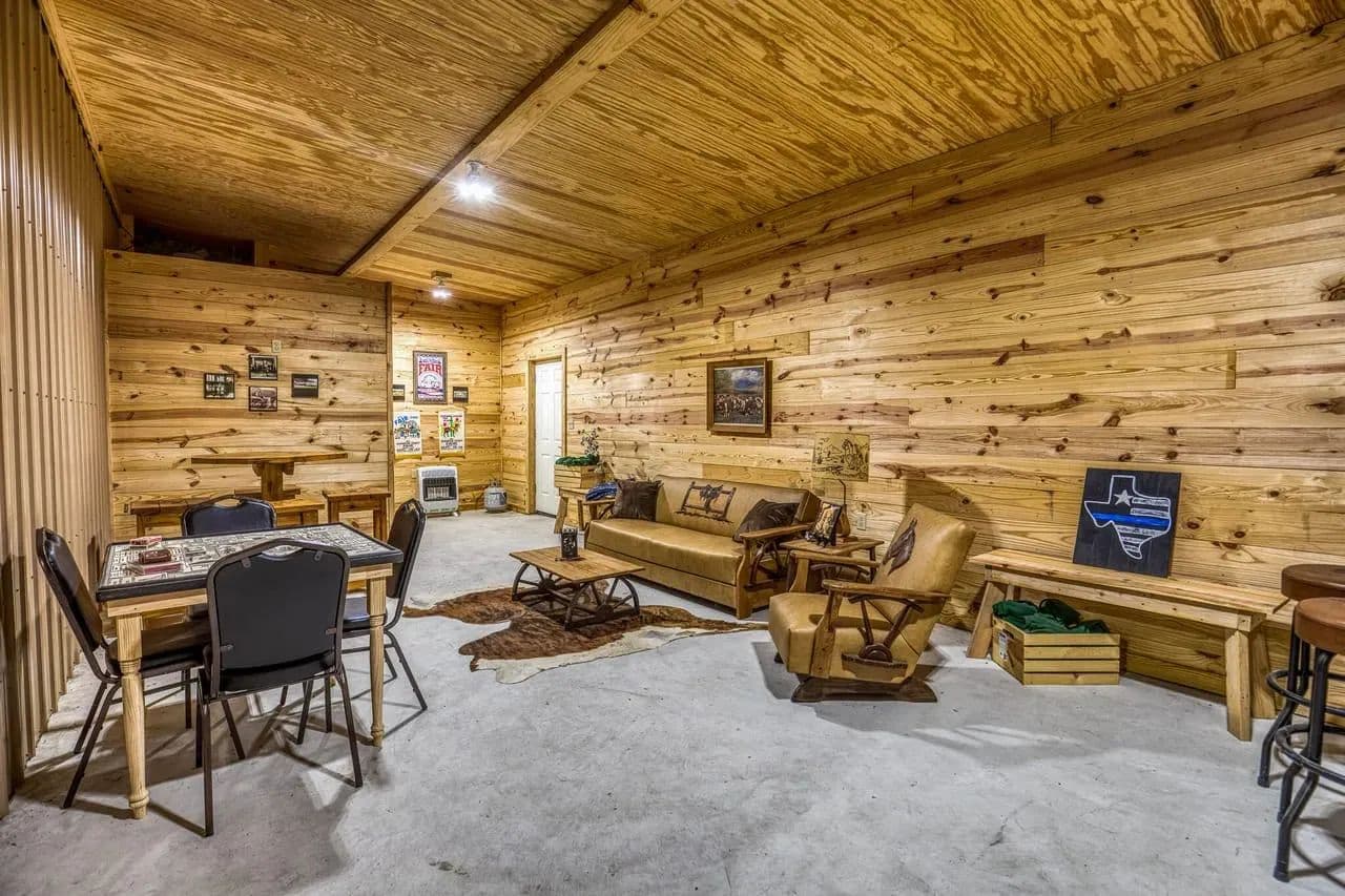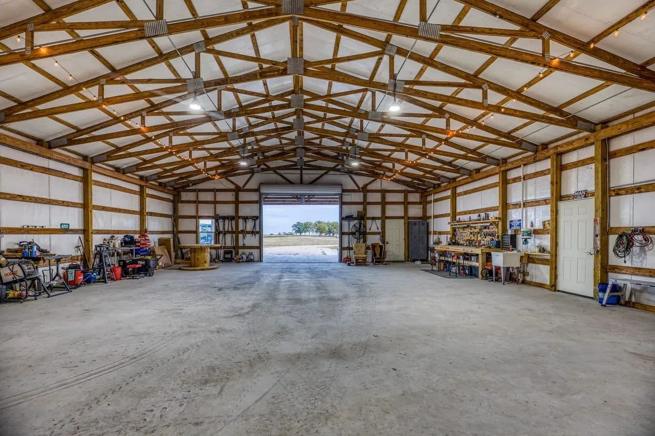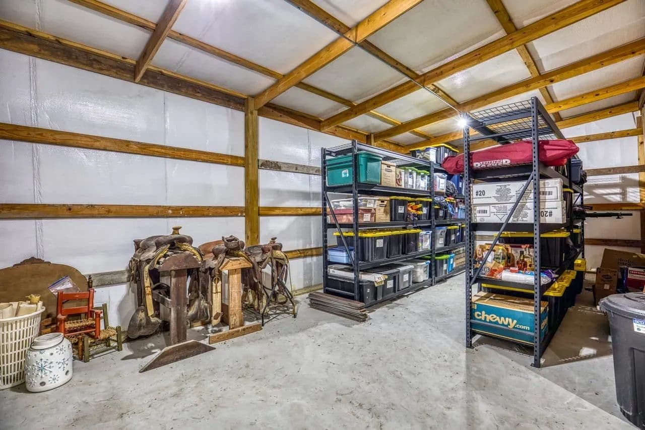 The barn is 80x54 and fully insulated. Attached to the barn is a man-cave with bathroom, another large, enclosed storage area and multiple lean-tos off the barn adding additional cover.