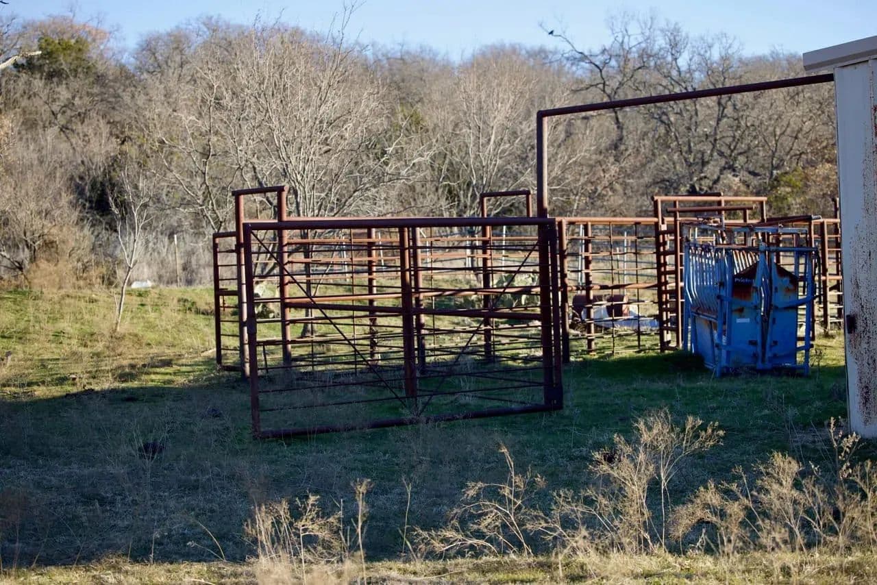 Small working pens and a shed for cattle operations.