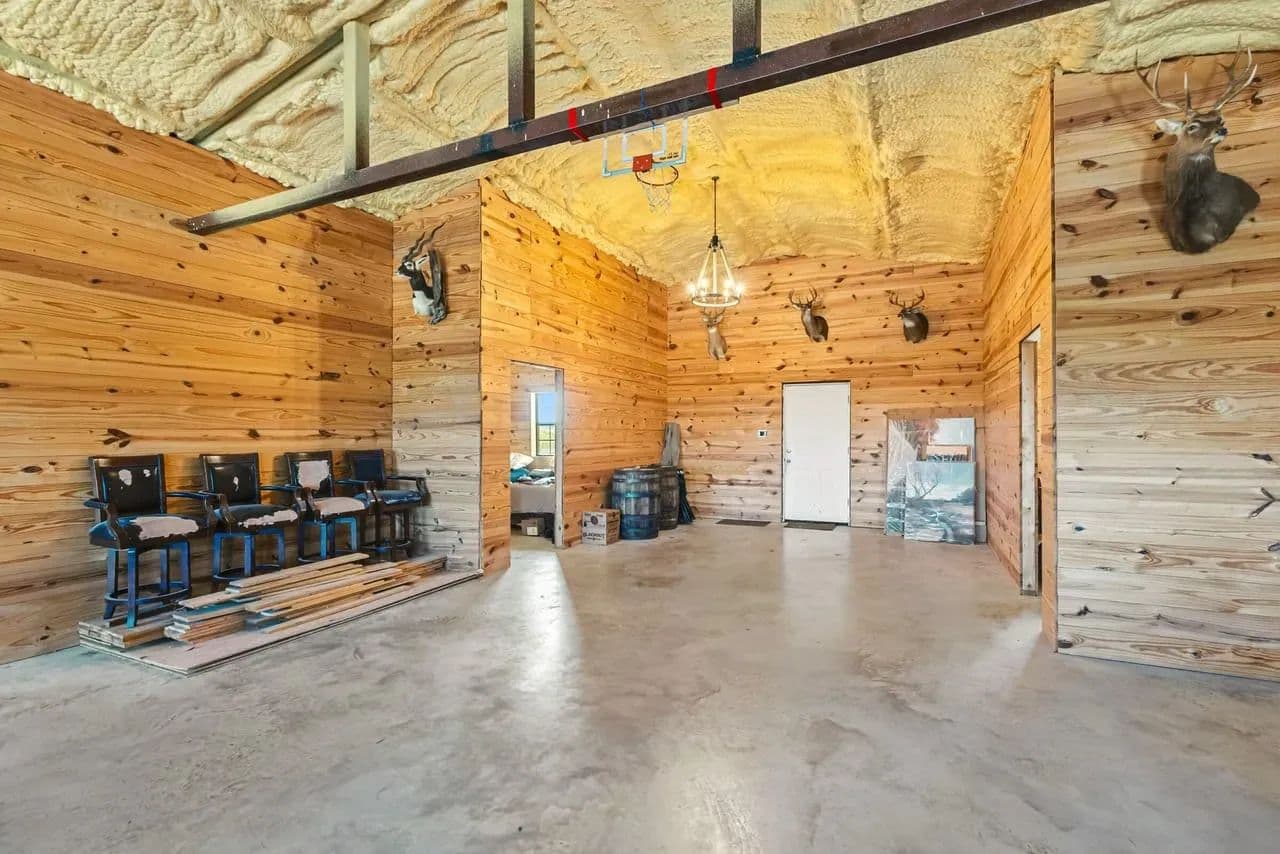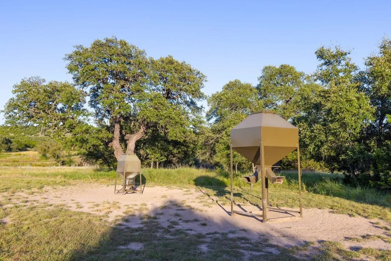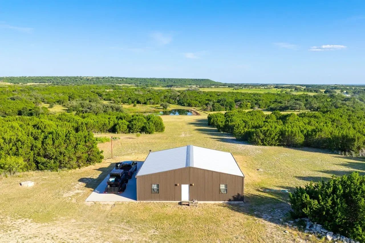Improvements: A 40x40 barndominium sits at the front of the property that overlooks some views of large hills and ridgelines. The barndominium is approximately 60% complete but fully functional as it stands. Designed to be a 2 bed, 2bath with open kitchen & living concept. There is ample room to build out a third bedroom or to add on. Slab foundation with metal beams and closed cell spray foam insulation. The slab was extended to the side of the barndo for future covered parking or to add on. The back porch slab was also extended for ample room for whatever you may want at 60'x40'. The property is fenced on 3 sides with rear fencing to be in excellent condition. 2 deer blinds, 2 feeders, and 2 protien feeders.