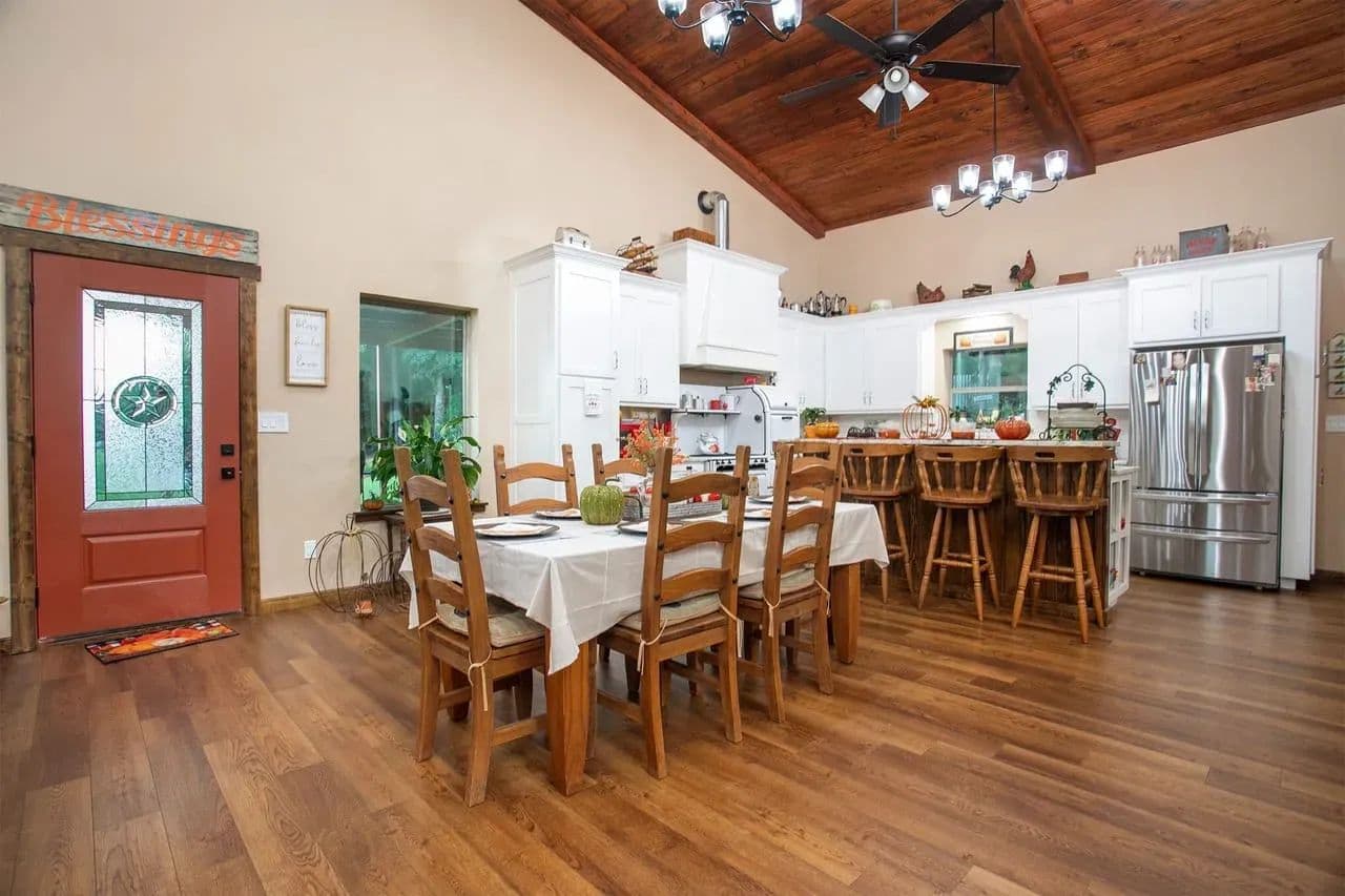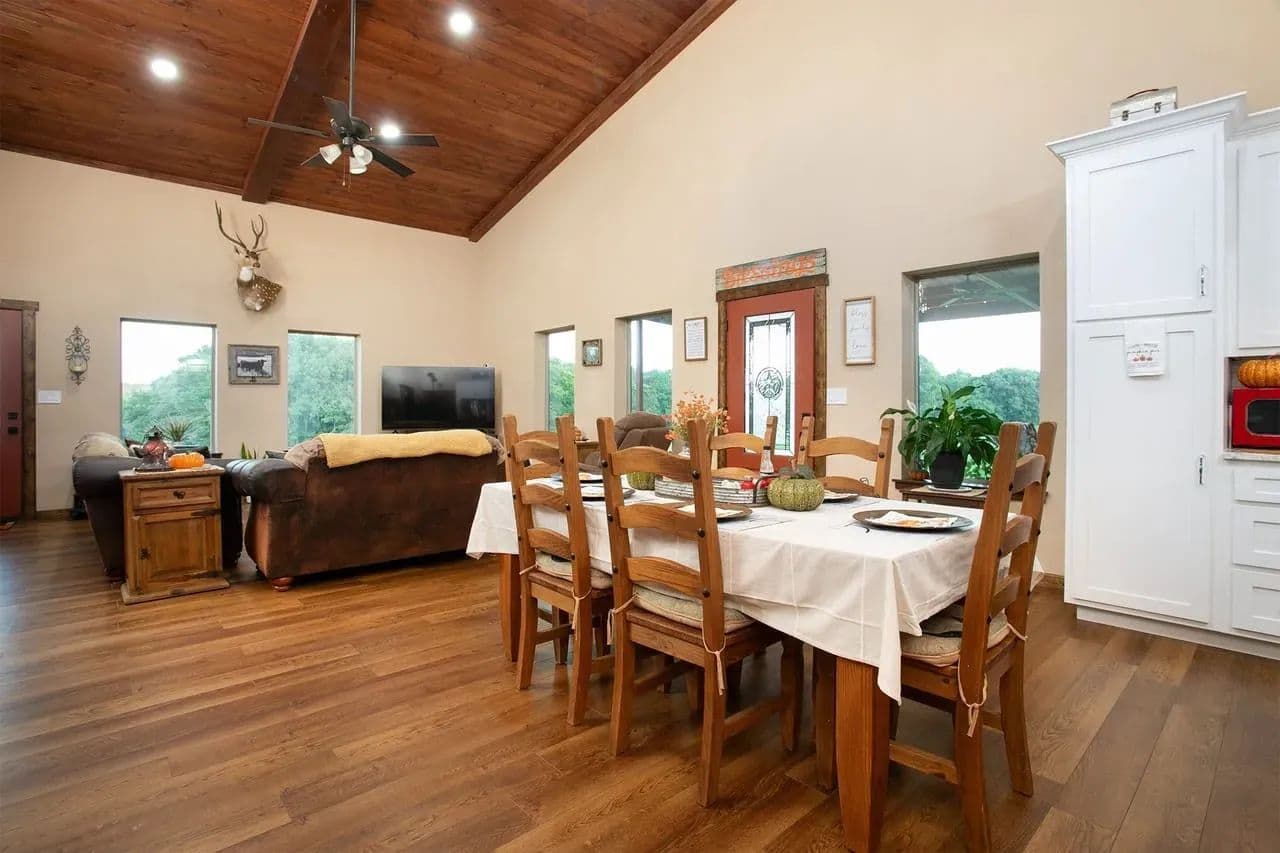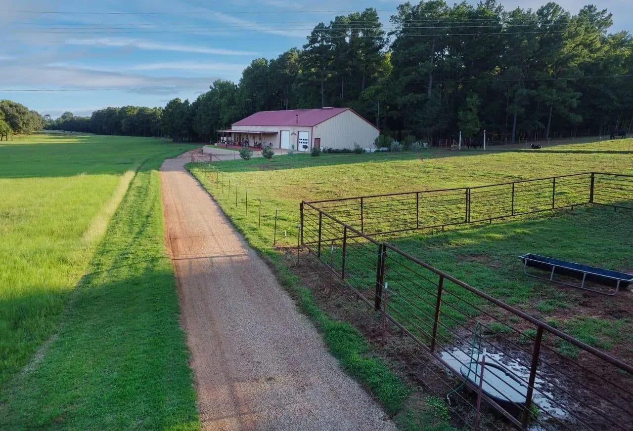 The Rockin’ D Ranch is one of the finest properties in Wood County, offering 55± acres built for a lifetime of fun, comfort, and adventure. Highlights include a newly finished 2,400 sq. ft. home (2023) with expansive front and back porches overlooking hay fields and woods, a 2,000 sq. ft. workshop with roll-up doors and attached mancave, 12± acres of coastal hay, a 3± acre food plot/garden, 39± acres of East Texas woods with trails to explore, and a stocked pond ready for fishing and relaxing.