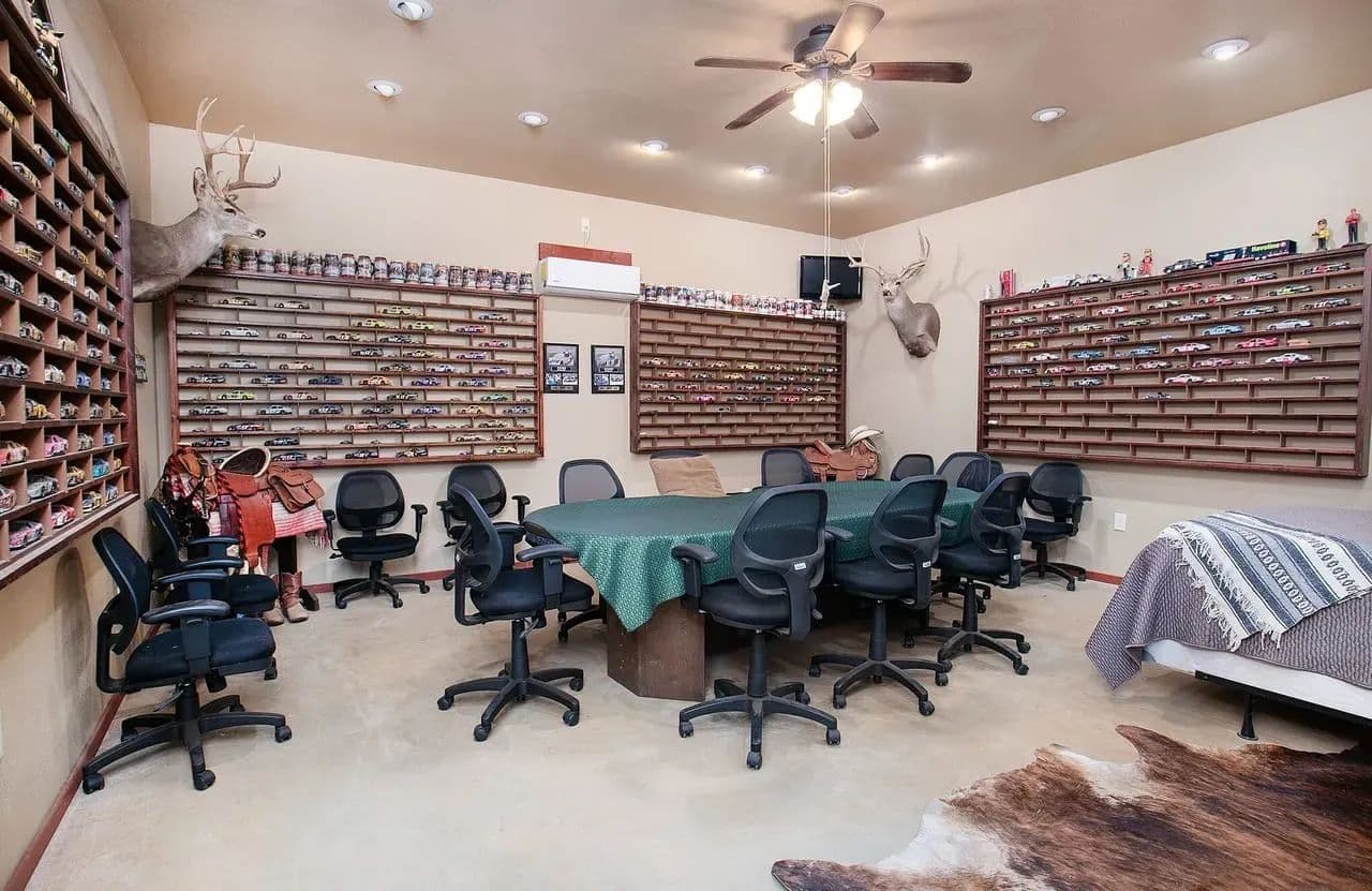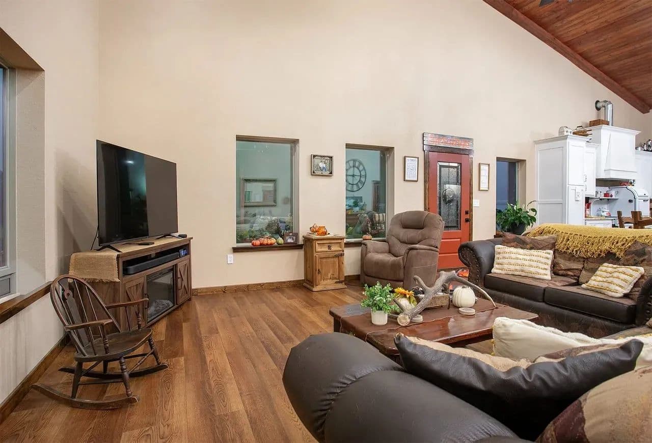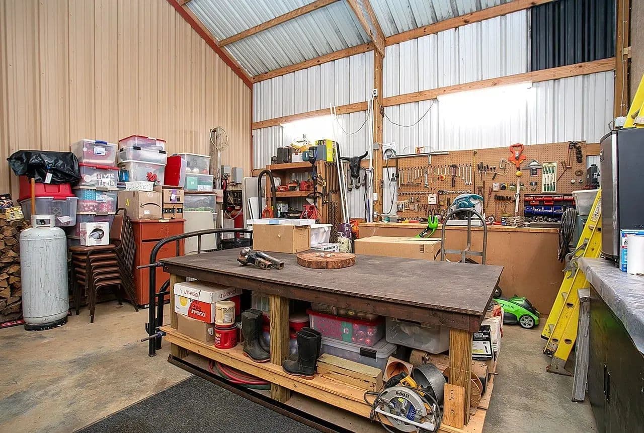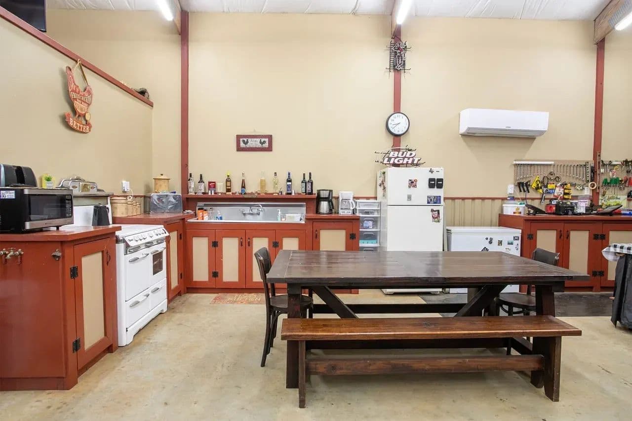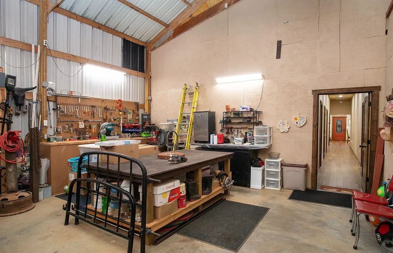 Workshop + Mancave: 2,000 sq. ft. insulated shop with concrete floors, roll-up doors, and power. Attached mancave provides the perfect spot for entertaining or relaxing.