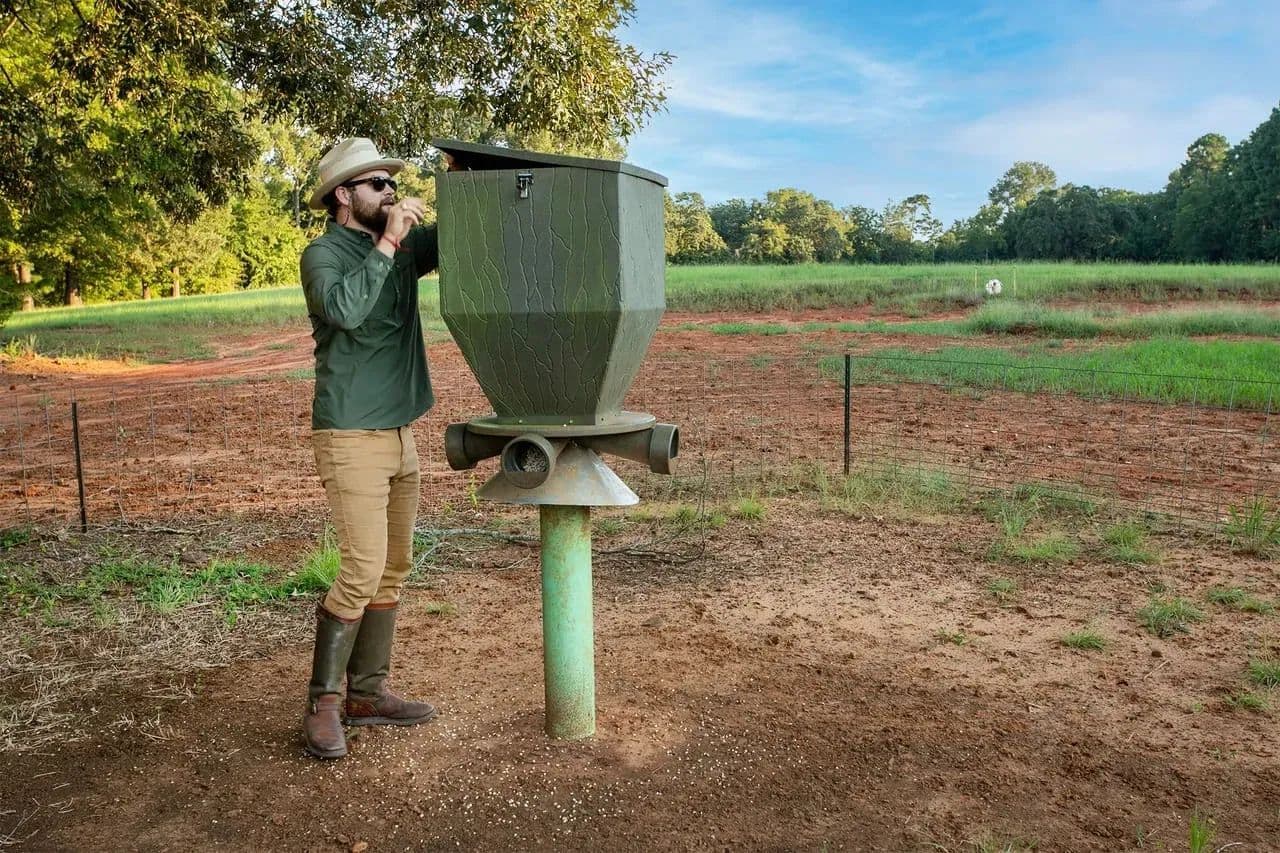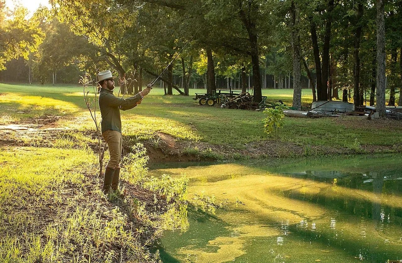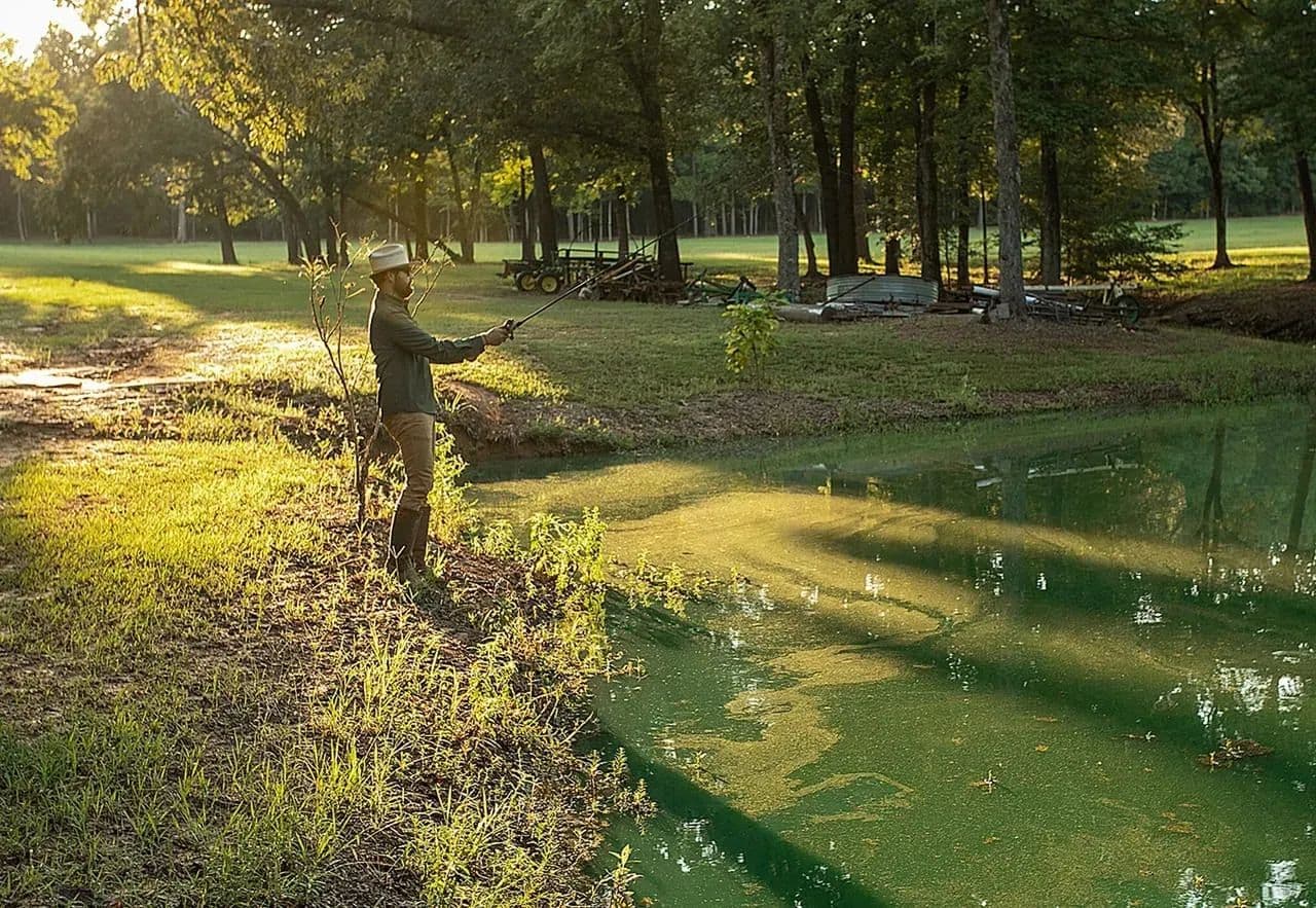 Stocked pond, tree-lined ATV trails, and multiple hunting blinds