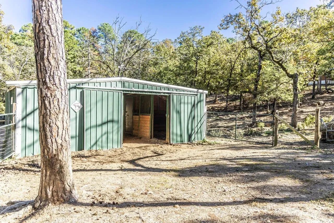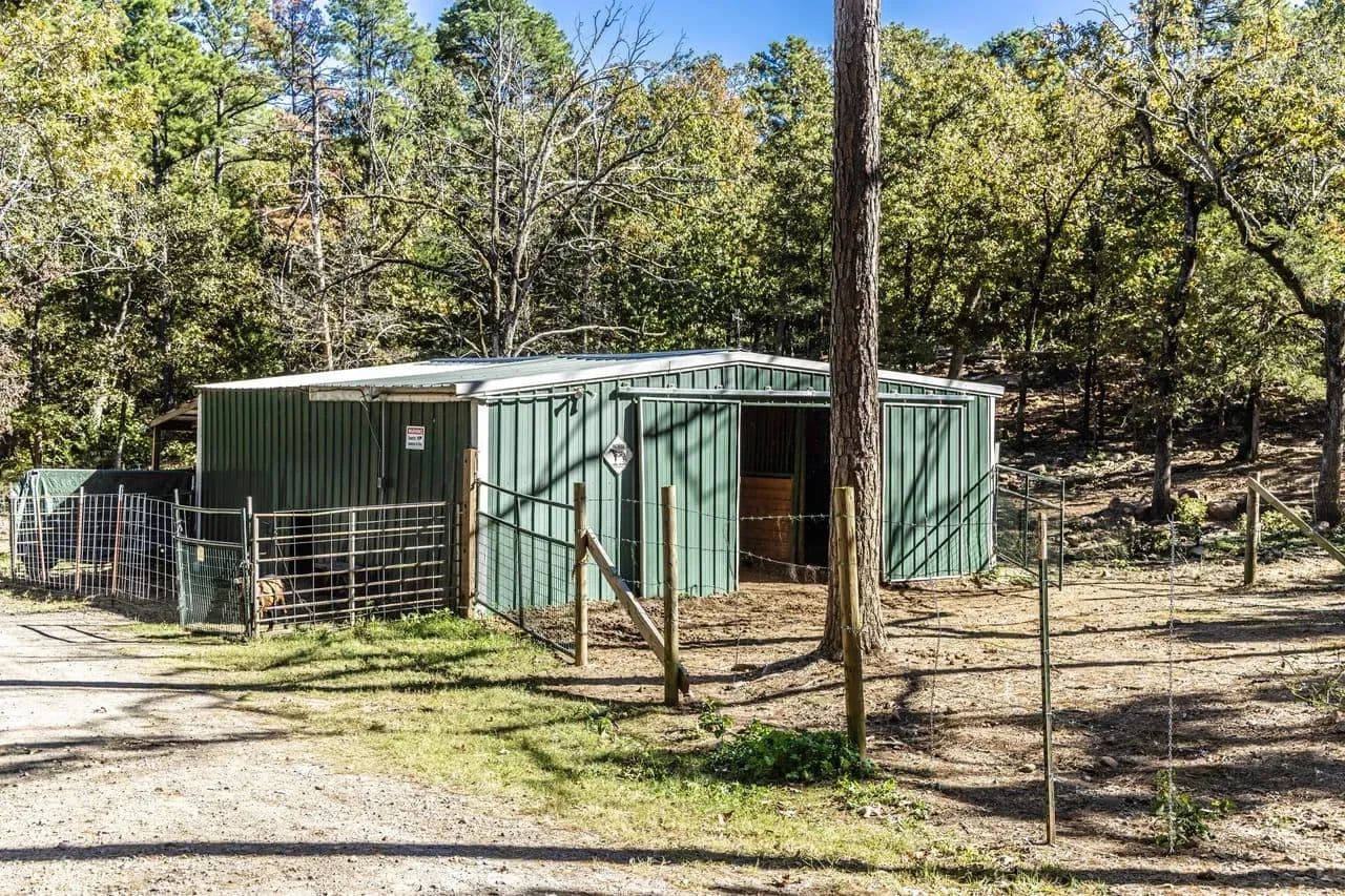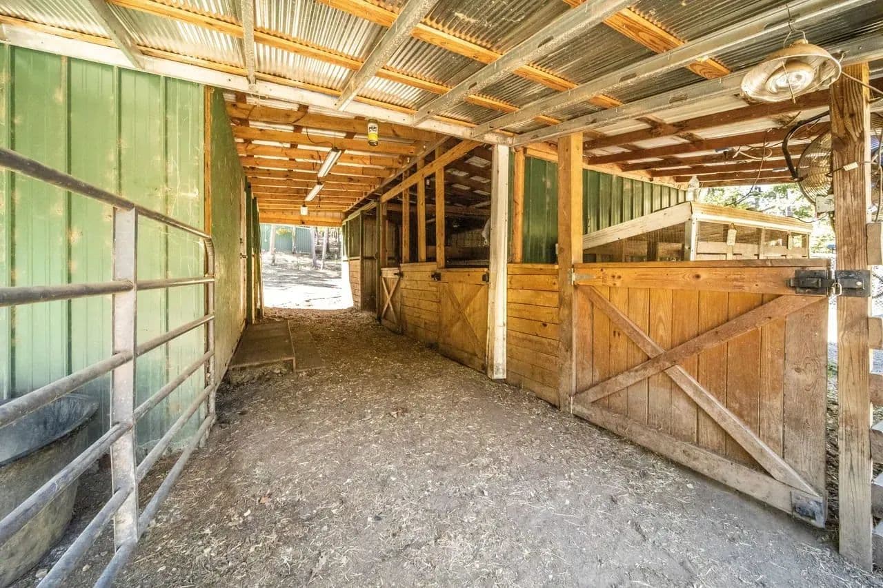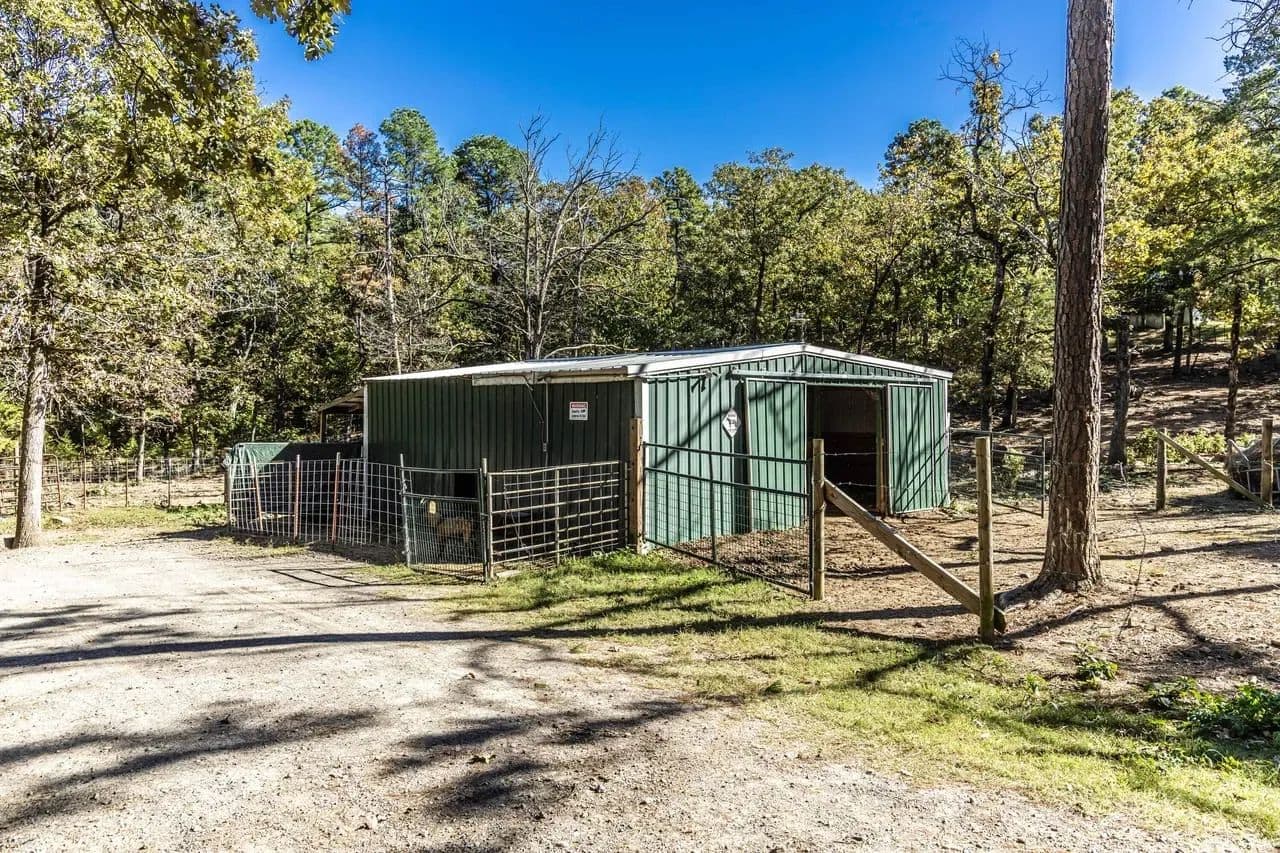 The property features multiple carports and garages, providing plenty of storage and workspace. A fully-powered workshop with 220V electricity is perfect for tinkering or hobbies. For animal lovers, there’s a horse barn and fenced areas with several large chain-link stalls, giving you lots of options for raising animals. For the plant lover, there is a green house ready to grow all your favorites.
