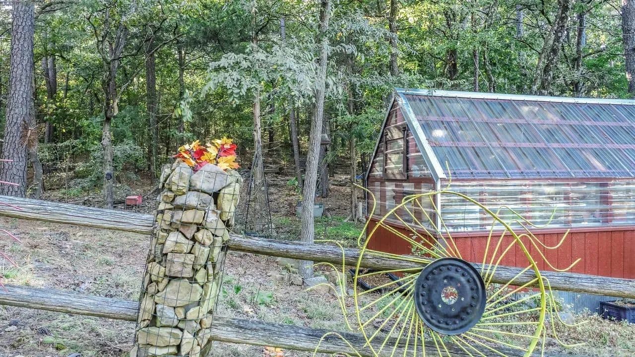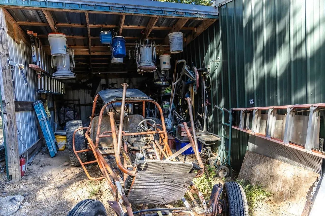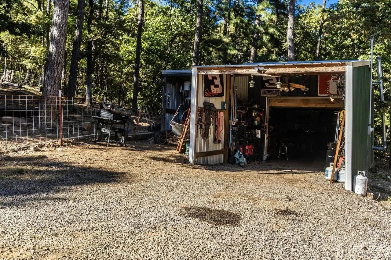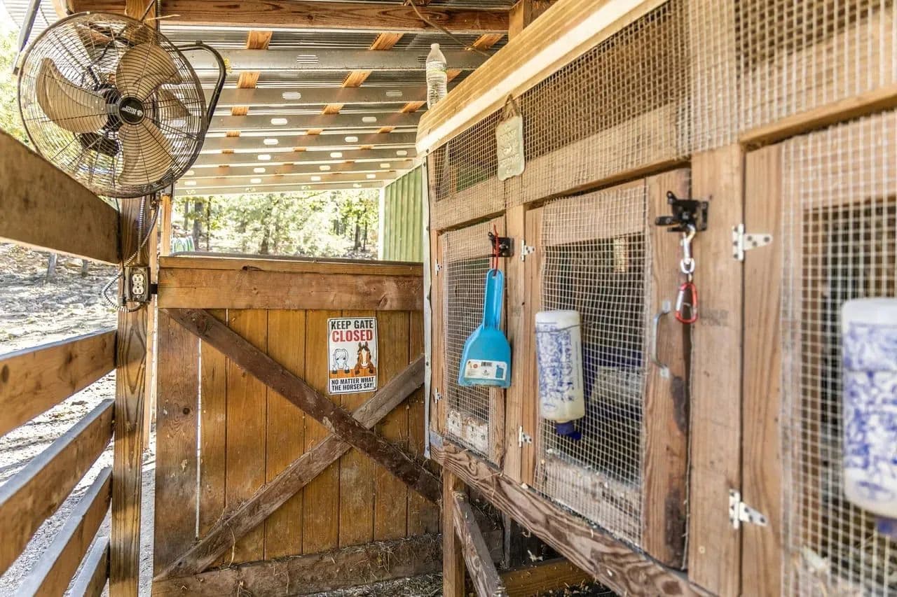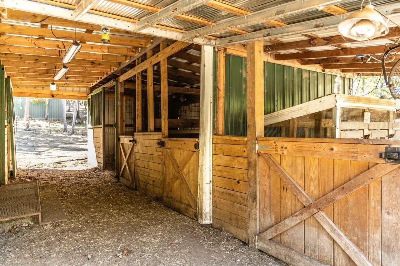The property features multiple carports and garages, providing plenty of storage and workspace. A fully-powered workshop with 220V electricity is perfect for tinkering or hobbies. For animal lovers, there’s a horse barn and fenced areas with several large chain-link stalls, giving you lots of options for raising animals. For the plant lover, there is a green house ready to grow all your favorites.