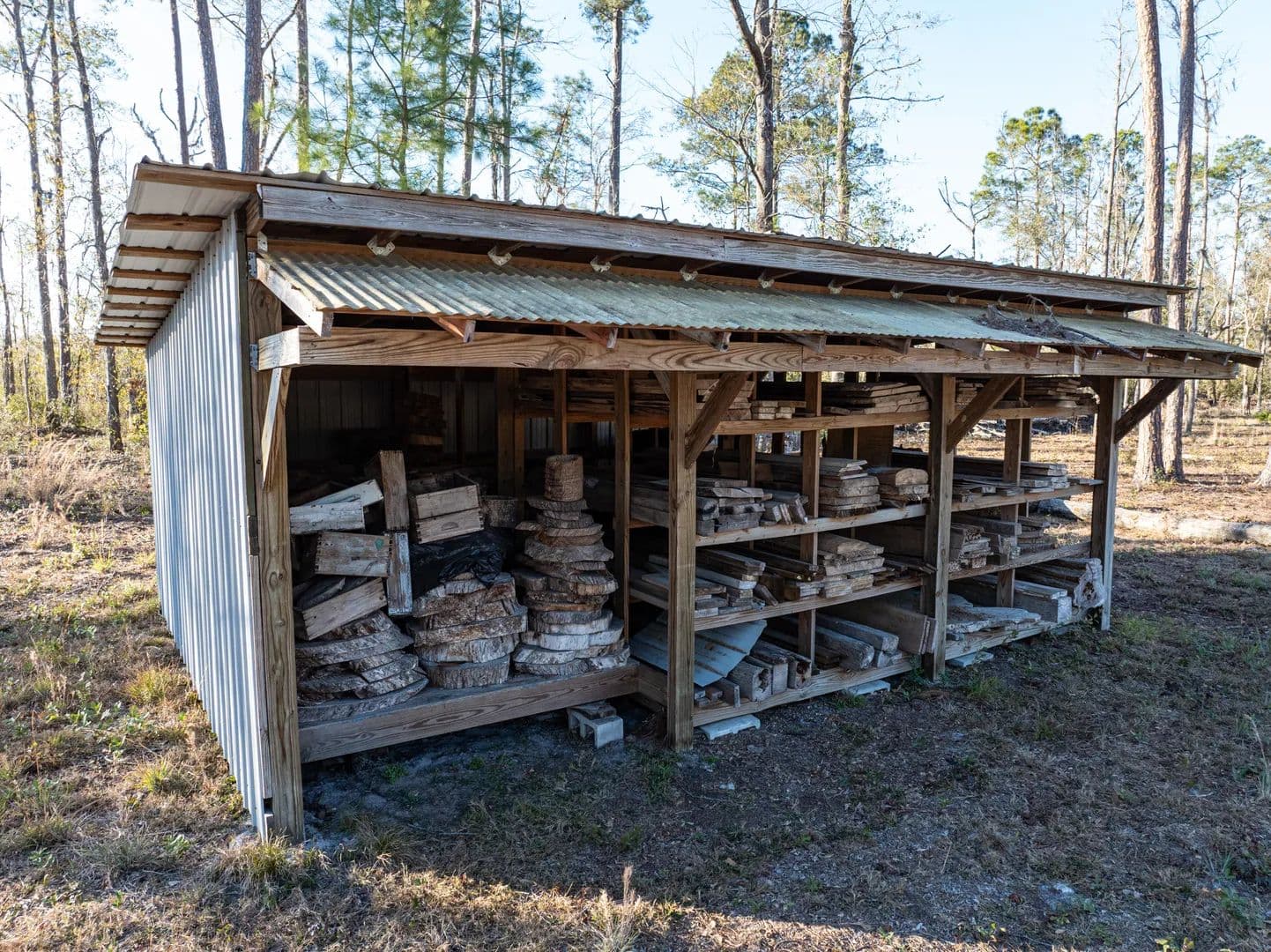 20.41 acres of peace, serenity and privacy is what this property offers. A home away from home or make it permanent. Brand new well, new driveway, and property is gated. RV hookup. Antique wood building overlooking pond with boardwalk. Approx. one acre of blueberries. Need outside storage view the unique exterior wine cellar/storm shelter. 28X60 metal building with two closed in spaces. Finished "office/living space". Lots of love care makes this property easy to want to be living there. Property may be sold with 45 acres. See MLS 125658.
