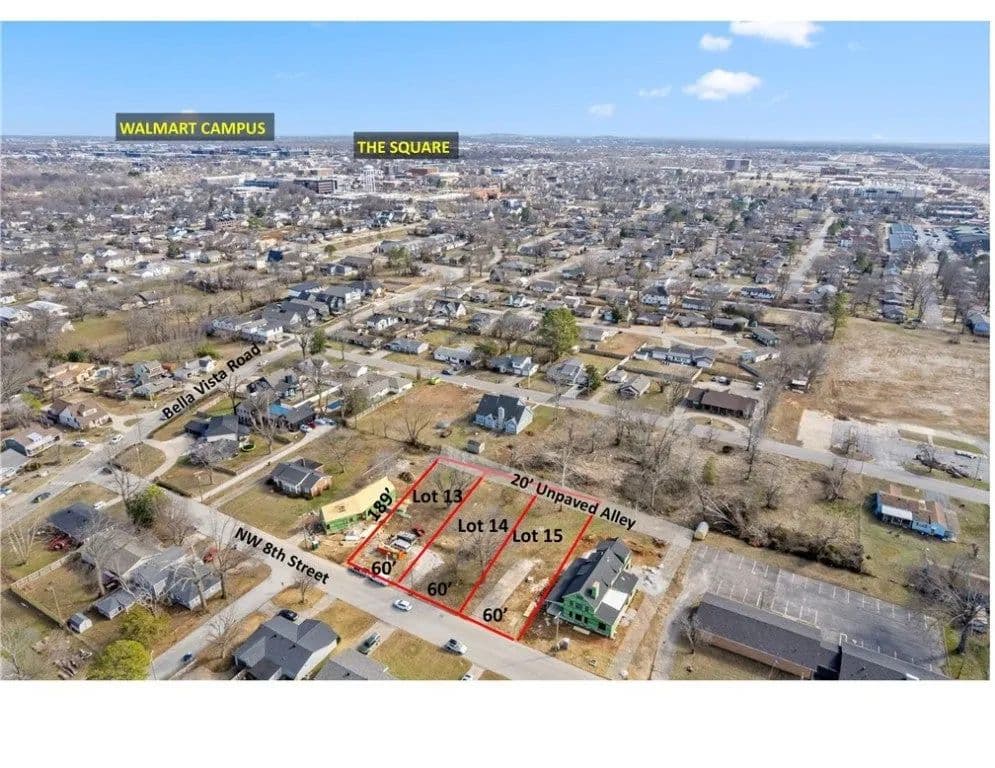 Build your dream home on one of the largest available lots in downtown Bentonville under $500K—measuring 60' x 189' and tucked on a quiet residential street in the sought-after northwest quadrant. This location offers the perfect blend of convenience and lifestyle: less than a 10-minute bike ride to the square, an easy stroll to Thomas Jefferson Elementary, and just two blocks from direct access to world-class mountain biking trails. Lot also listed as multiple lot sale on MLS #1313817. Surrounded by high-end new construction, this lot offers incredible potential for building your dream home or investment property in one of the most vibrant and walkable areas of town. With quick access to Walton Boulevard and I-49, you’re never far from where you need to be. A 20-foot unimproved alley at the back adds flexibility for future garage or guest house access. Opportunities like this don’t last—especially in this location.