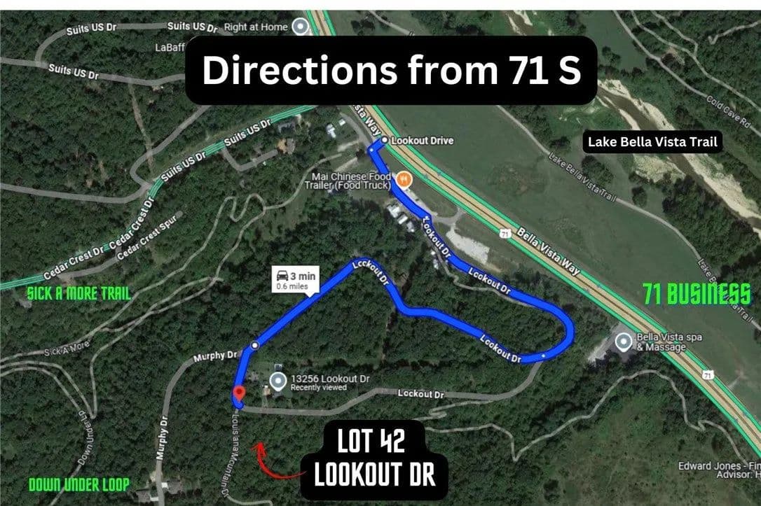 Beautiful secluded lot on Lookout Dr. only steps away from the Down Under Loop Trails and is only minutes away from the Sick a More, Sugar Creek Trail, and many more mountain bike trails in Bella Vista. The city of Bella Vista offers amenities such as 108 Holes of golf, 100+ miles of biking & hiking trails, 7 beautiful lakes, dog park, disc golf, fitness facilities, gun range, mini golf, parks & pavilions, pickleball, swimming pools, tennis, wildlife, dining & endless opportunities to enjoy the outdoors. Walk, bike, or drive to the Downtown Bentonville Square or the Home Office. Easy Access to I-49. 15 min drive to the WM Home Office Global Headquarters.