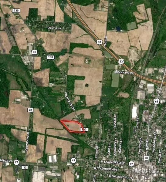 18.61 Acres of commercial land right off county road 130. Parcel is zoned B-1 (Business District) in Harrison Township. Residential, commercial, and industrial development may be introduced under planned unit development approach. City of Bellefontaine is across the street, where there is a waterline. Possible access to that utility, through council approval or annexation. County Rd 130 is also known as Garfield Ave.