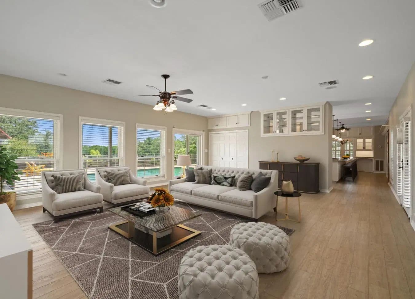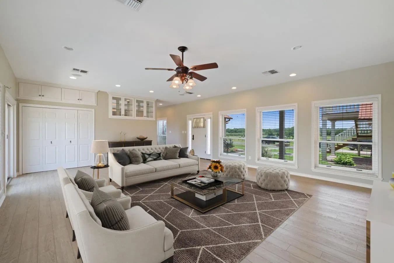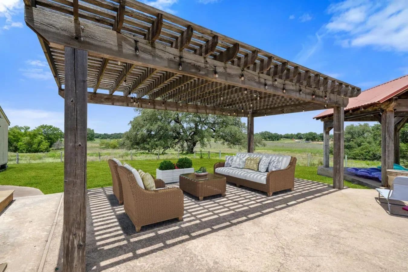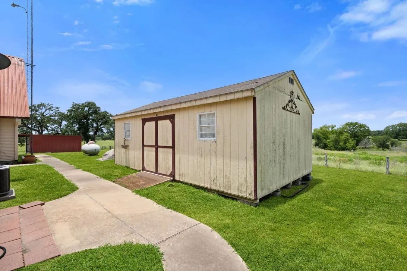 Welcome to 2610 FM 609! Your dream farmhouse on 56 breathtaking acres! This beautiful 3,336 sq ft, 1 1/2-story farmhouse blends classic charm with modern comfort, featuring 3 spacious bedrooms (1 suite upstairs), alongside 4 1/2 bathrooms, and two living areas. Enjoy a large covered patio and a sparkling pool, ideal for relaxing or hosting gatherings. The detached 2-car garage includes a guest suite with its balcony, offering additional space for guests, or a private retreat. Interior highlights include granite countertops, a large kitchen island, elegant laminate and carpet flooring, and a stunning primary suite with a luxurious ensuite bath. The open kitchen, dining, and breakfast areas create a seamless flow throughout the home. The expansive acreage includes pastures, hay fields, horse stables, and storage sheds-ideal for equestrian or country living. Don't miss this rare opportunity to own a fully equipped Texas farmhouse estate. Schedule your private showing today!