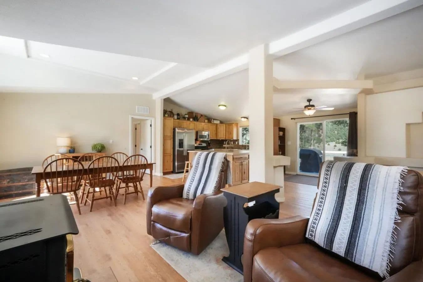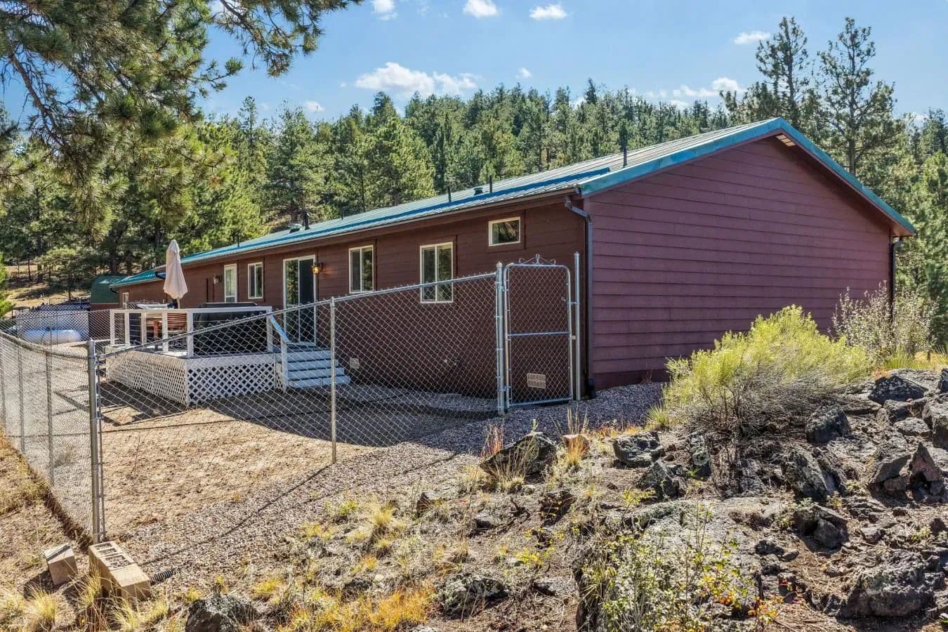 Welcome to a slice of Colorado paradise with spectacular views of the Sangre de Cristo Mountains. This incredible property includes nearly 80 acres featuring The Copper Bottom Lode and The Normandy Lode offering both land and mineral rights. It is a rare opportunity to own the land as well as what lies beneath it. The ranch style home offers main level living designed for comfort and functionality. The kitchen is beautifully appointed with stone countertops, stainless steel appliances, upgraded cabinetry, and a massive island. The sink looks out to the backyard, creating a peaceful view while you cook. Enjoy meals in the dining area or in the formal dining room. The spacious living room features a top of the line wood burning stove and forced air heat for year round comfort. The primary suite is a private retreat with a walk in closet and a luxurious five piece bathroom that includes a soaking tub, double vanities, a step in shower, and a private toilet area. Two additional bedrooms share a full bathroom with a tub and shower combination. There is also a convenient laundry and mudroom that offers access to the back deck. Step outside to explore all that this property offers. There is a detached oversized two car garage with an attached studio, powder room, and large closet that can be used as a hobby space, guest quarters, or home office. A huge storage shed provides plenty of room for equipment and tools. The property has a well and a cistern, giving you flexibility for water use. Composite decks on the front and back provide low maintenance outdoor enjoyment. There is a fenced dog area, chicken coop, and a tractor and log splitter are included. The land itself is truly breathtaking with mountain views, a stream running through the property, and acres of trees bordering BLM land providing utmost privacy and access to recreation. Whether you are dreaming of a peaceful homestead, a hobby farm, or an outdoor lover's retreat, this property offers it all.