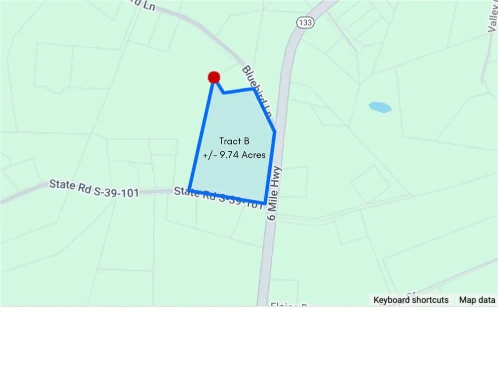 Prime Development Opportunity: Tract B, which is approximately 9.74+/- acres, is nestled between Clemson and Six Mile in an area of growth. This tract offers endless potential for visionary investors and developers. The property boasts road frontage on 3 sides with approximately 518ft of road frontage on Six Mile Highway, 362ft on Bluebird Lane, and 650 ft on Knollview. Currently part of a larger 27.54+/- acre tract, this property has NOT been surveyed yet; therefore, the acreage totals are an estimate. Additional acreage is available; tract A is listed under MLS# 20284797, and tract A & B can be found under the MLS# 20292865. Don’t miss this rare opportunity—schedule your showing today!